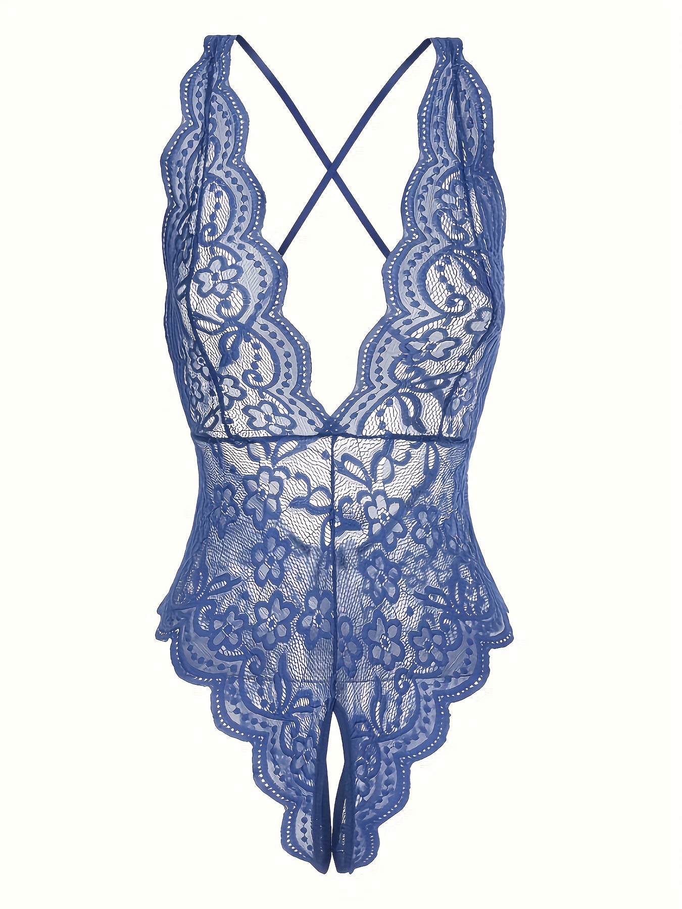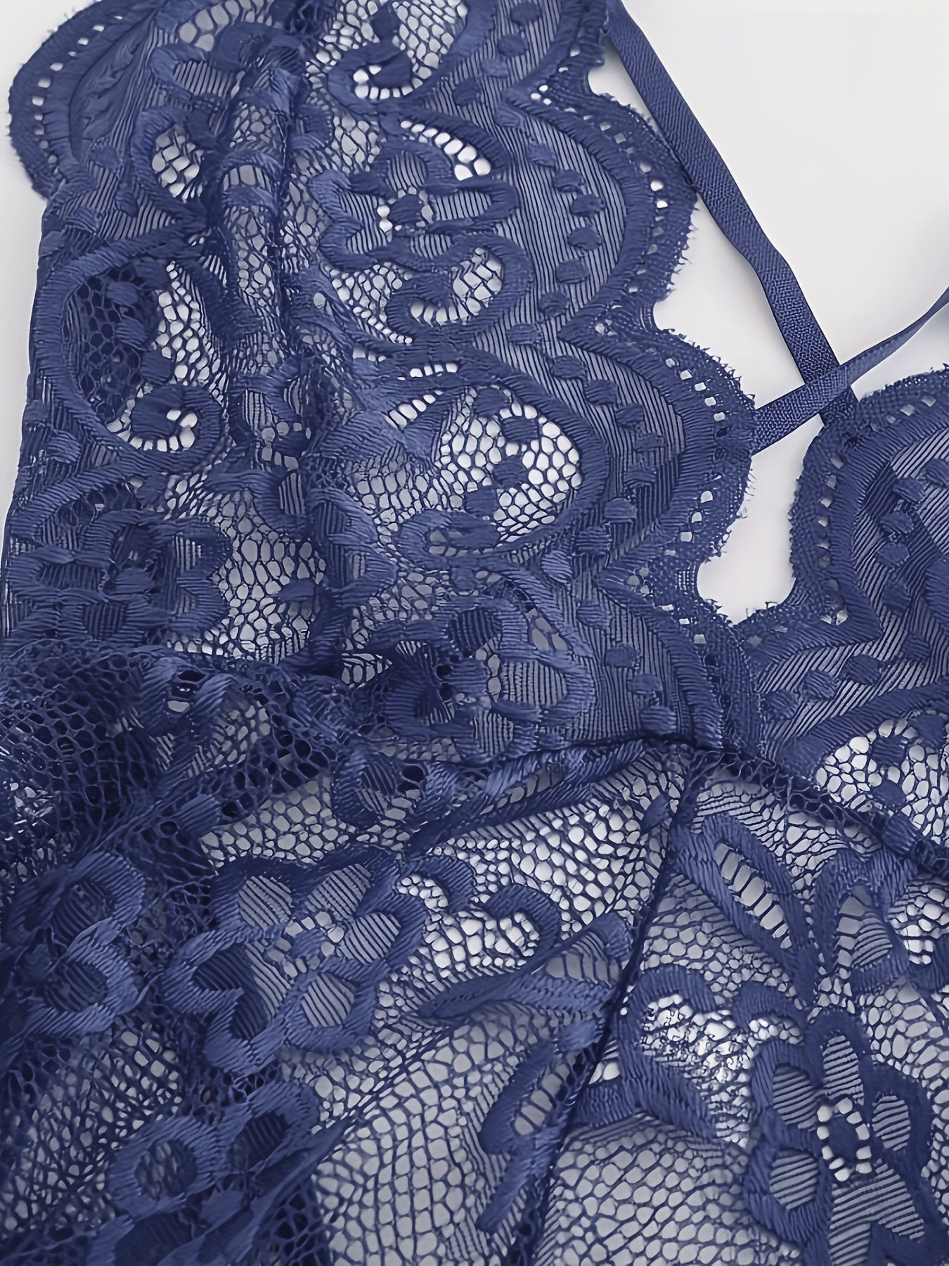 استمتعي بإطلالة رائعة مع بادي النساء المصنوع من الدانتيل الأزرق الداكن. تصميم مثير مع شقوق وتفاصيل مفتوحة، يجعلها مثالية للحفلات والمناسبات اليومية.