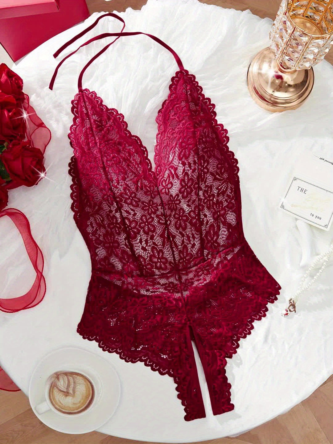 استمتع بمظهر مثير وجذاب مع بدلة الجسم النسائية الفريدة من نوعها. تتميز بتصميم عنق هالتر وشبك شفاف يضفي طابعًا رومانسيًا على إطلالتك.