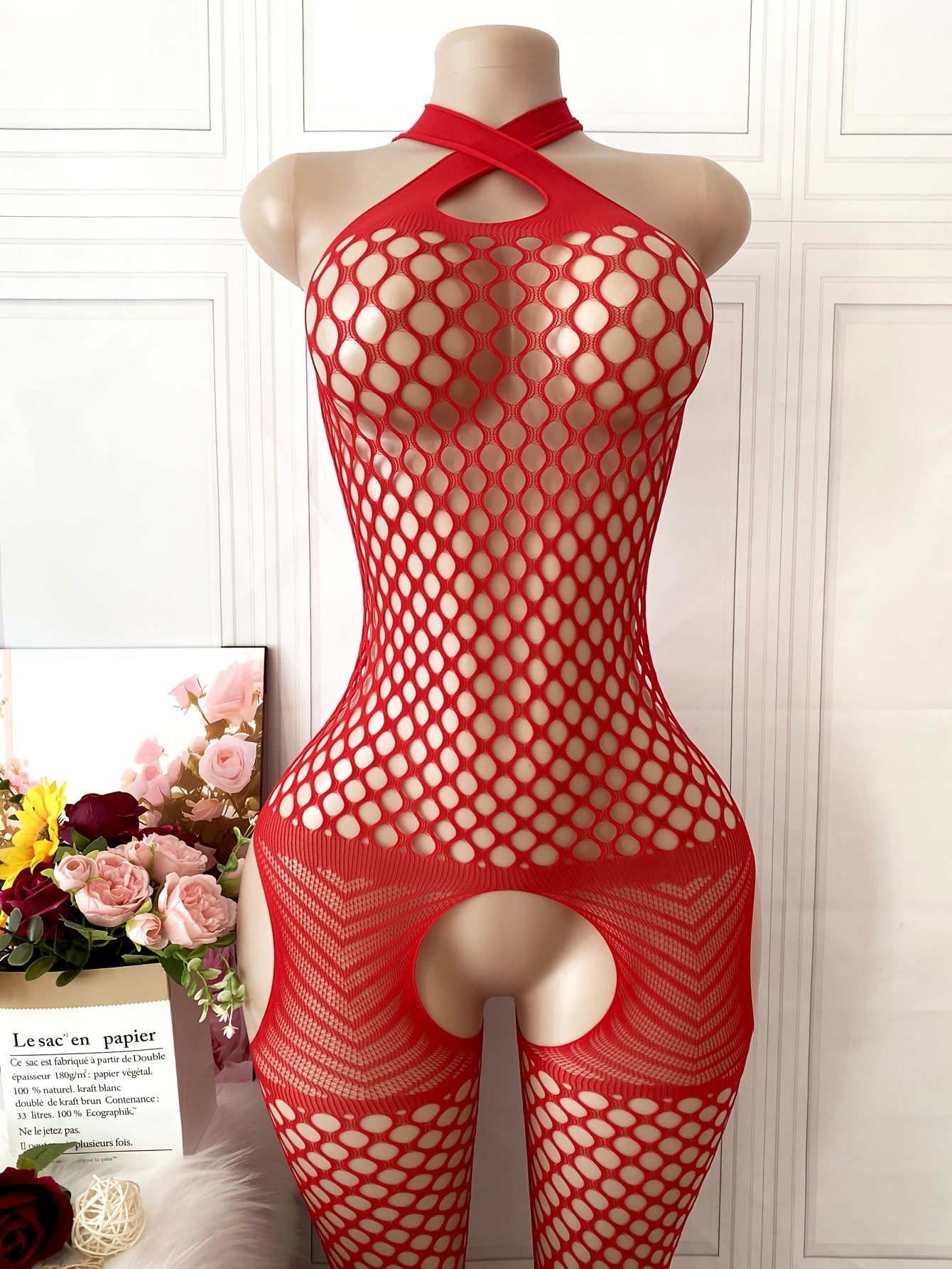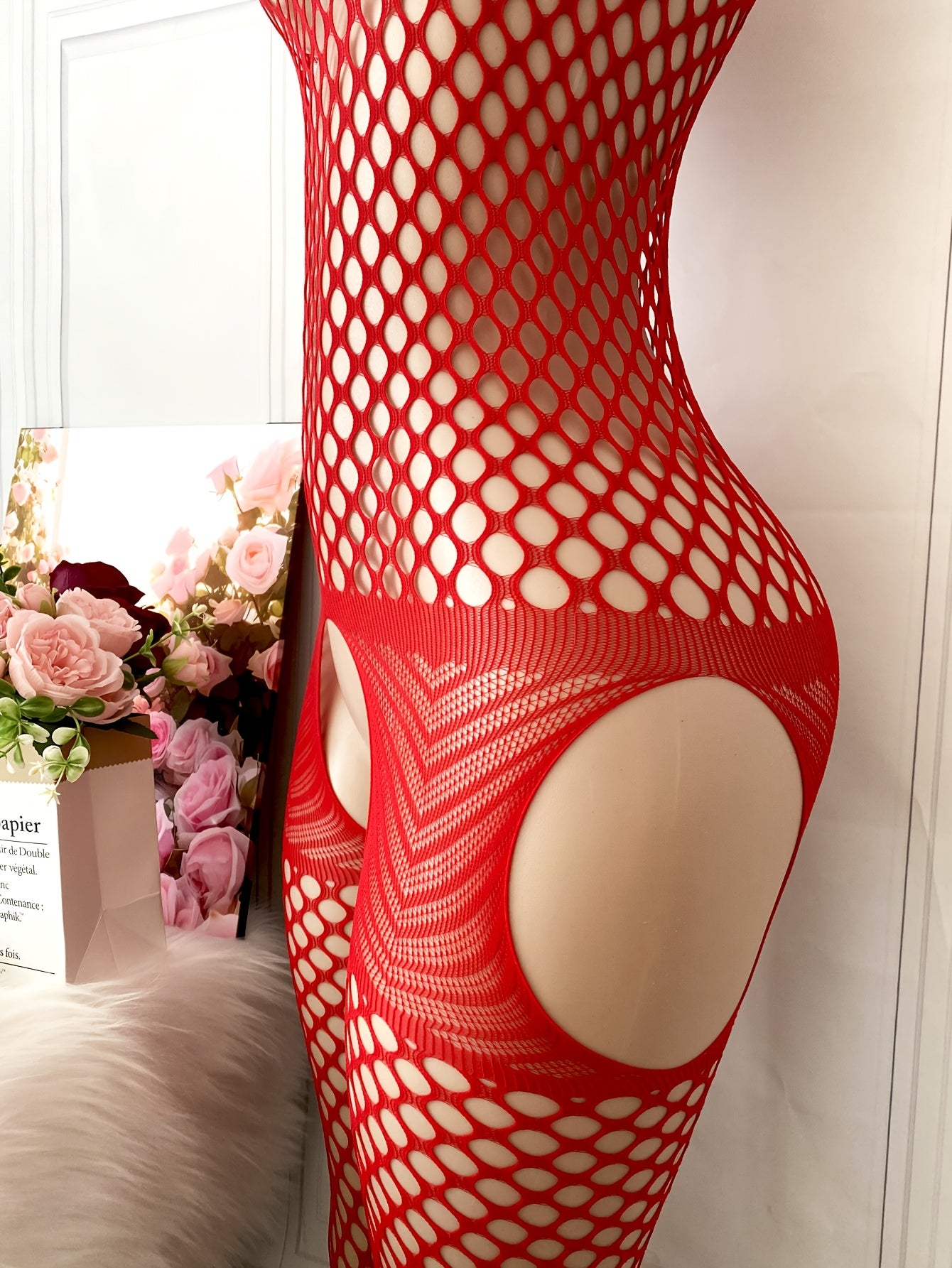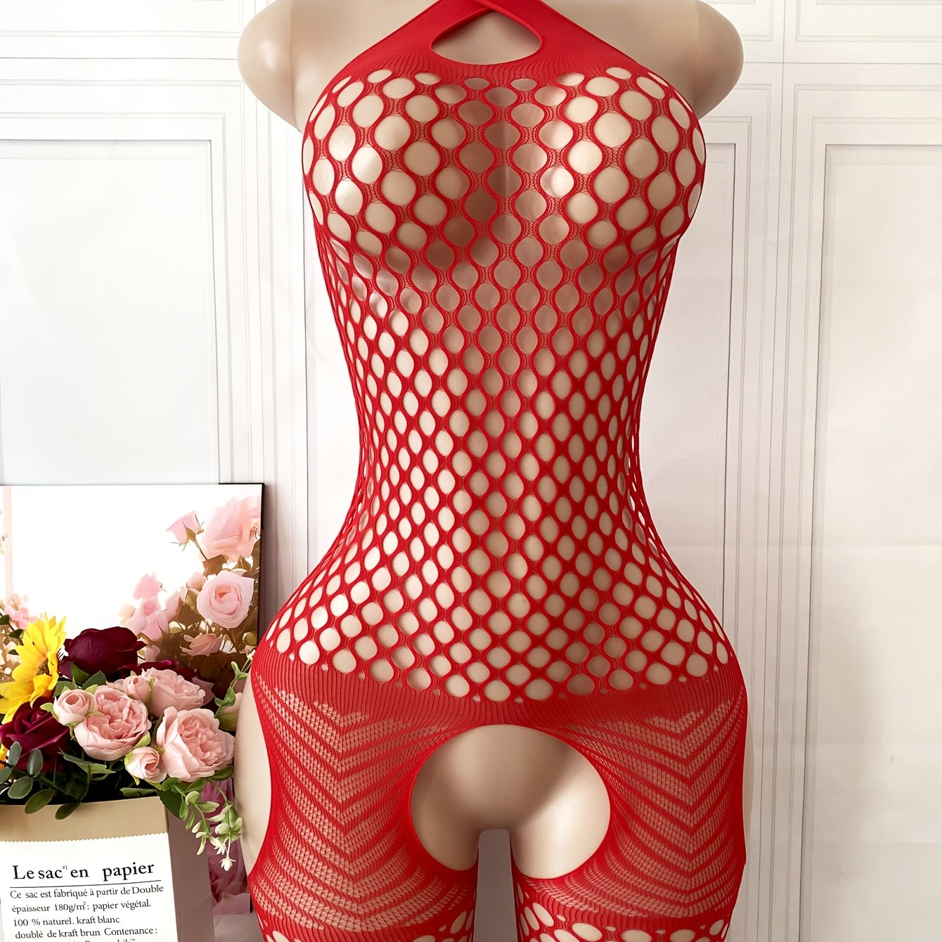 استمتع بإطلالة جذابة مع البدلة الشبكية الحمراء ذات الشكل المفتوح، المصنوعة من قماش مرن يسمح بتهوية مثالية. تناسب هذه البدلة الرسمية والاحتفالية، مما يجعلها خيارًا مثاليًا للمناسبات الخاصة.