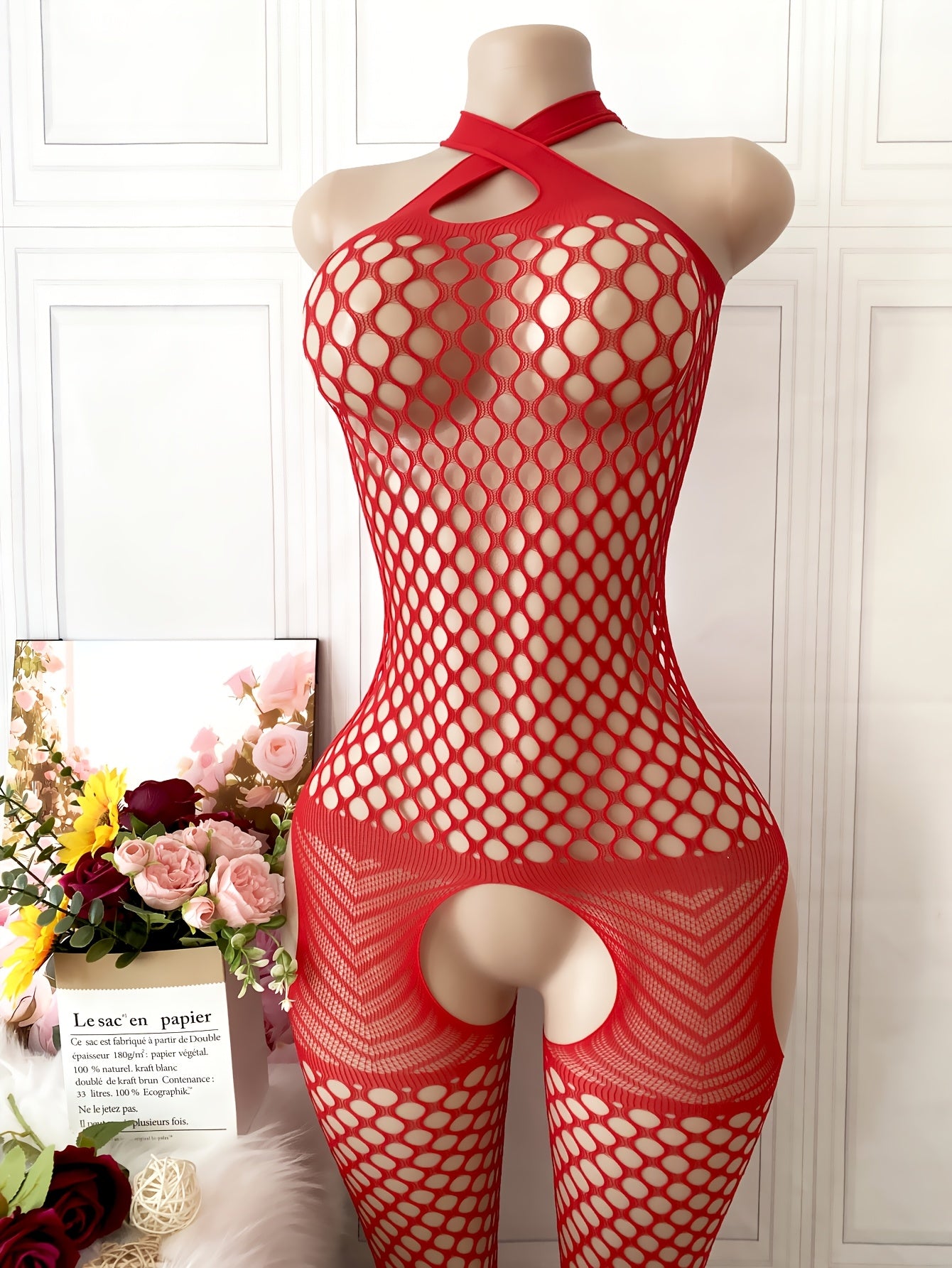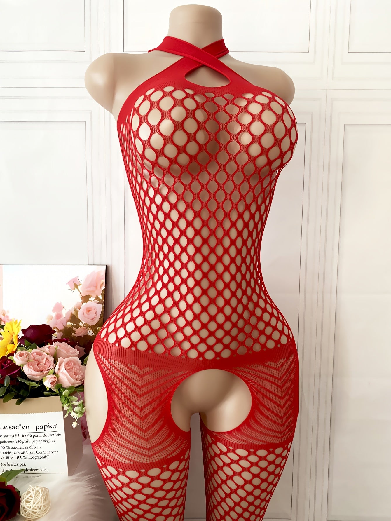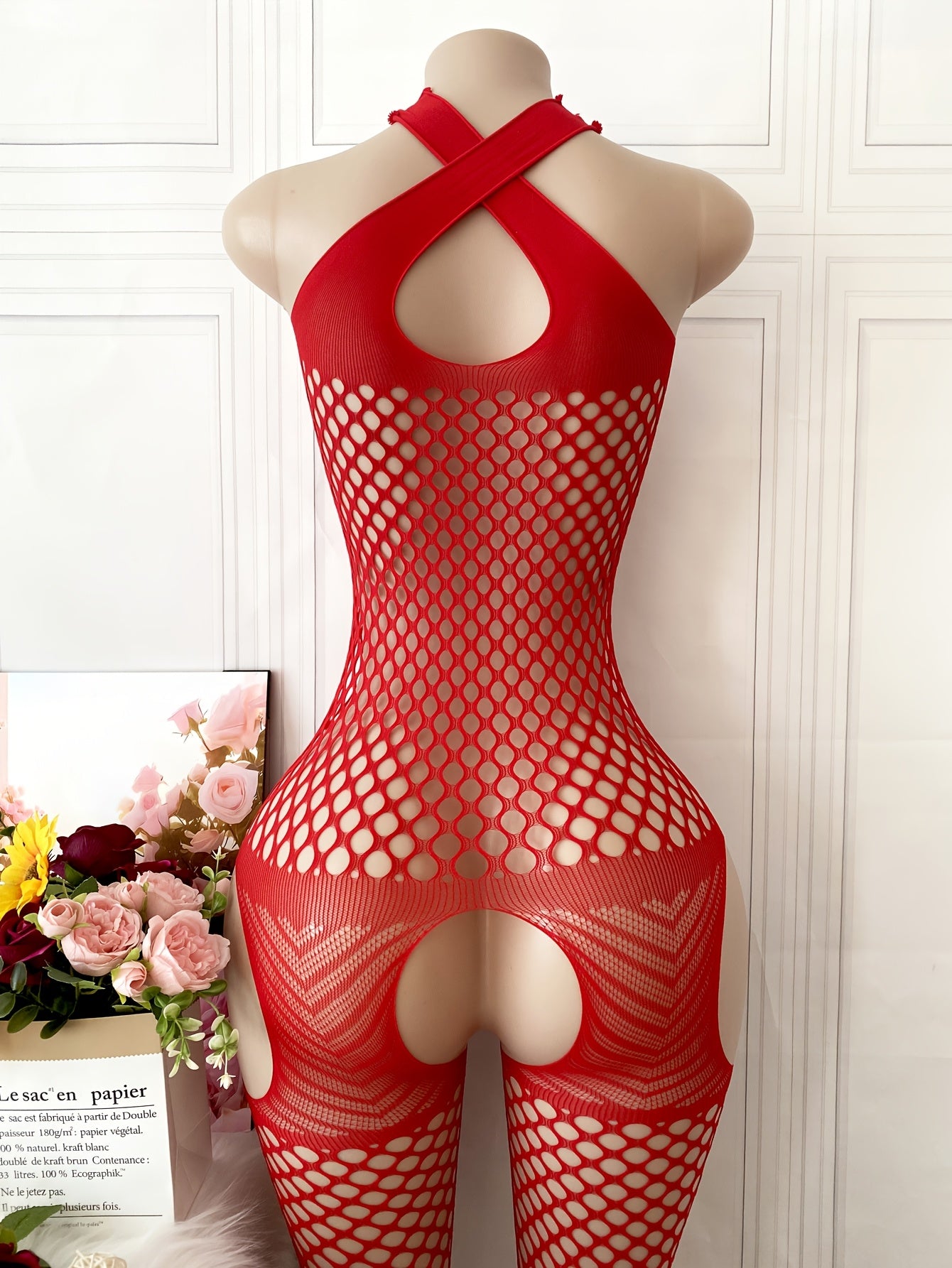 استمتع بإطلالة جذابة مع البدلة الشبكية الحمراء ذات الشكل المفتوح، المصنوعة من قماش مرن يسمح بتهوية مثالية. تناسب هذه البدلة الرسمية والاحتفالية، مما يجعلها خيارًا مثاليًا للمناسبات الخاصة.