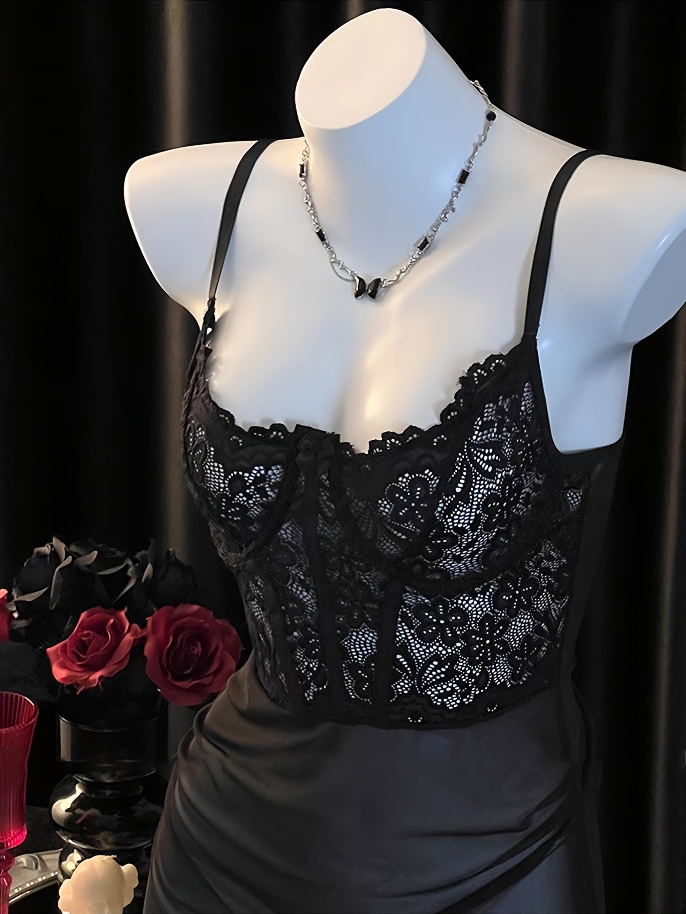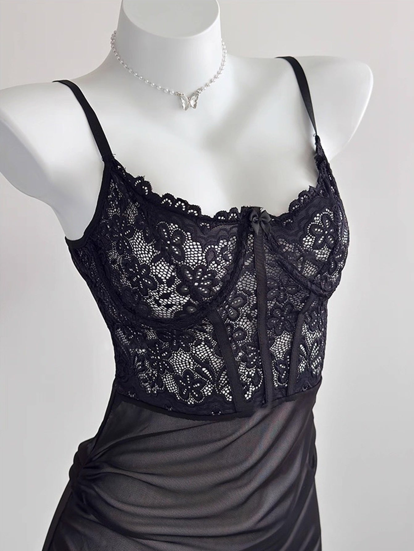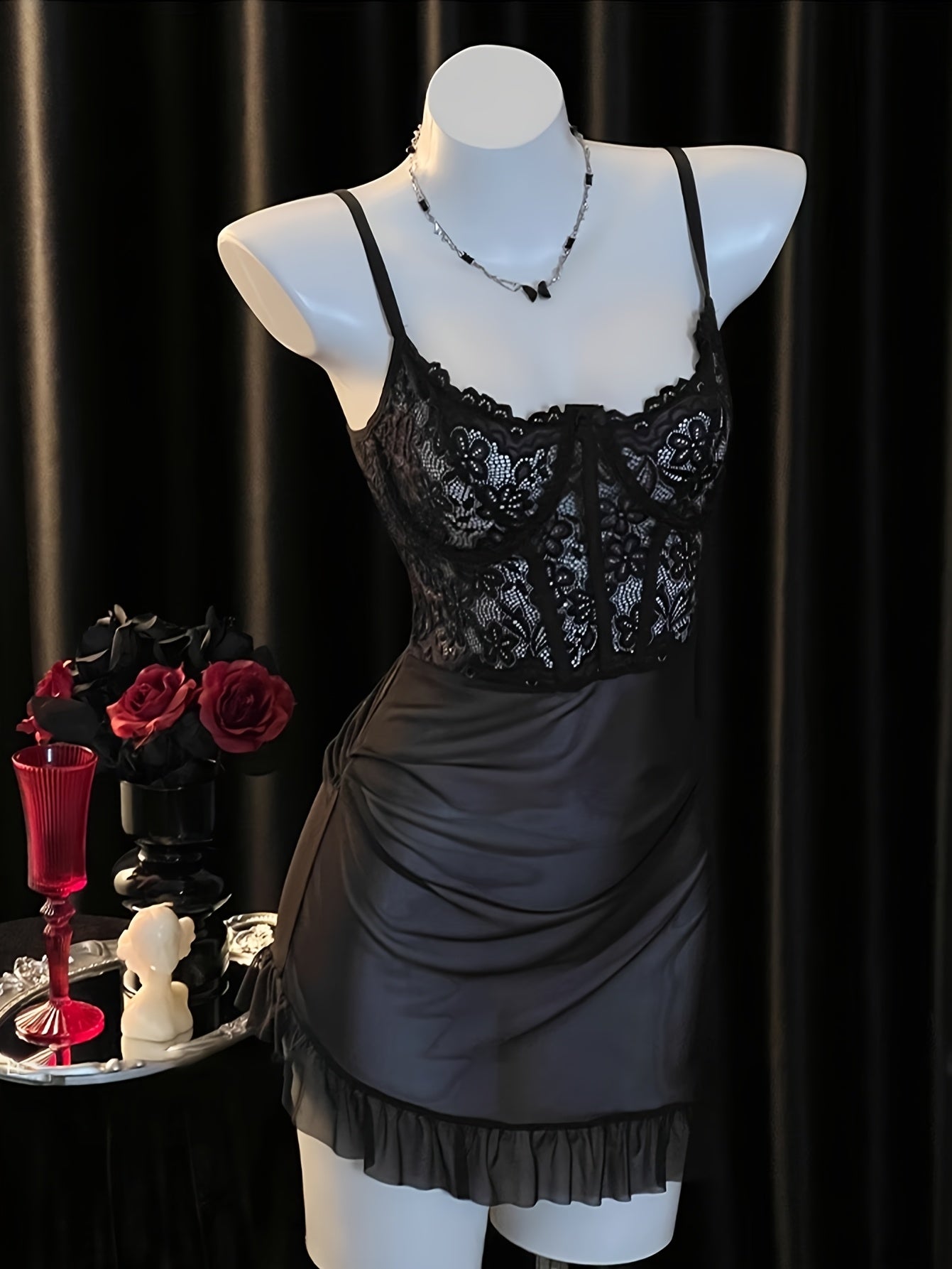 اكتشف الأناقة مع البدلة المثيرة بقصة دانتيل، المصممة بإتقان لتكشف عن جمالك. تأتي مع حلقة فولاذية مميزة لتوفير لمسة عصرية وفريدة.