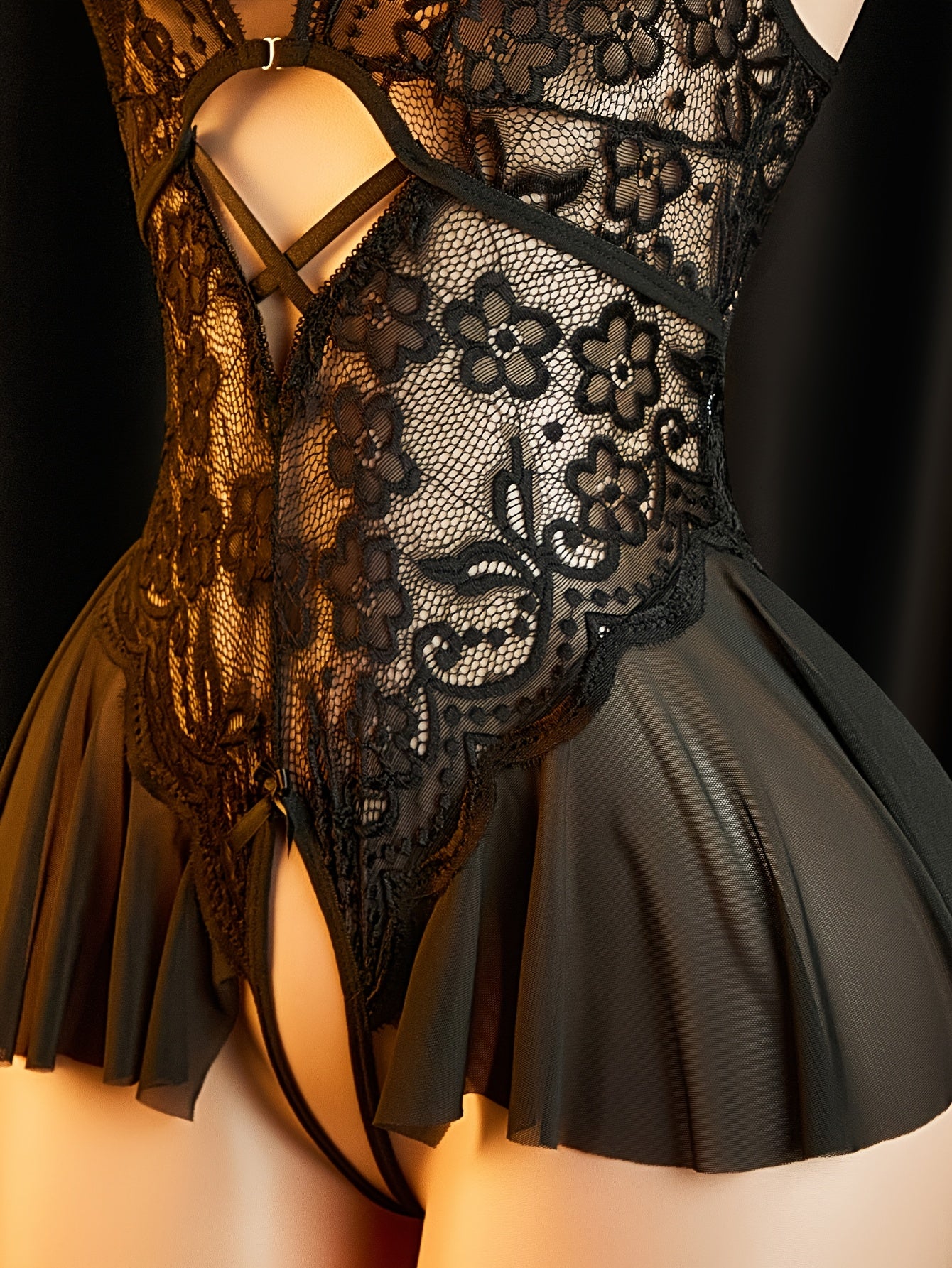 استمتع بأناقة ورومانسية مع بدلة النسائية المثيرة ذات التصميم الفريد والمريحة. تناسب هذه البدلة لحظاتك الخاصة، وهي مصنوعة من قماش مرن مع تفاصيل خياطة دانتيل.