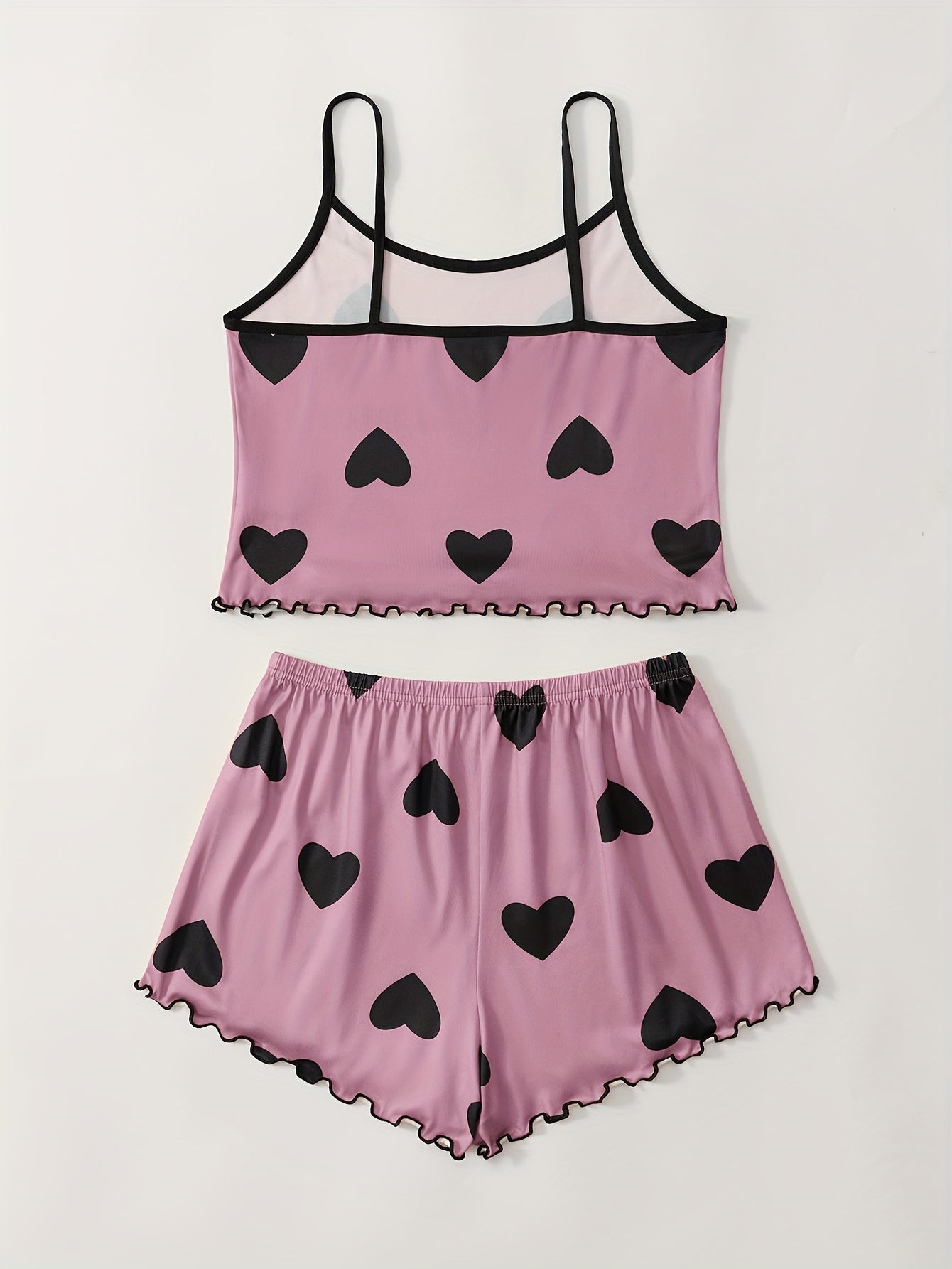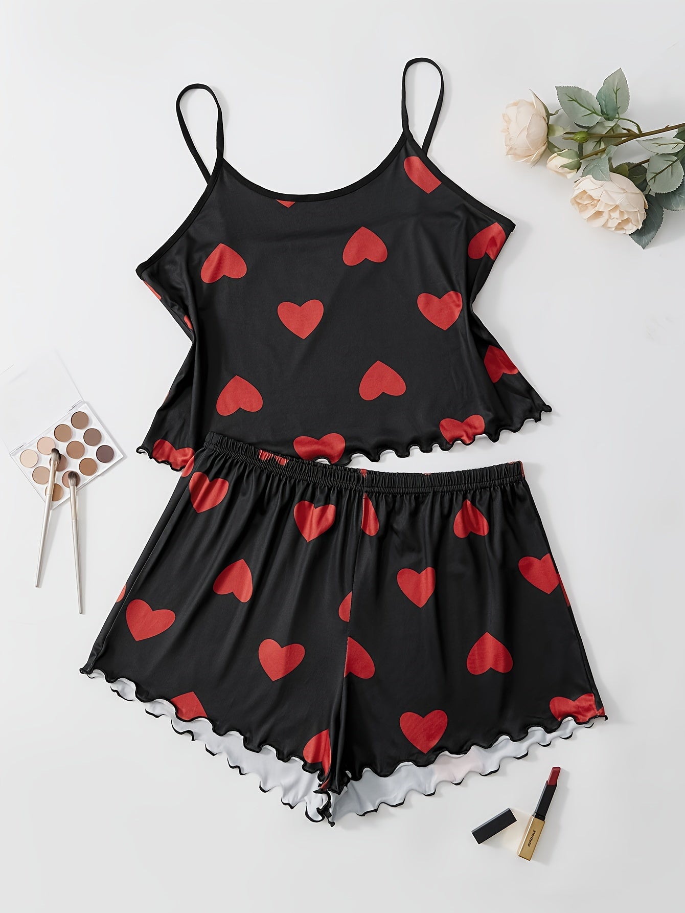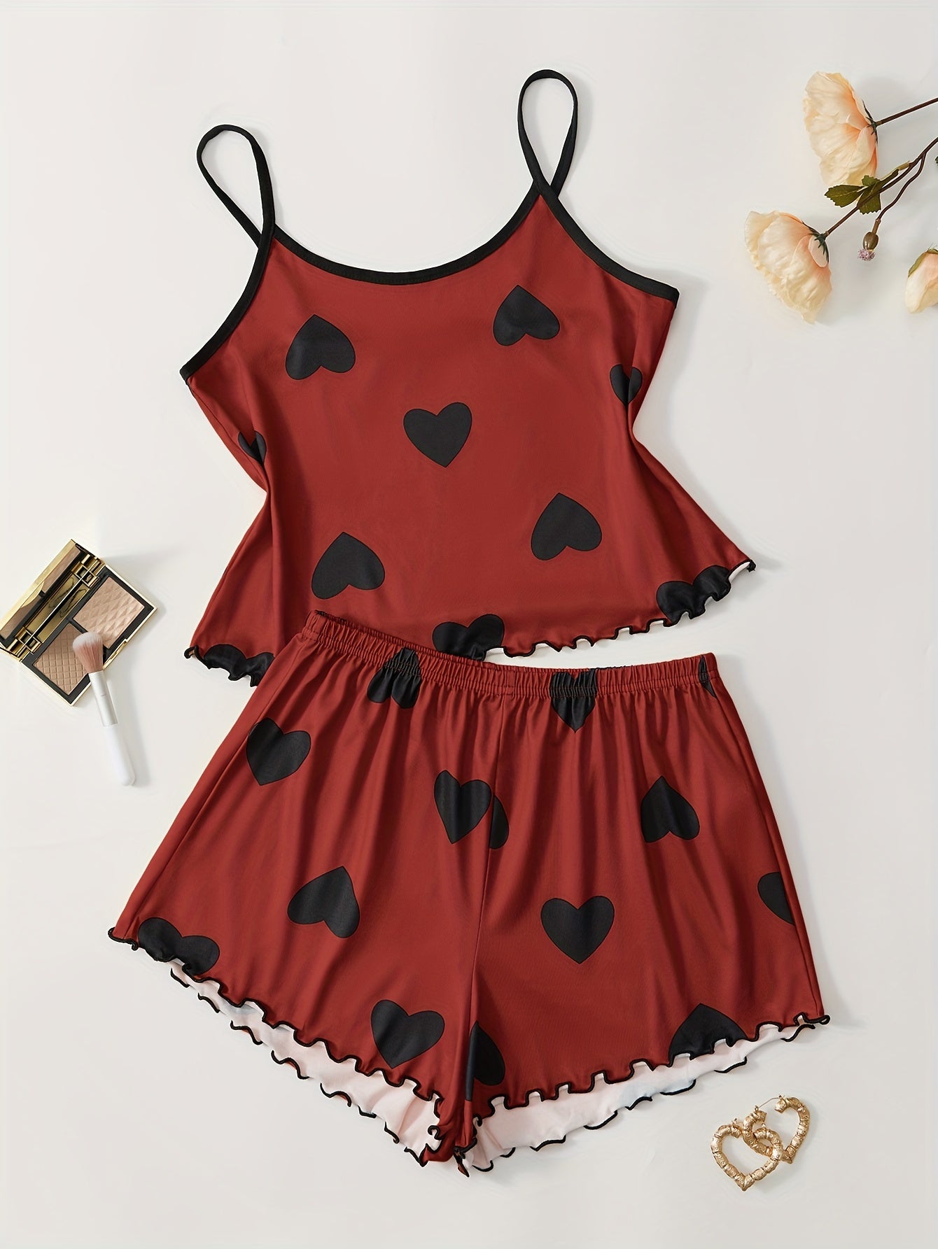 استمتع ببدلة النوم النسائية هذه التي تأتي مع شورت بأكمام خفيفة وتصميم مطبوع بشكل قلب. مثالية للاسترخاء في أي وقت من السنة.