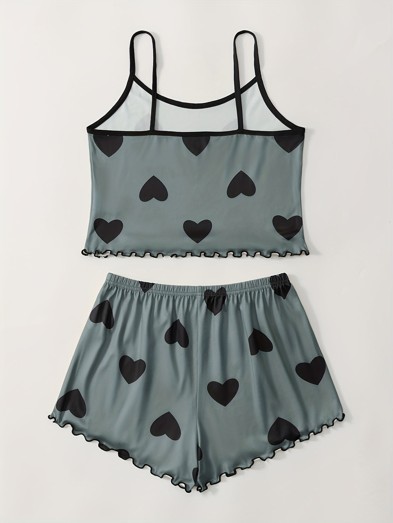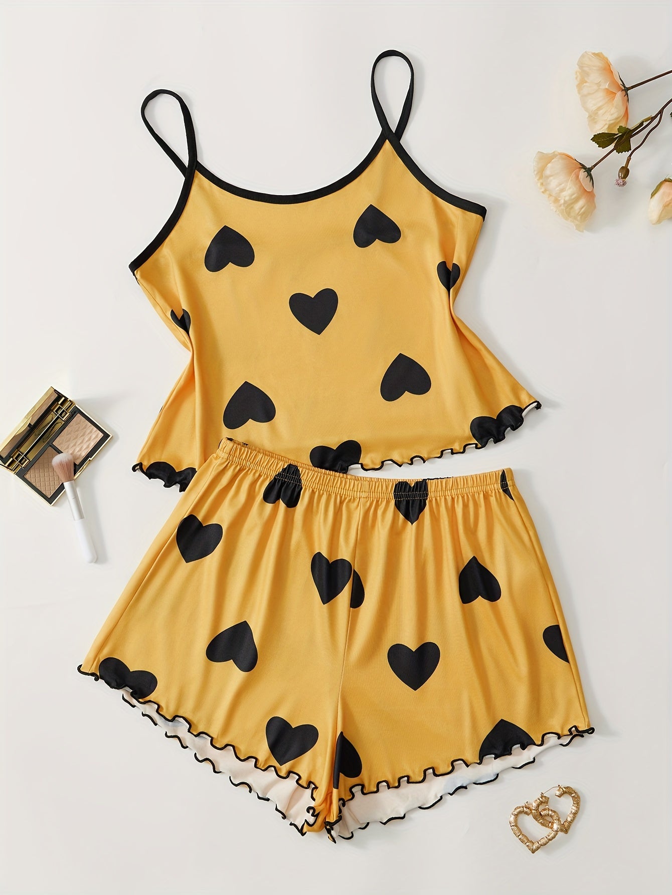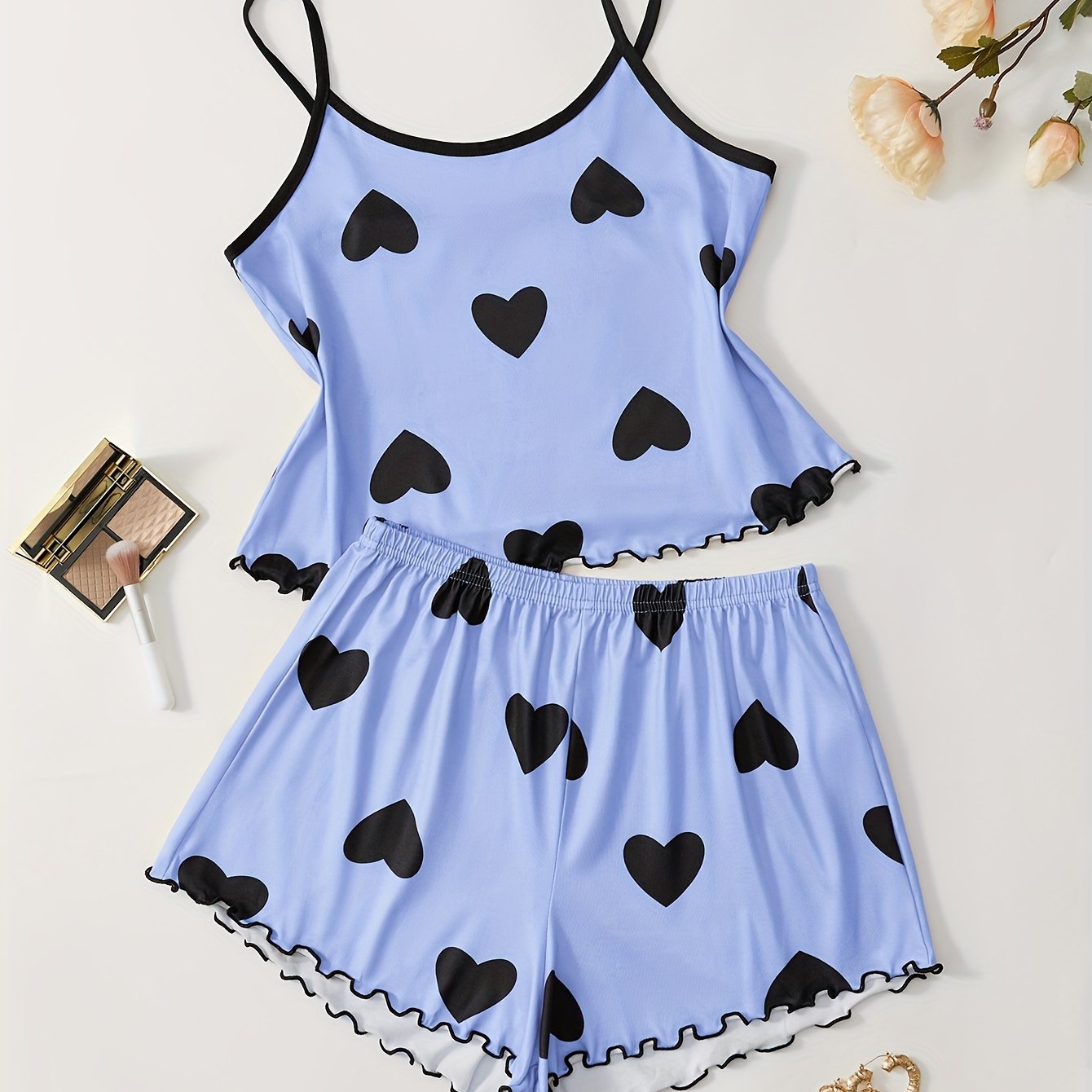 استمتع ببدلة النوم النسائية هذه التي تأتي مع شورت بأكمام خفيفة وتصميم مطبوع بشكل قلب. مثالية للاسترخاء في أي وقت من السنة.