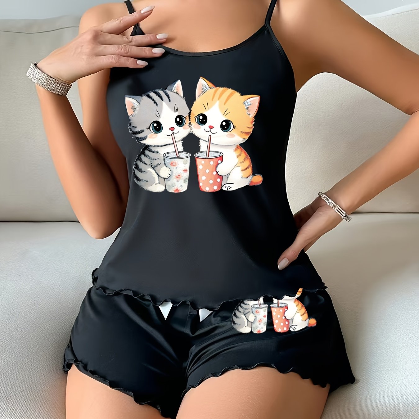 استمتع بمظهر أنيق ومريح مع مجموعة البيجامة المطبوعة للنساء. تتميز بألوان جذابة وتصميم مرح. تأتي مع توب بأكمام قصيرة وشورتات متطابقة، مما يجعلها مثالية للاستخدام اليومي والراحة في المنزل.