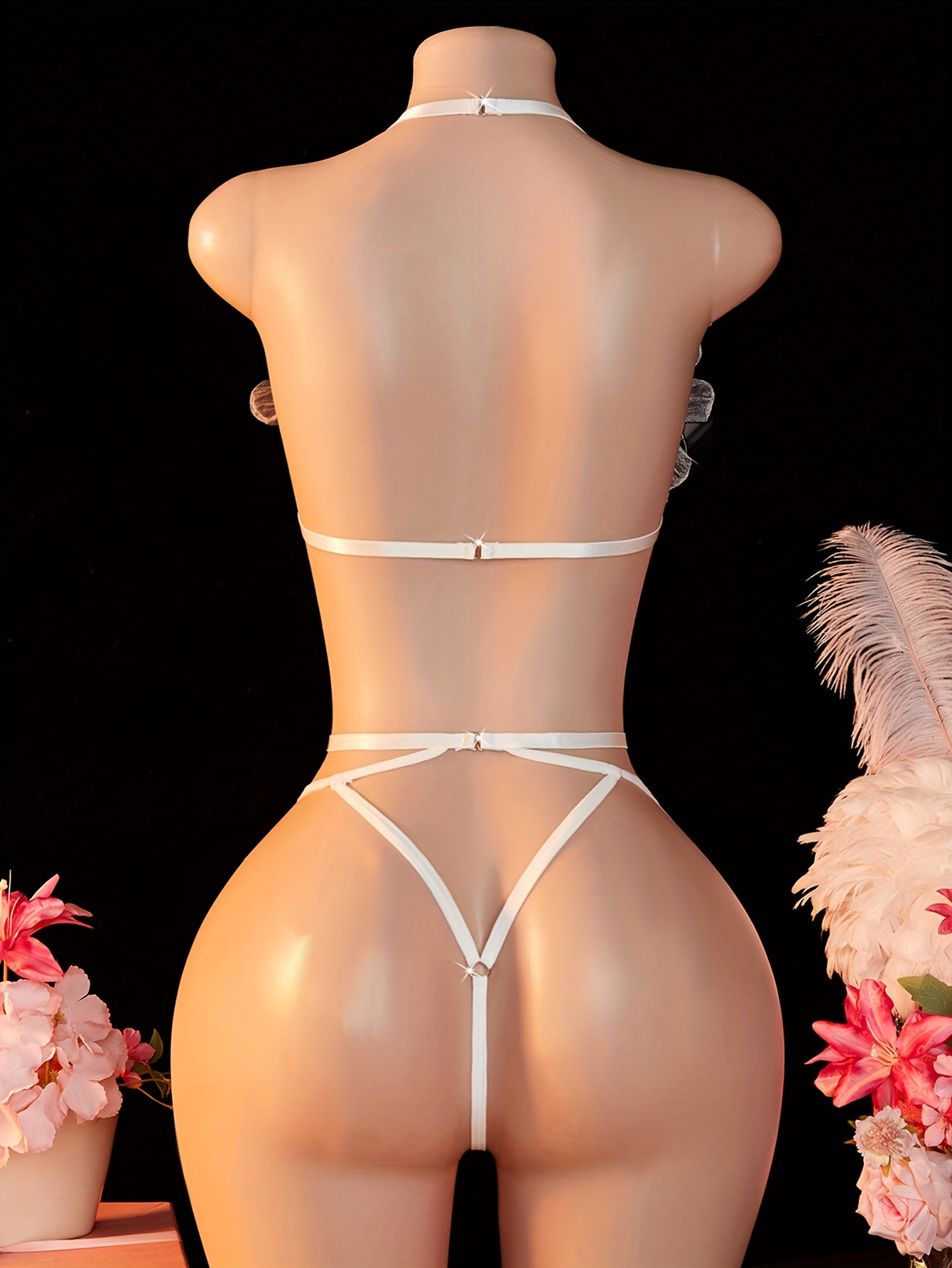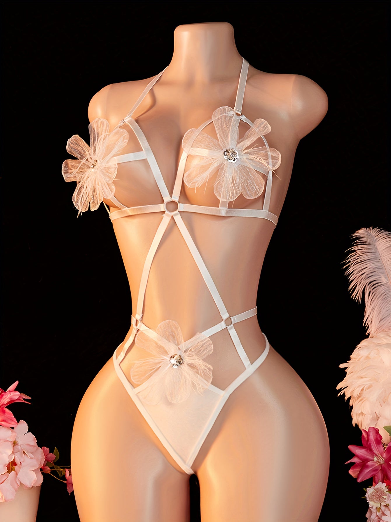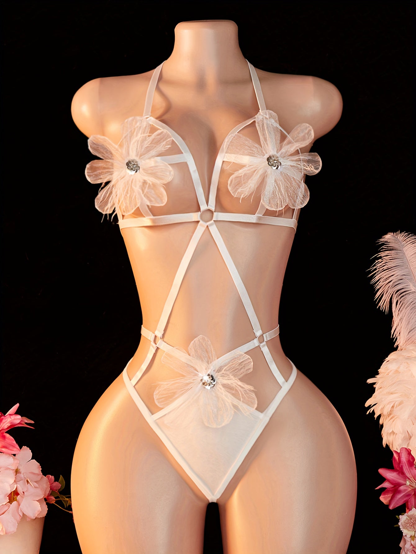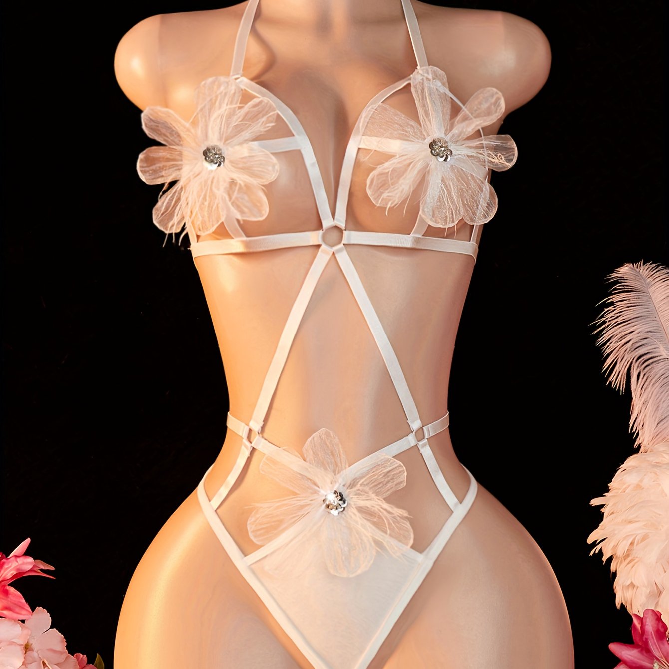 اكتشفي الأناقة والجاذبية مع تيدي شفاف مزهر. تصميم مثير بقطع جريئة وظهر مفتوح، مناسب لكل امرأة تبحث عن الإطلالة المغرية.