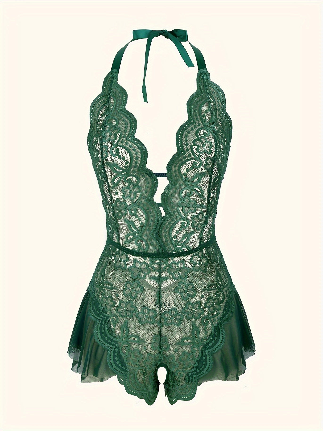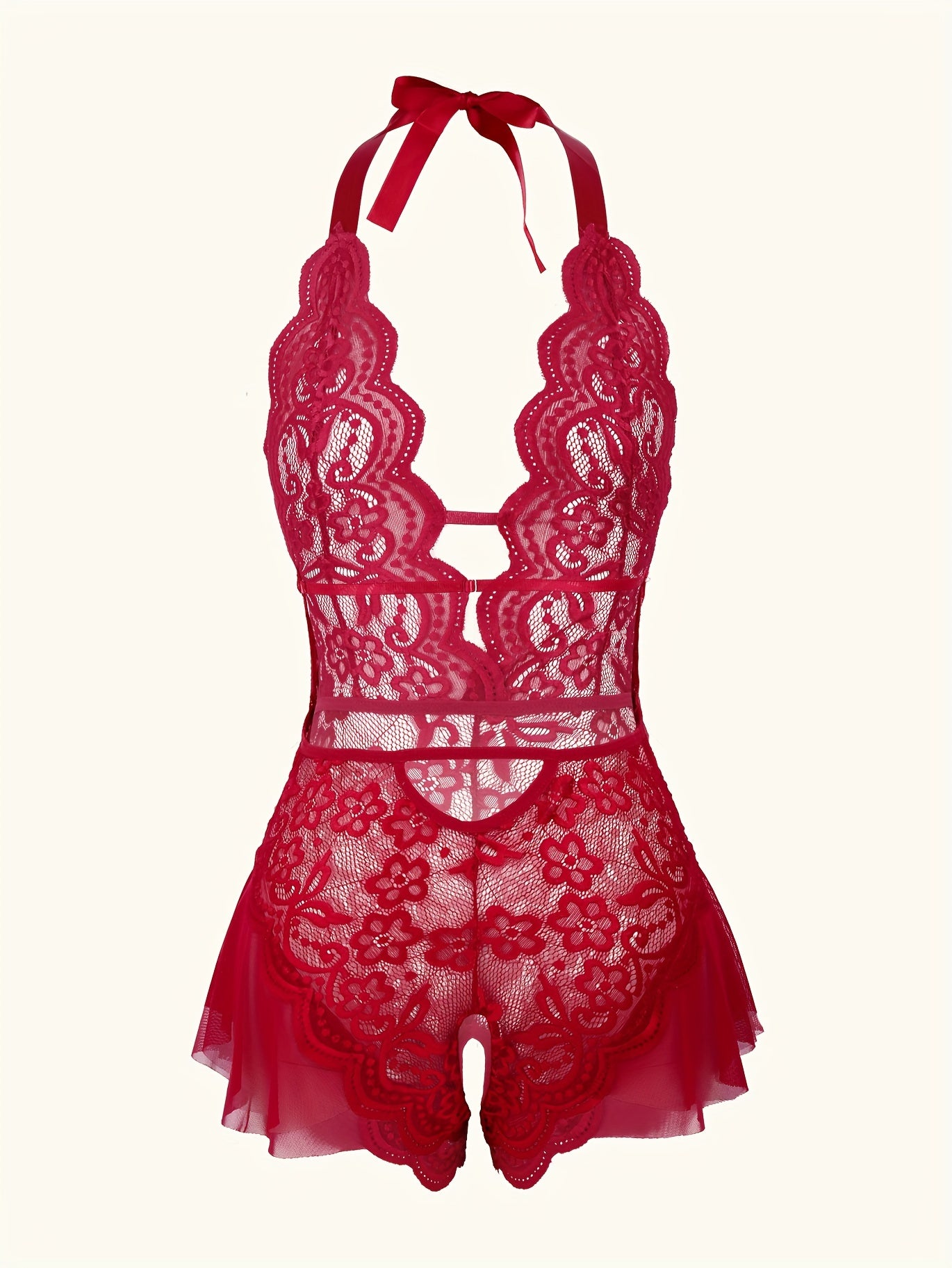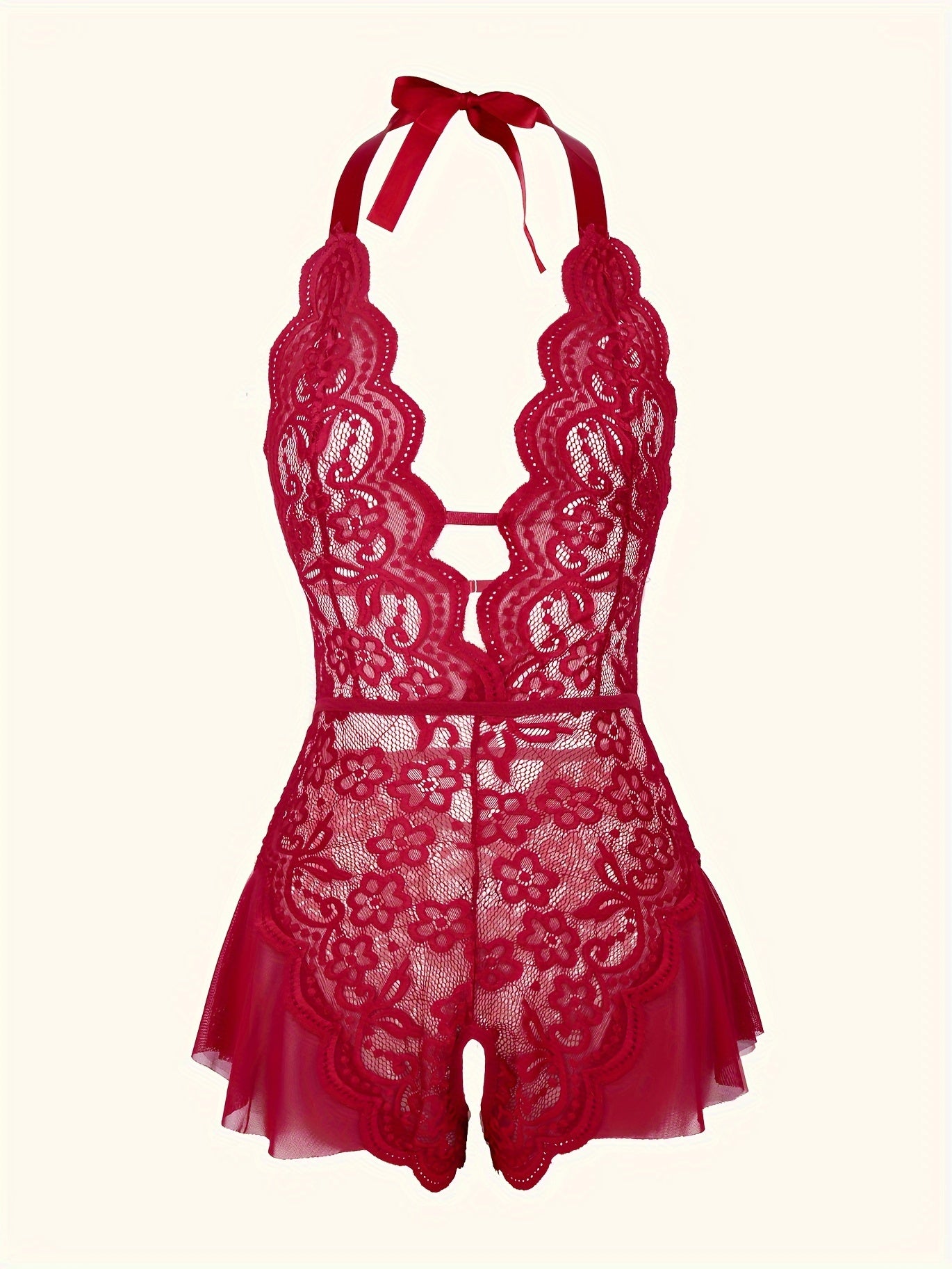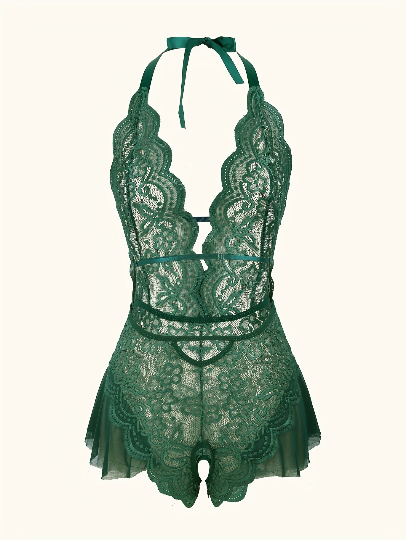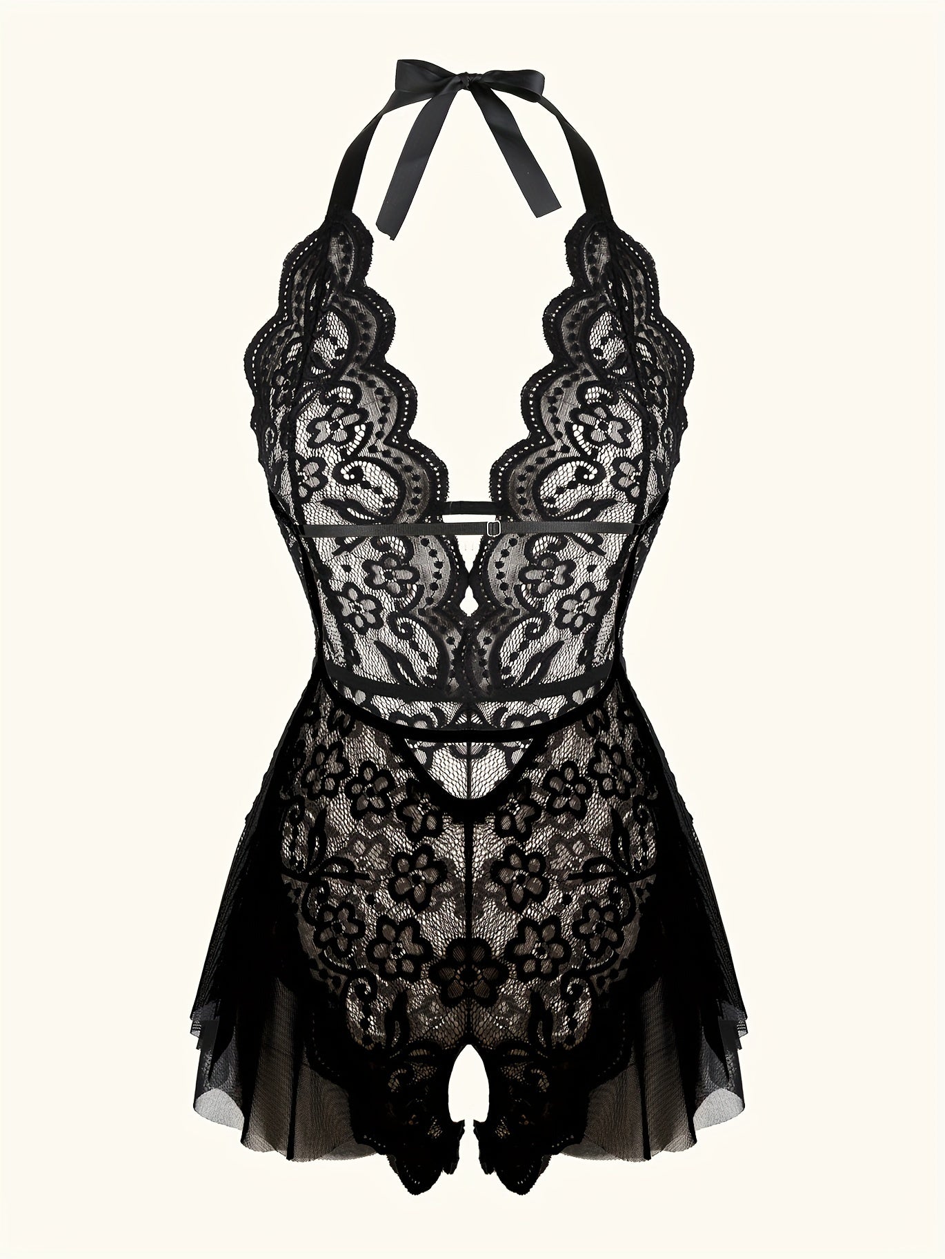 استمتع بارتداء تيدي لميز الجذاب مع حواف من الكروشيه. مصمم بعمق على شكل حرف V مع فتحات في الفخذين، هذا اللباس يعد خيارًا مثاليًا لأمسية خاصة.