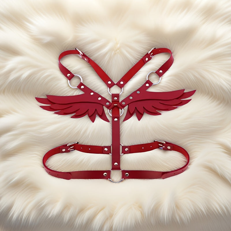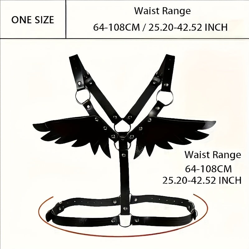 استمتع بإطلالة أنيقة ومتفردة مع حزام بأجنحة ملاك المستوحى من أسلوب الجوثيك والبانك. هذا الحزام القابل للتعديل مصنوع من جلد PU عالي الجودة ويأتي بتفاصيل مزخرفة.
