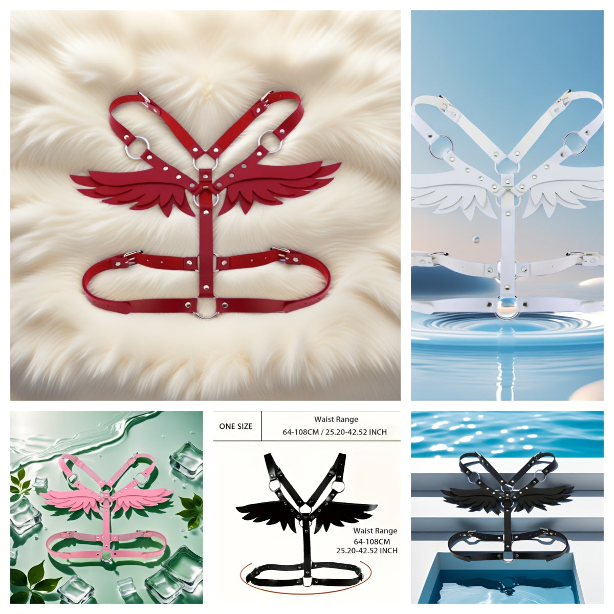 حزام بأجنحة ملاك أسود/أبيض/وردي/أحمر