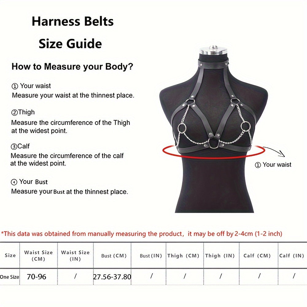 استمتع بالأناقة والجرأة مع حزام الصدر النسائي المصنوع من الجلد الصناعي بتصميم بونك الرائع.