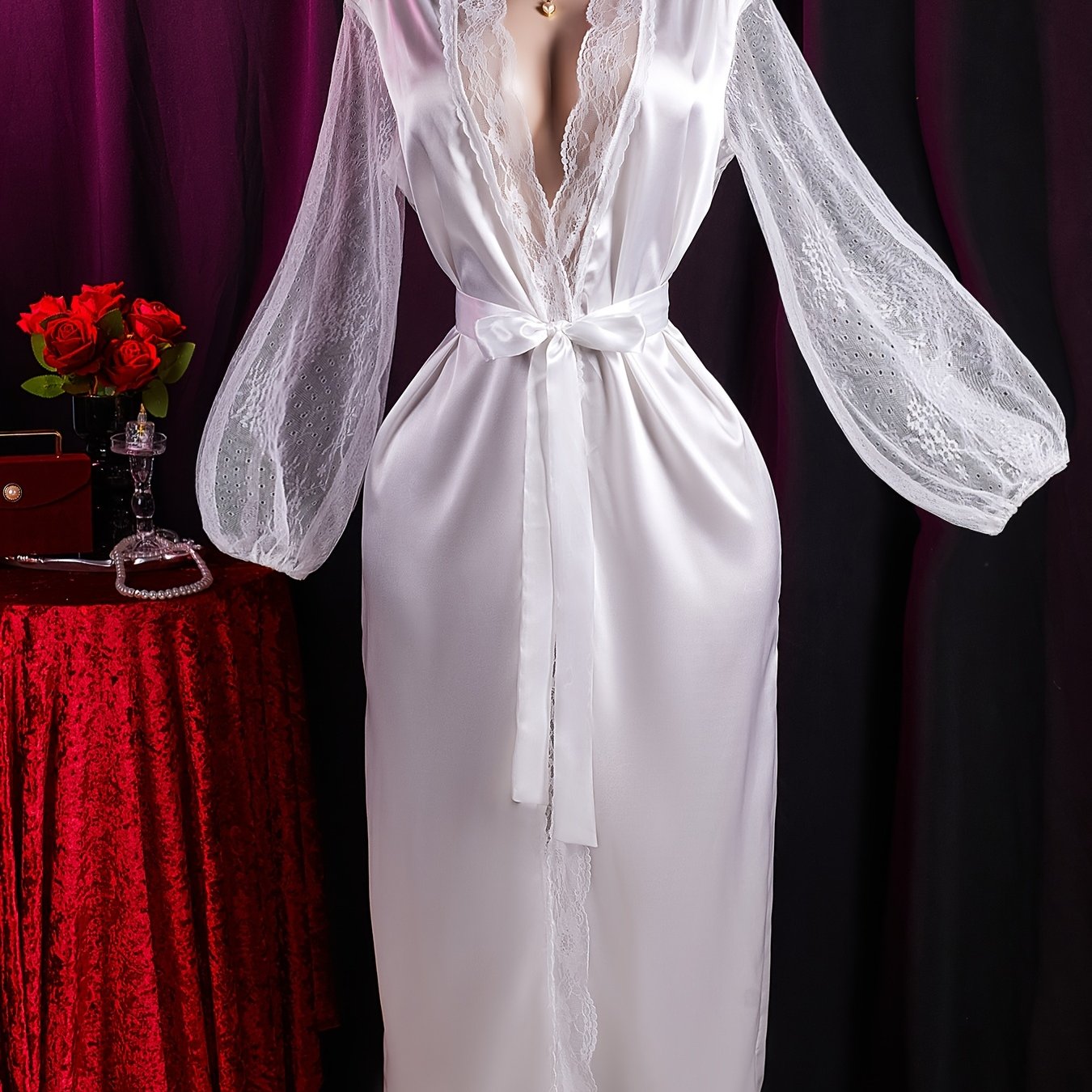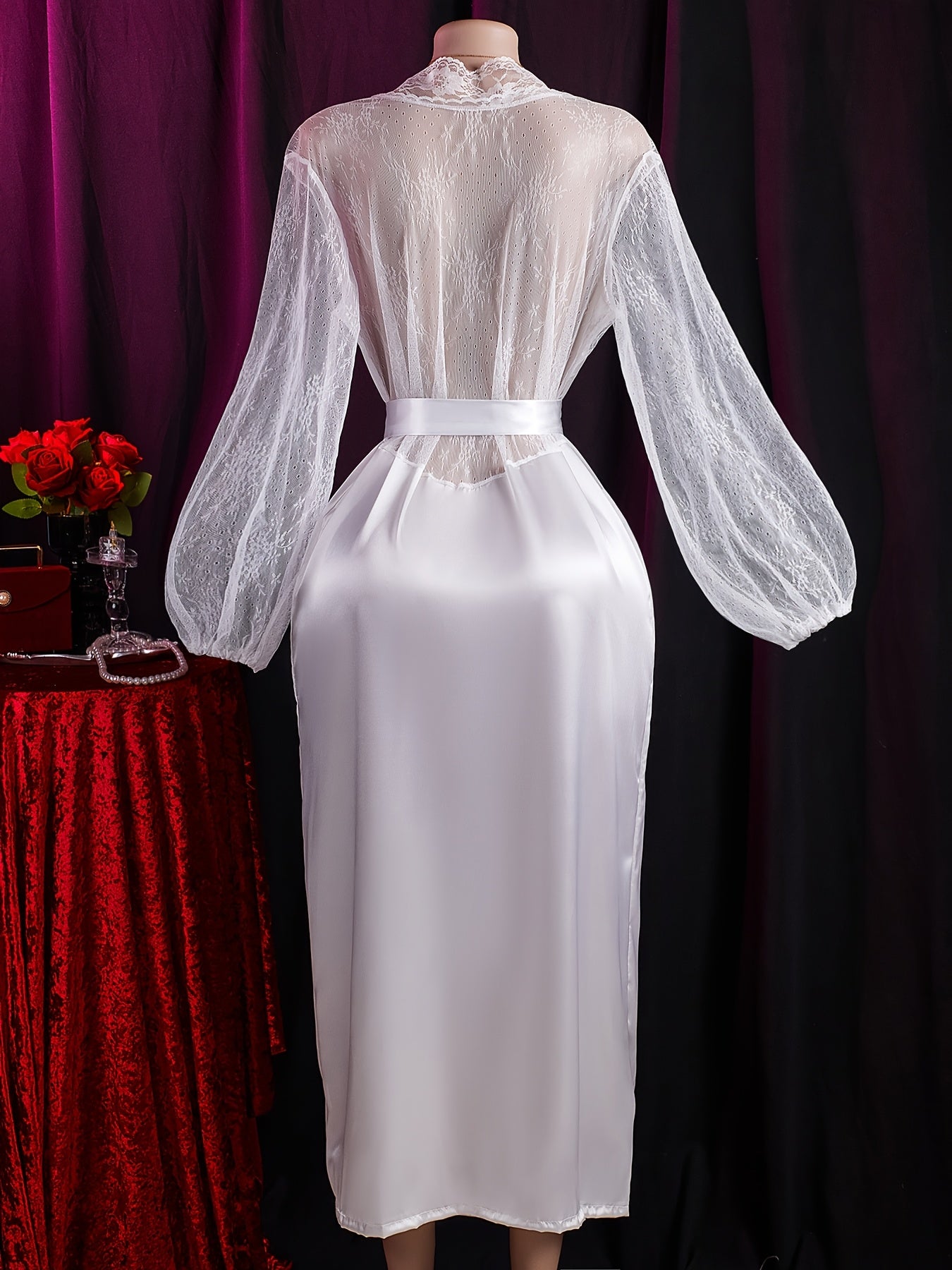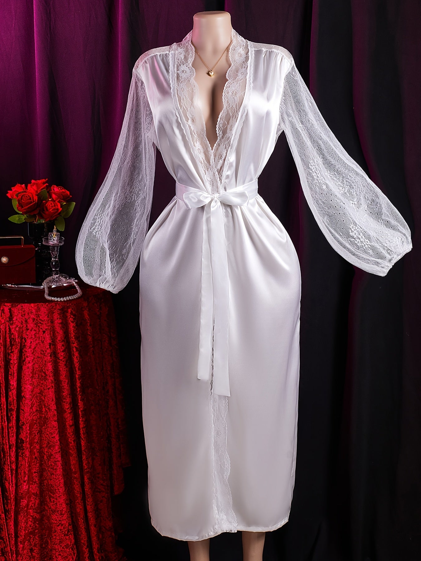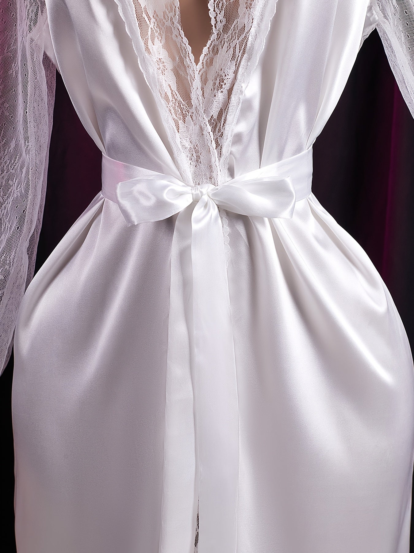 استمتع براحة وجمال روب دانتيل أنيق. مصمم بعناية مع أكمام طويلة وقصة (A-Line) تضفي لمسة من الأناقة والرومانسية، مثالي ليوم الزفاف أو كجزء من ملابس النوم الخاصة بك.