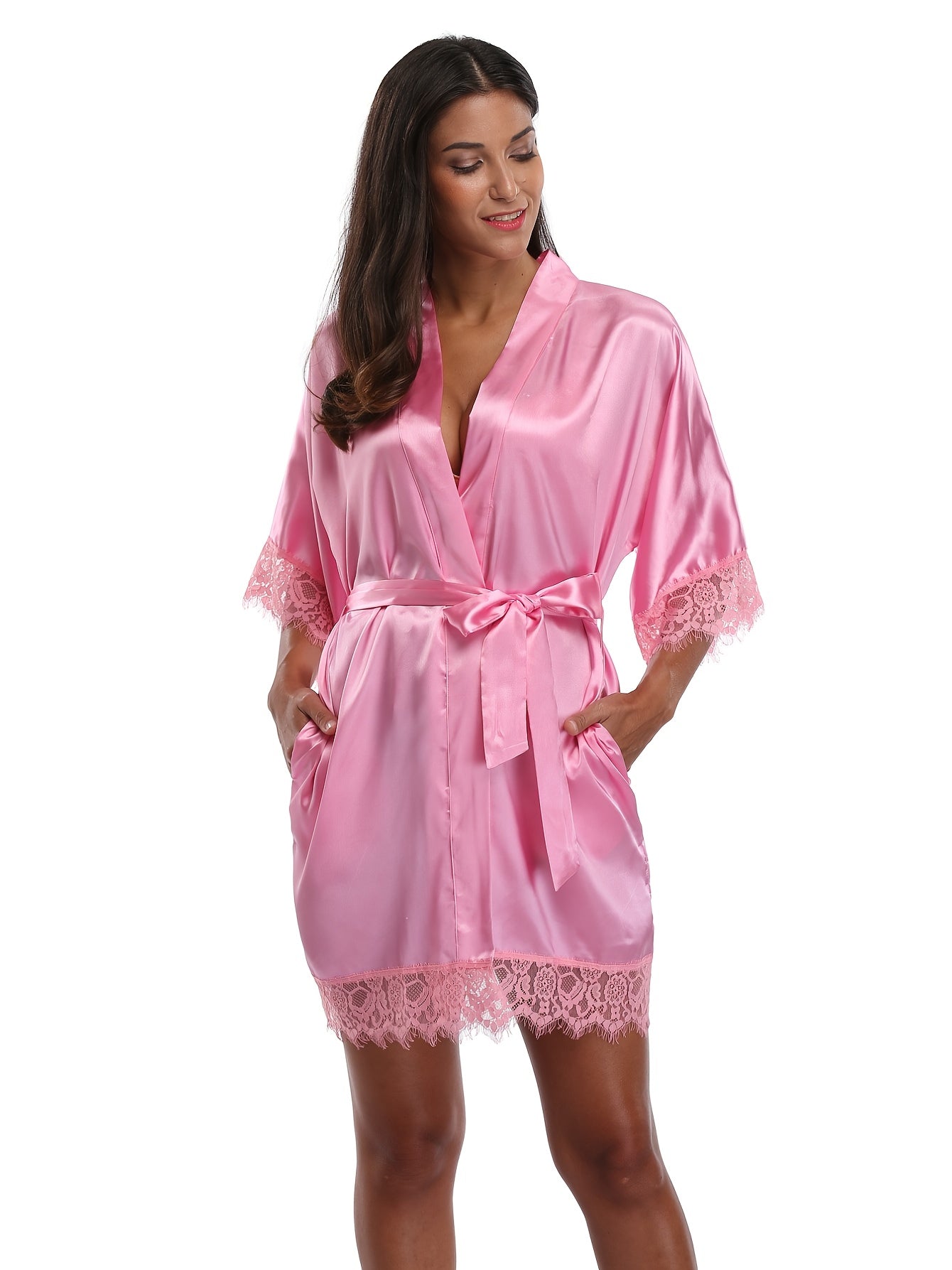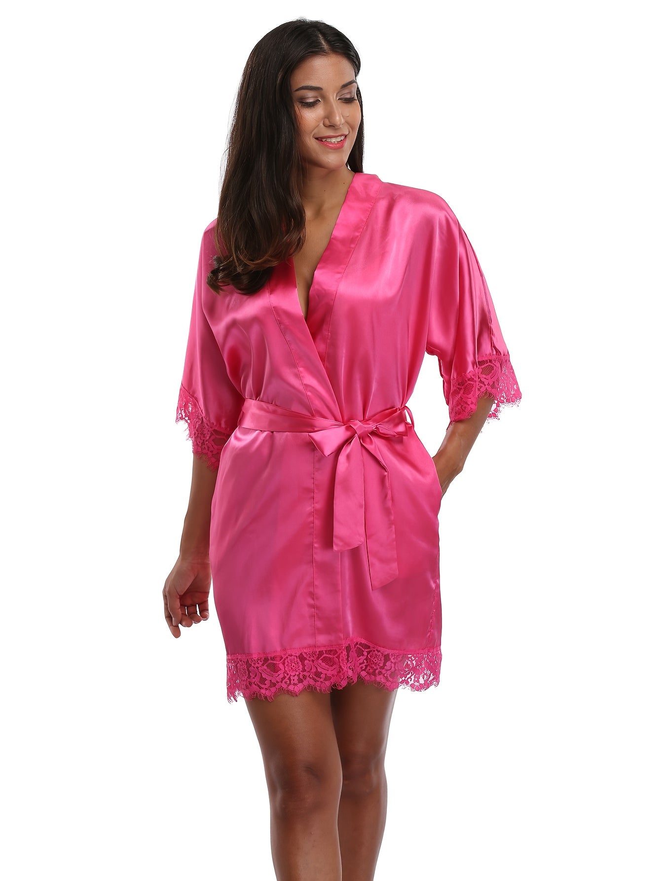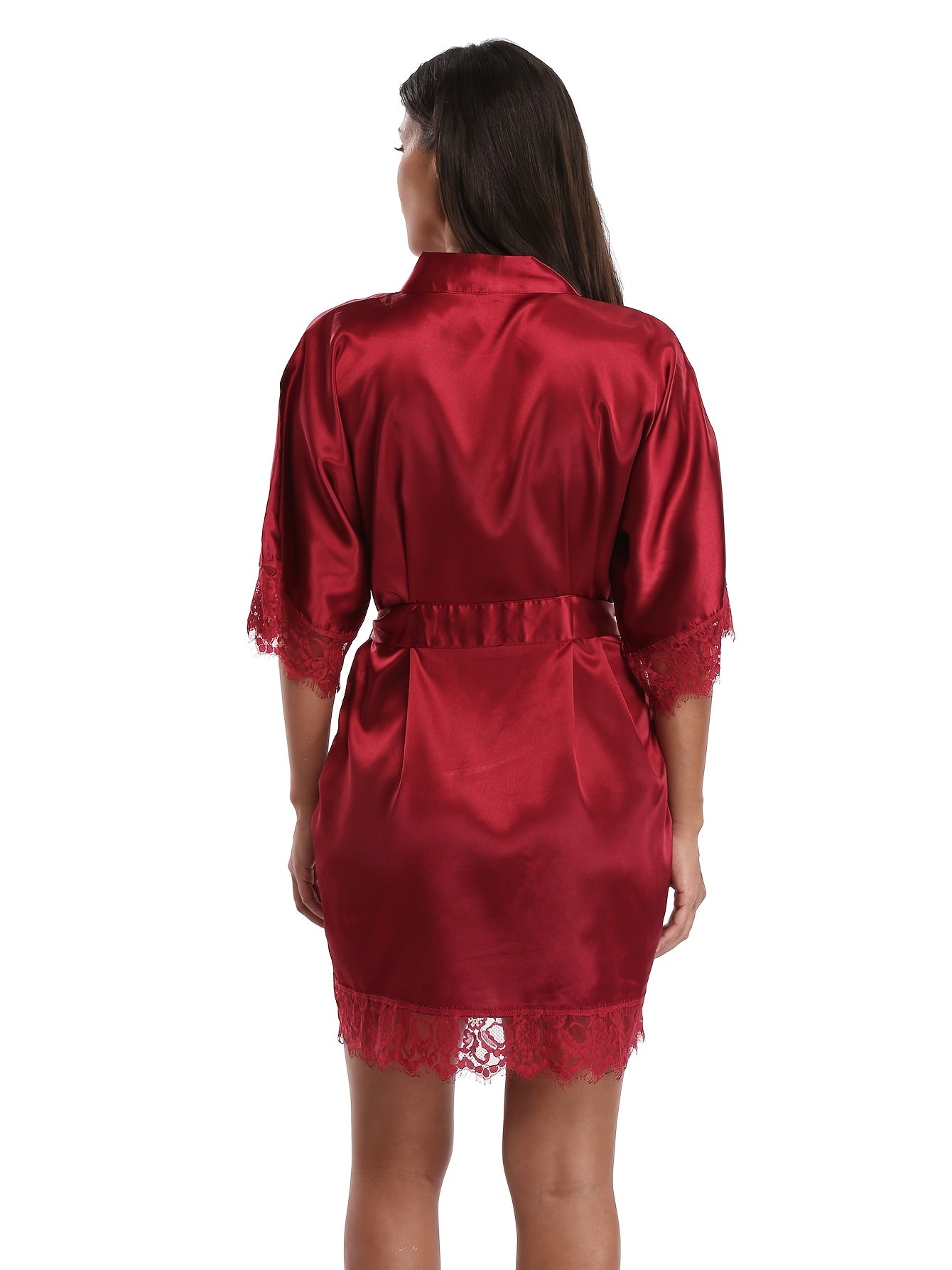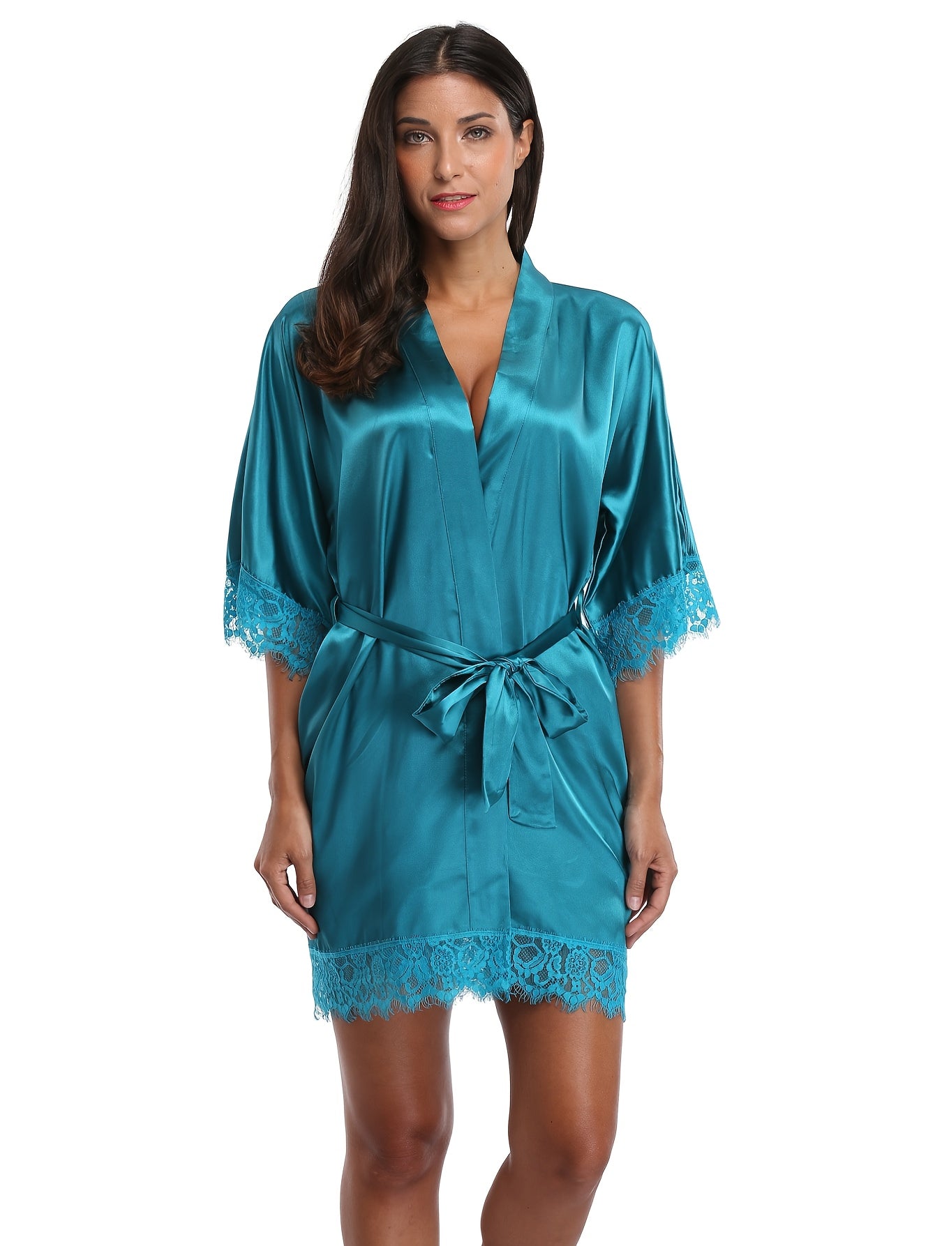 استمتع بتجربة فاخرة مع روب كيمونو أنيق بخامة الساتان الفاخرة. يتميز بلون أخضر تركوازي جذاب وتفاصيل من الدانتيل لإطلالة متميزة.