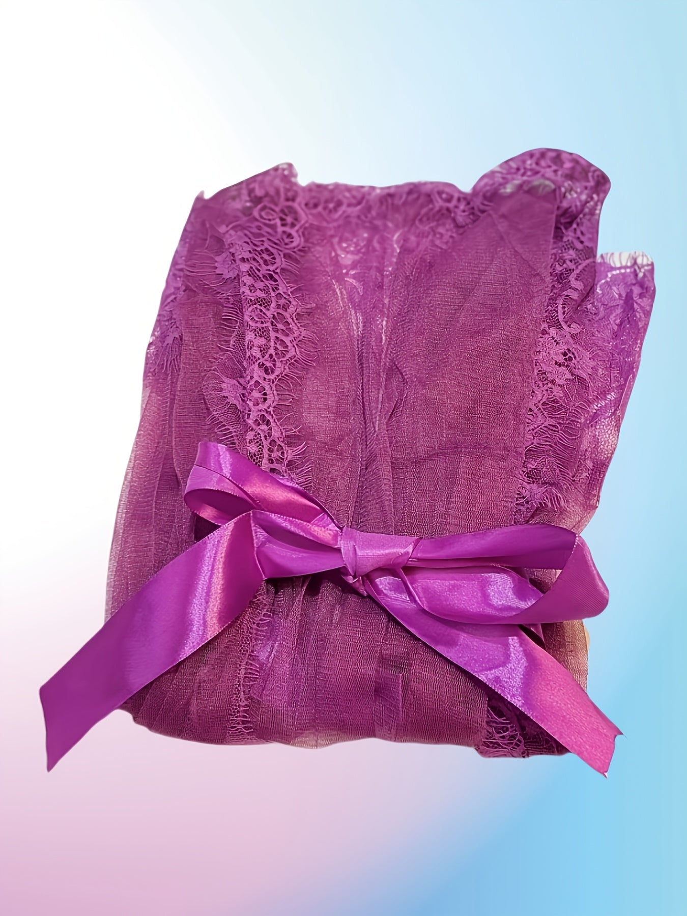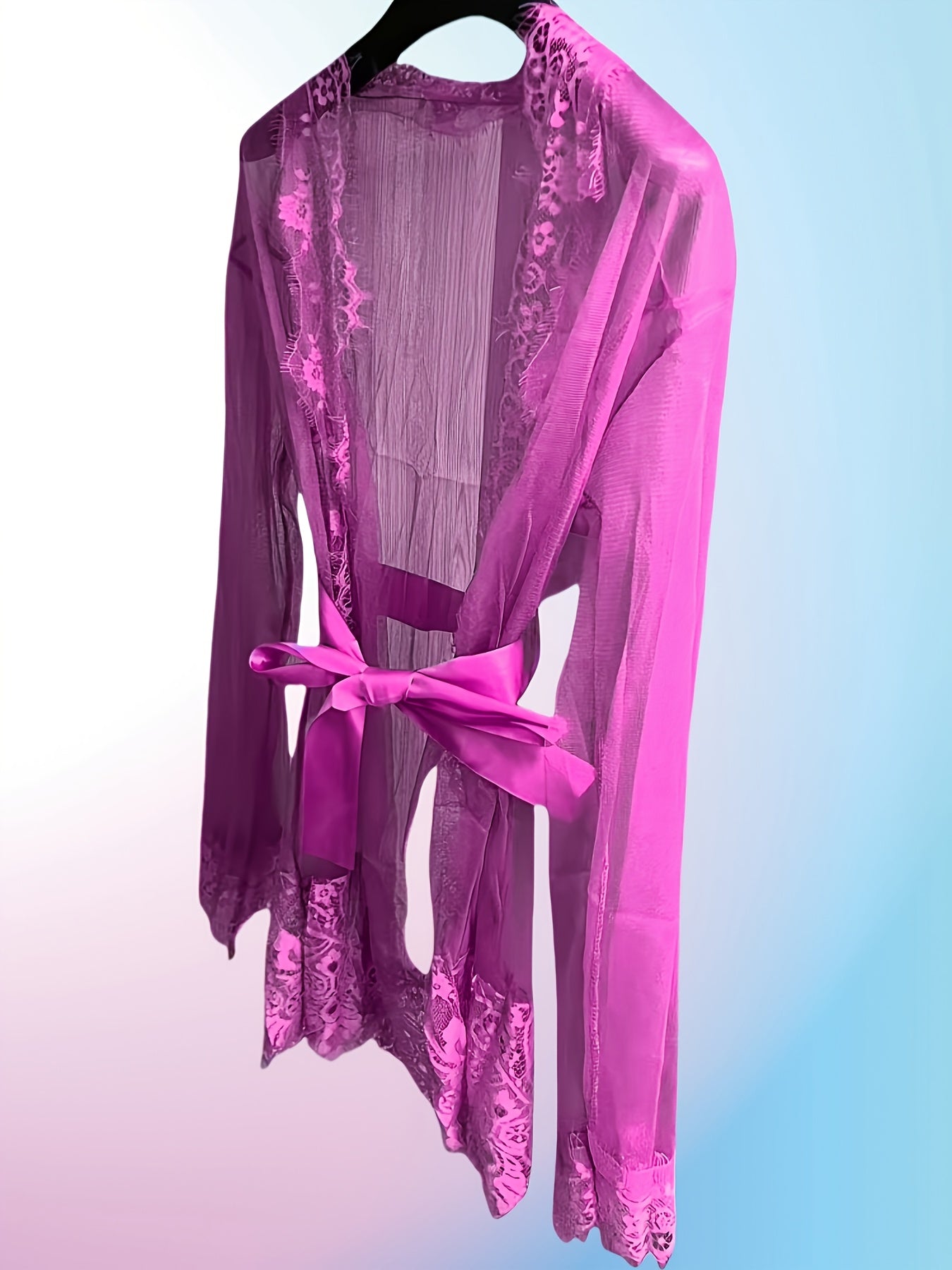 استمتع بأناقة وجمال هذا الروب النسائي المصنوع من قماش البوليسير المثالي. يتميز بتصميمه الفريد والأنيق مع تفاصيل الزهور.