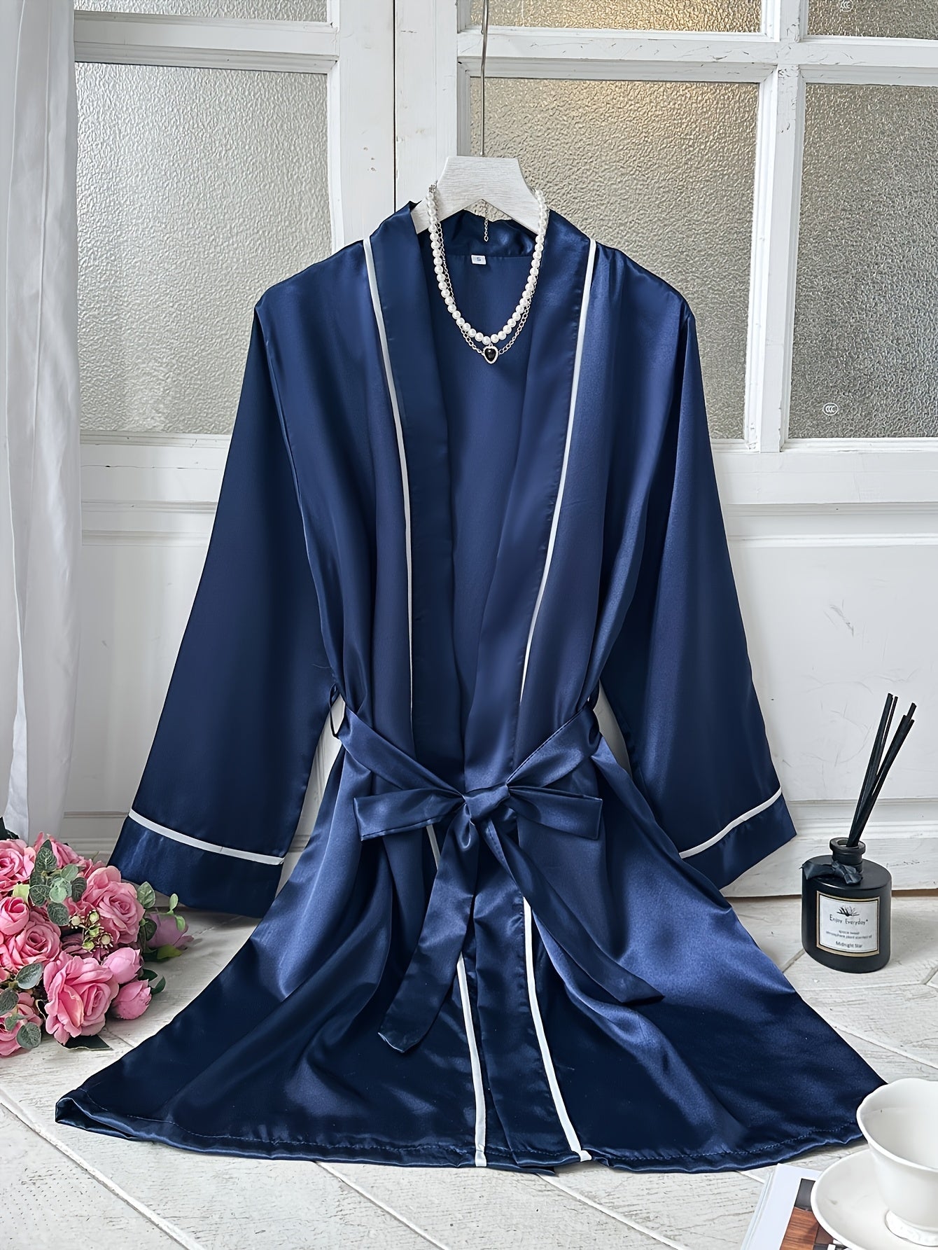 روب ساتان نسائي أنيق وردي