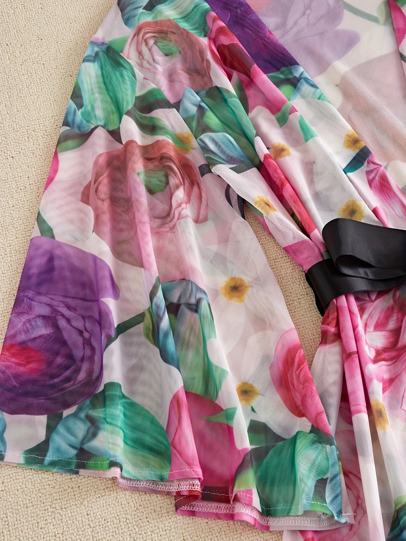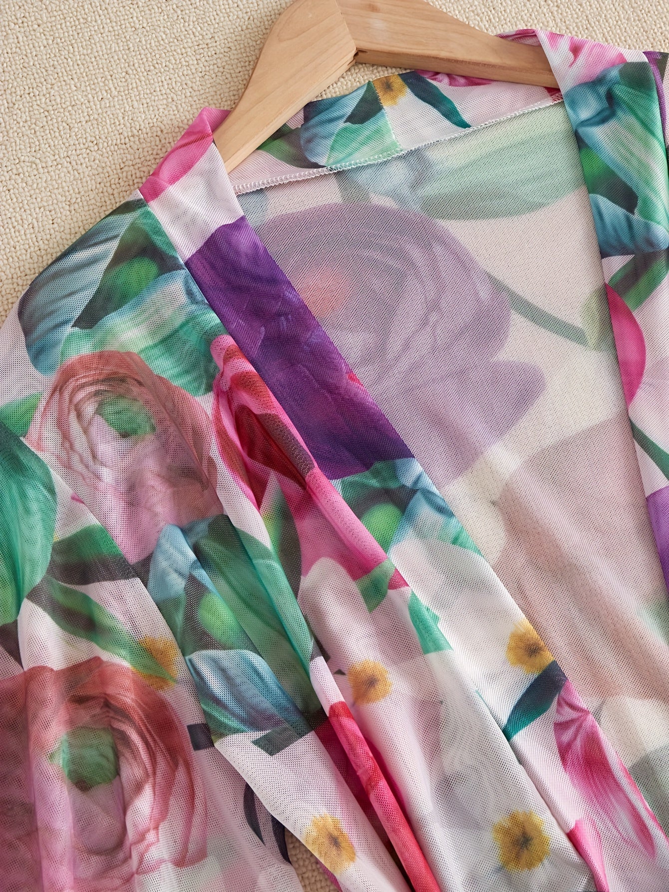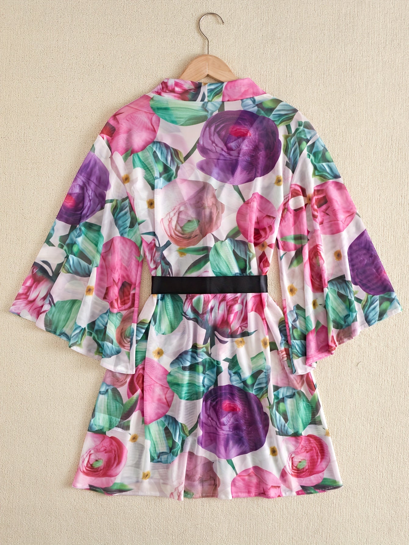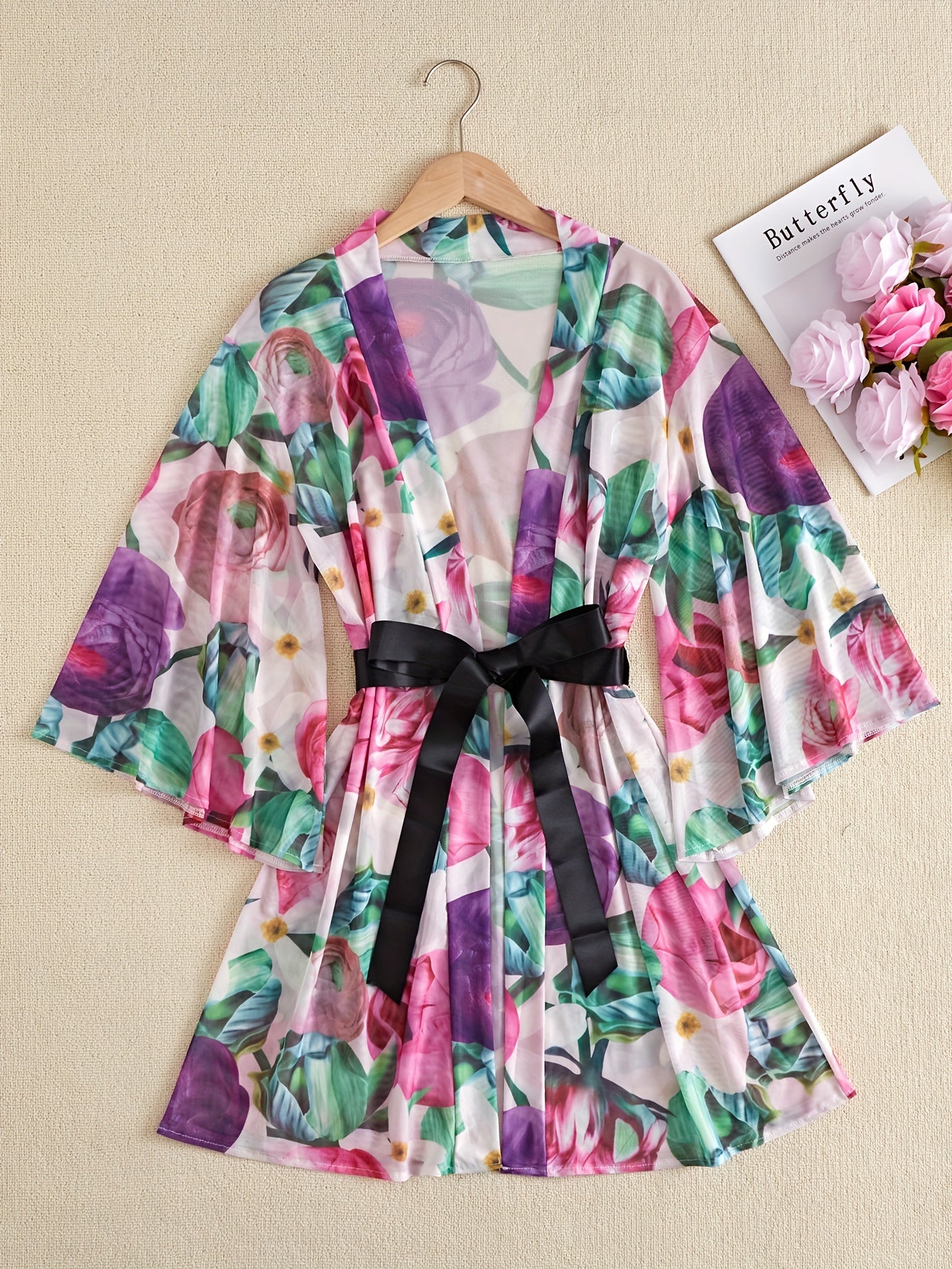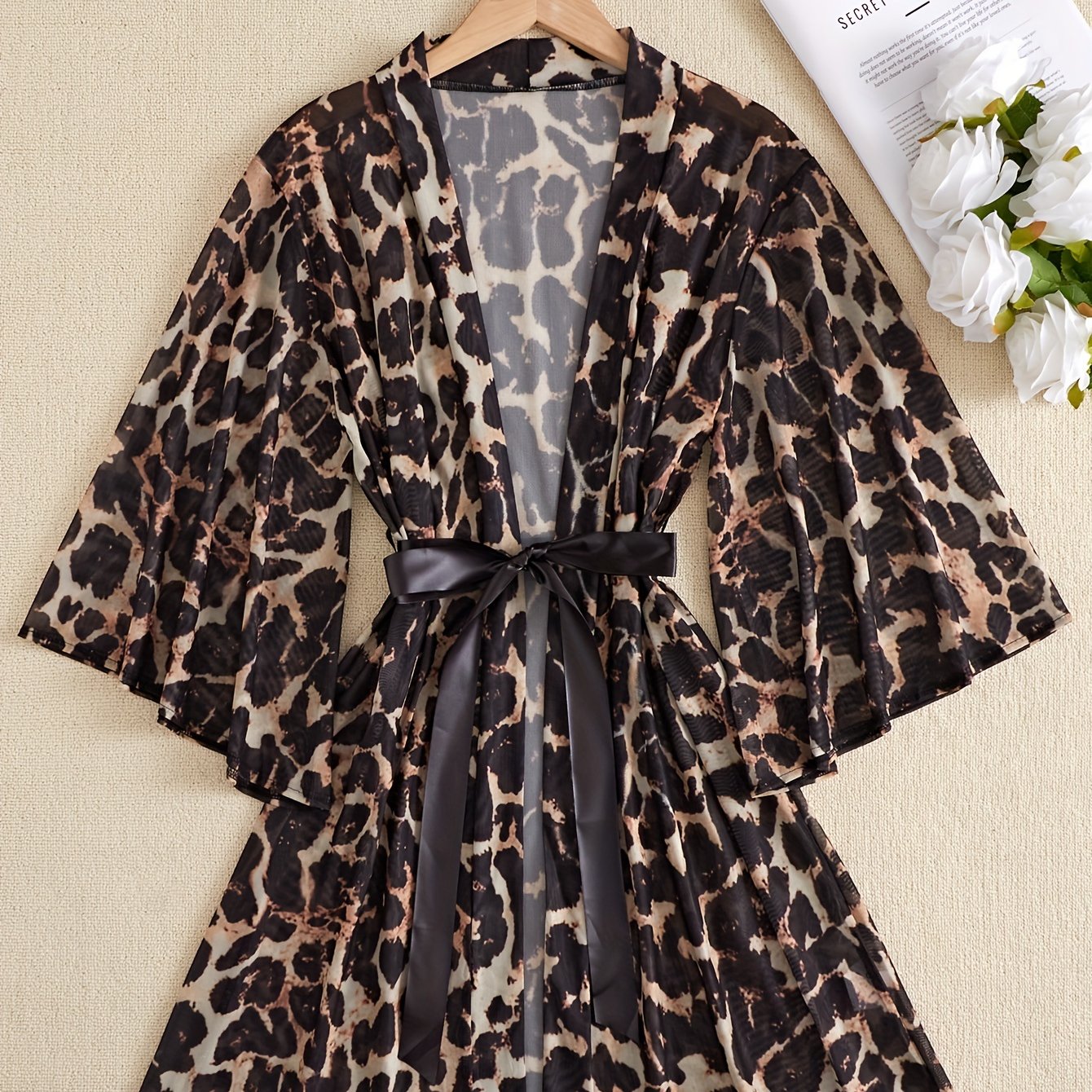 استمتعِ بإطلالة جذابة مع هذا الروب النسائي المثير ذو الياقة على شكل V. يتميز بتصميم جميل مع نمط زهور أنيق.