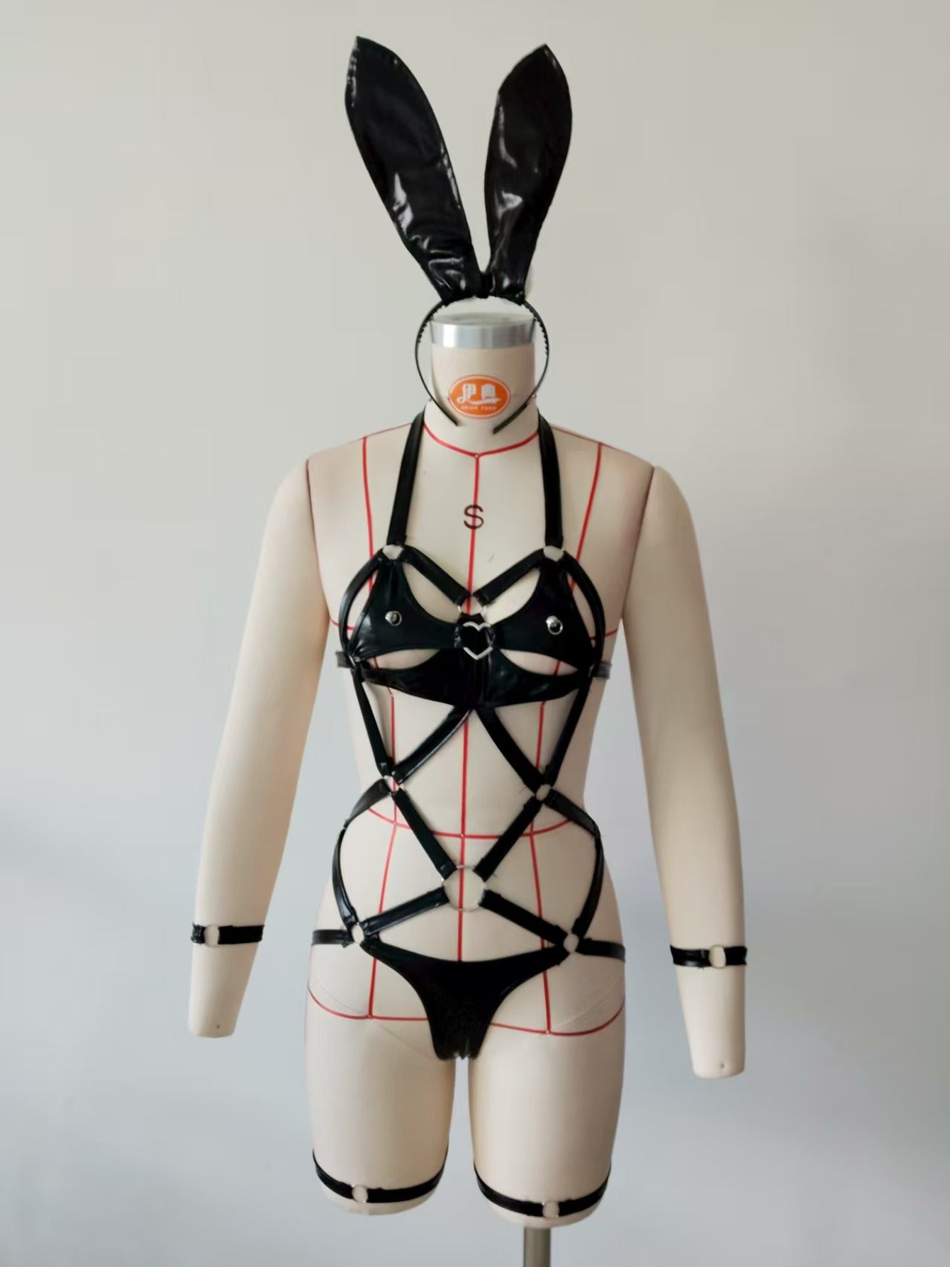 استعد للتميز في الحفلات والمناسبات مع زي الأرنب المثير. مصمم بأسلوب جذاب وممتع، هذا الزي يأتي مع حمالات متقاطعة وقبعة وأساور للساق.