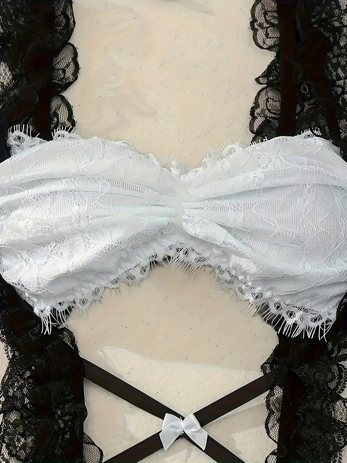 استمتع بأفضل تجربة في حفلات التماثيل والأحداث الخاصة مع زي الخادمة الجريئة. مصمم بديكور من الدانتيل مع رباط، هذا الزي الجريء سيجعلك محط الأنظار.