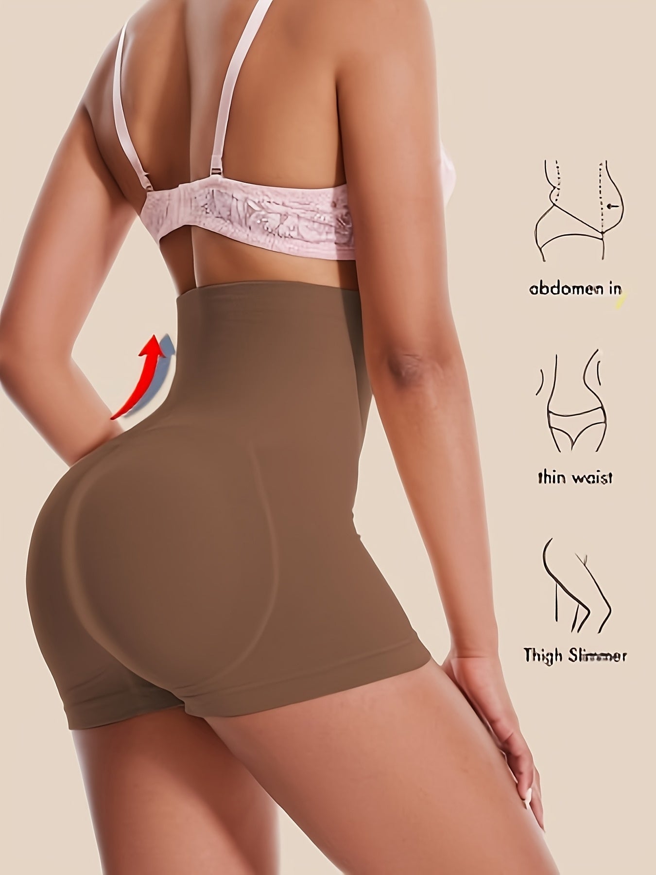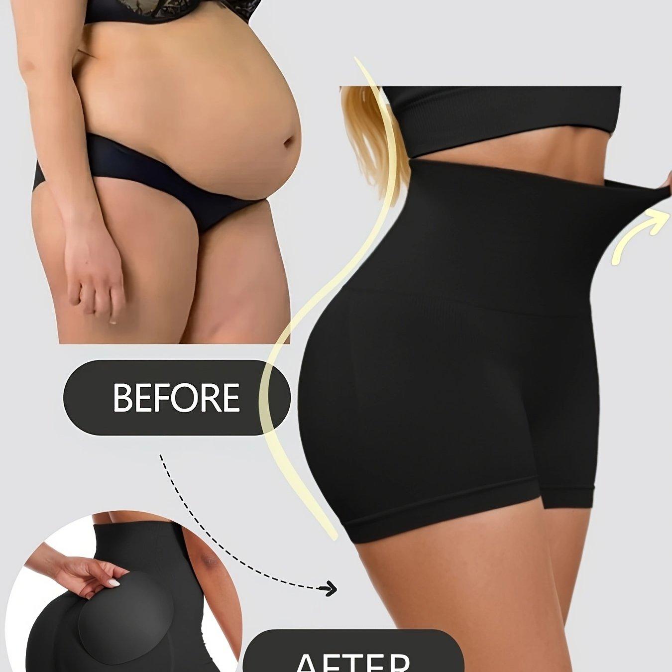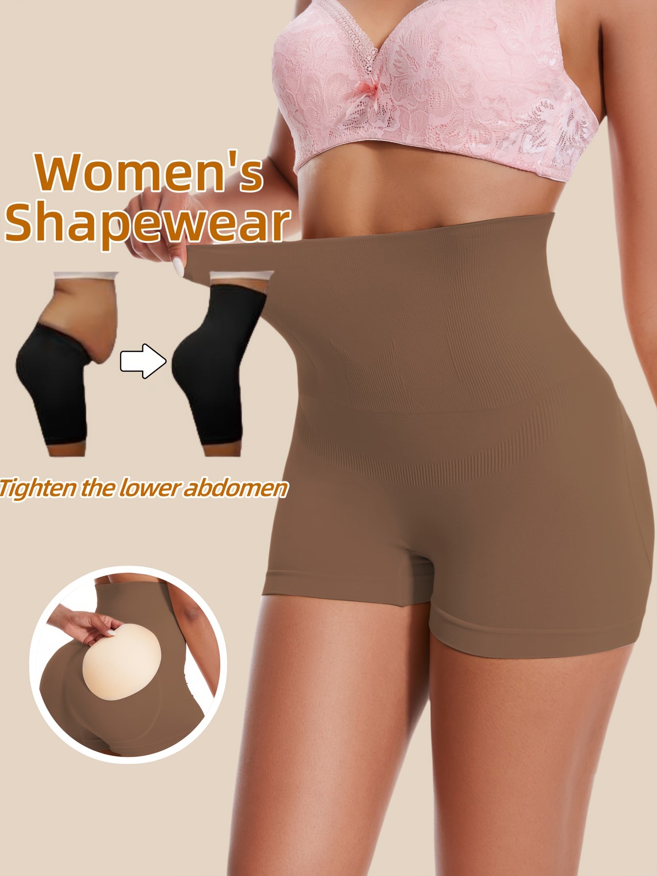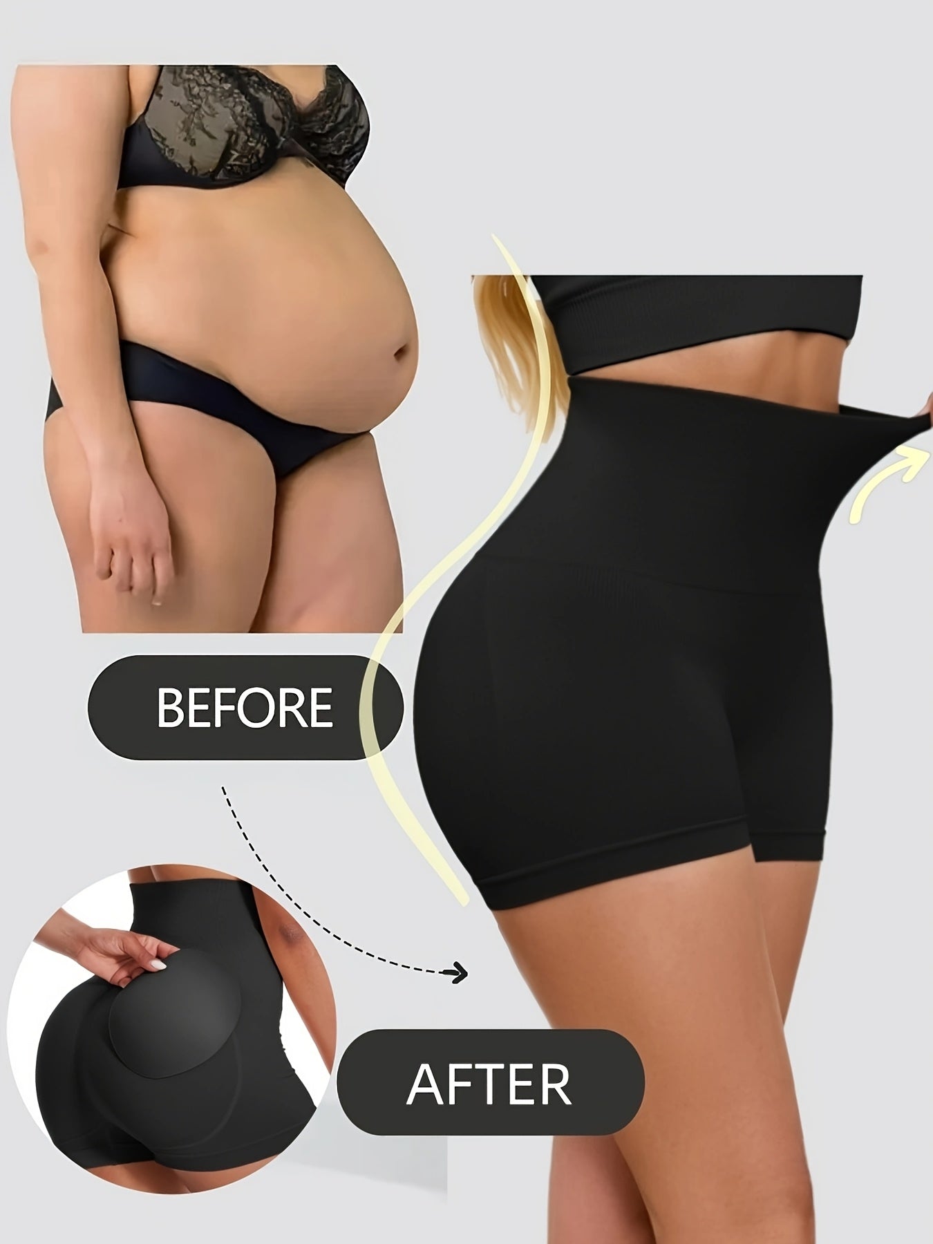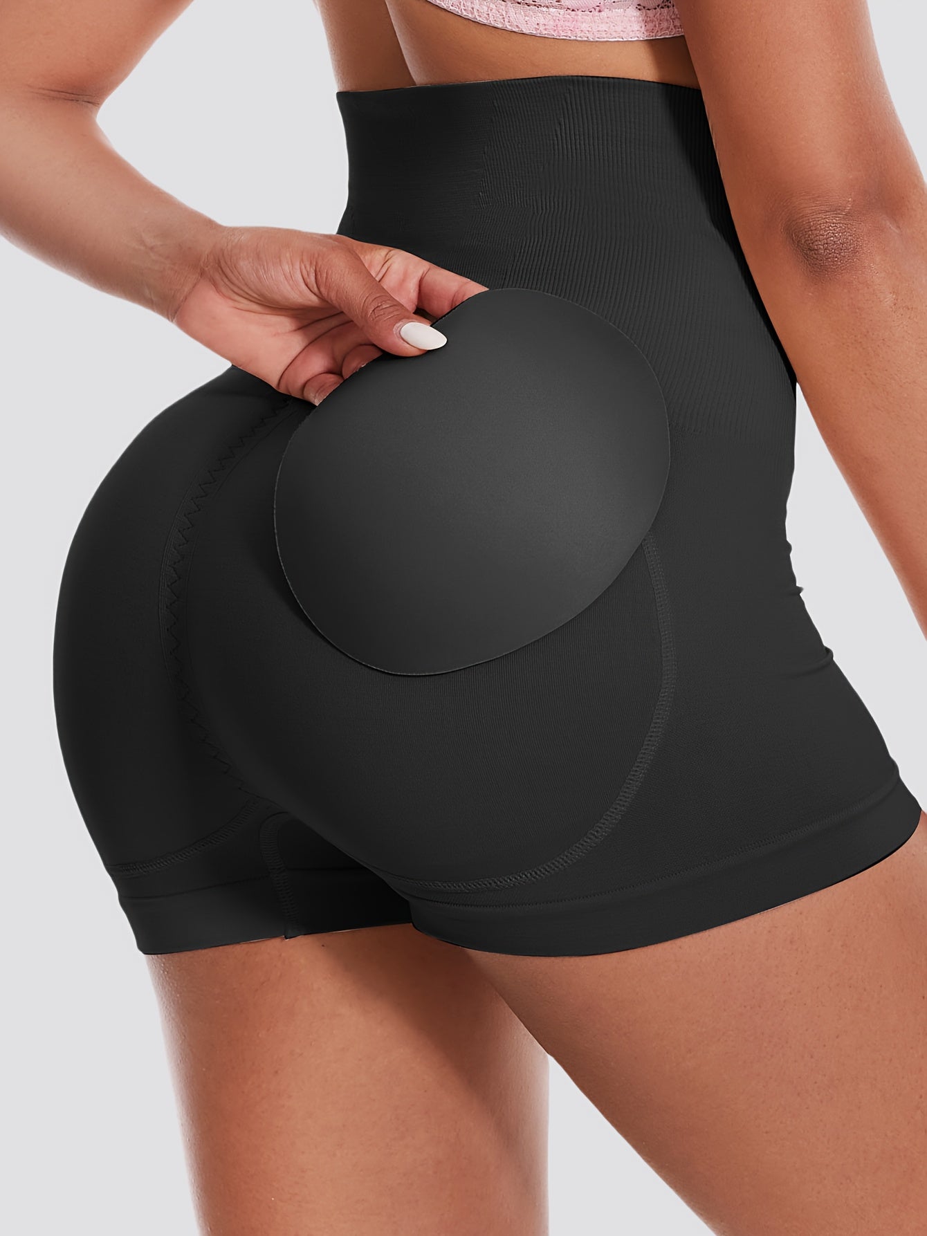 استمتعِ بالراحة والأناقة مع شورت التحكم في البطن النسائي العالي الخصر. مصنوع من قماش ناعم وقوي، حيث يتضمن وسادة دائرية قابلة للإزالة لتعزيز مظهر المؤخرة.