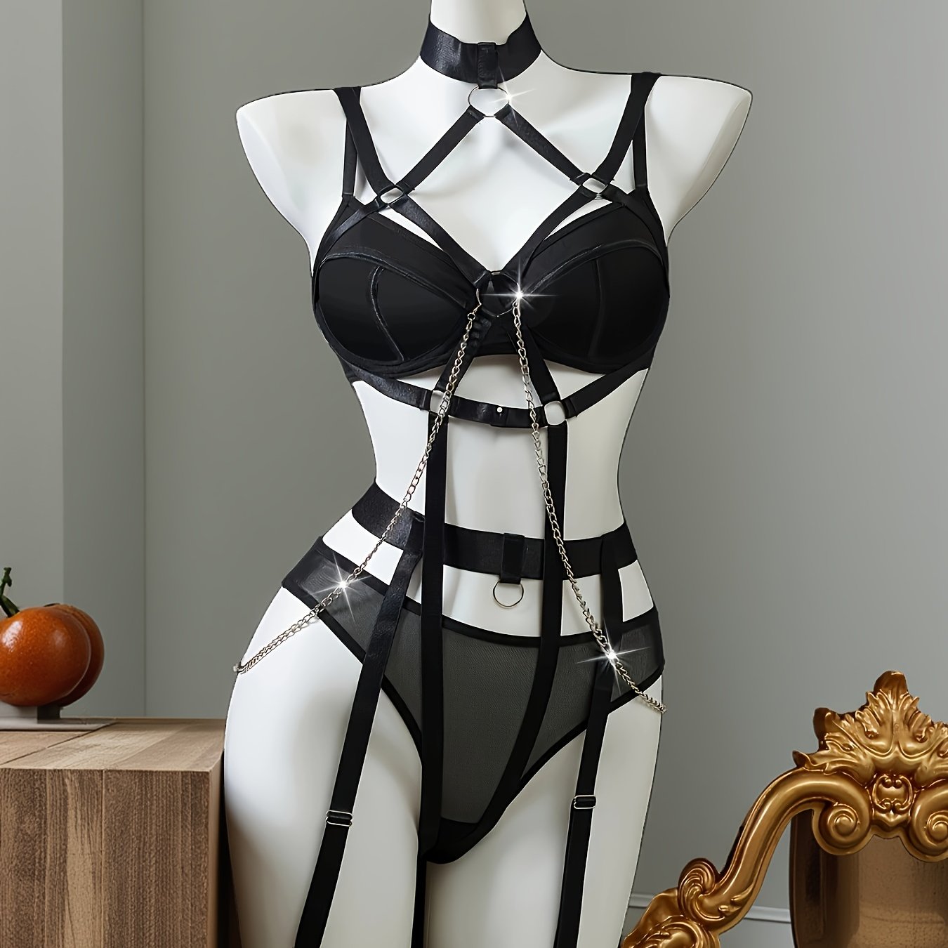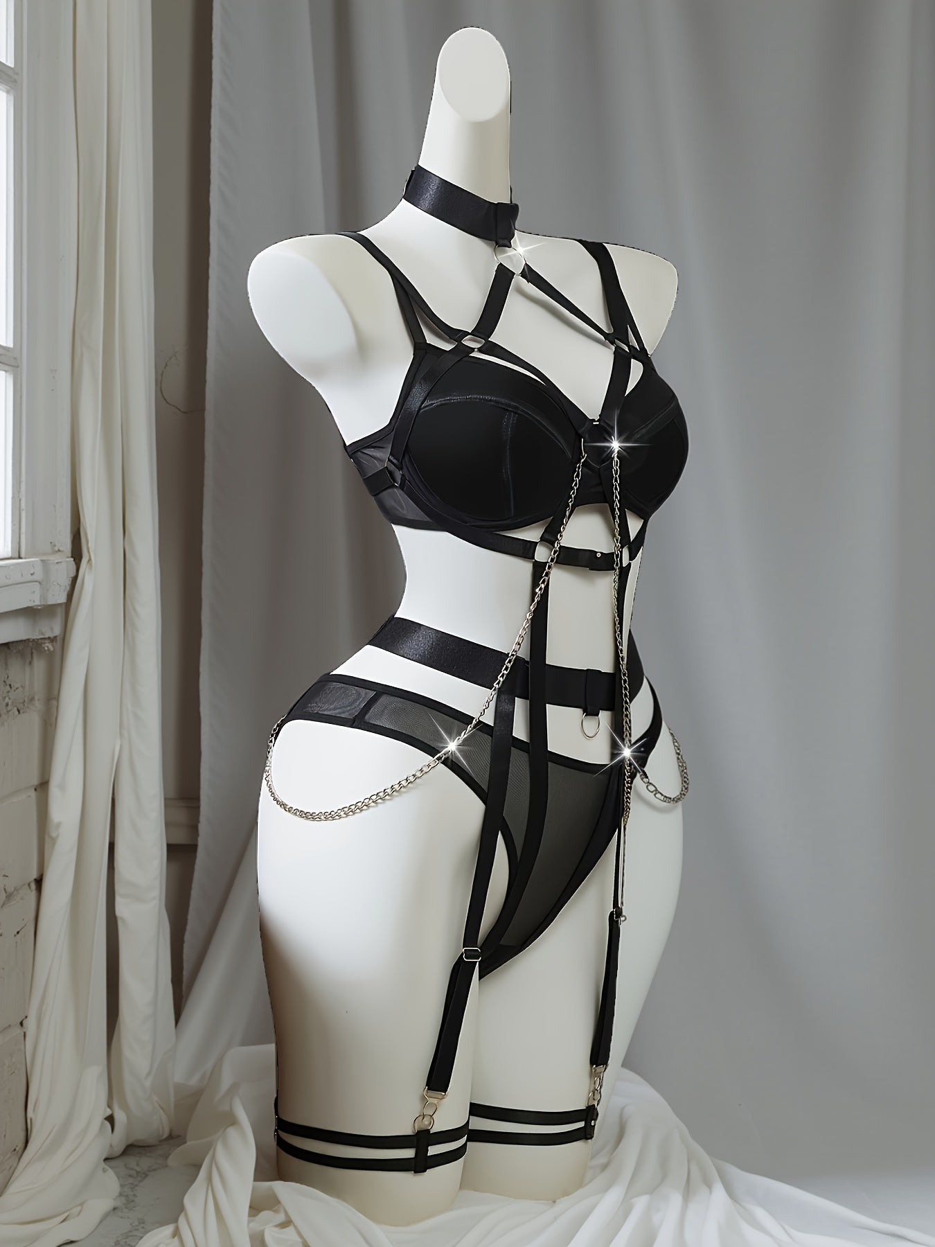 استمتع بتجربة جديدة ومثيرة مع طقم البدلة المغرية الرباعية القطع. هذا الطقم مناسب للبالغين ويجمع بين الجاذبية والأناقة.