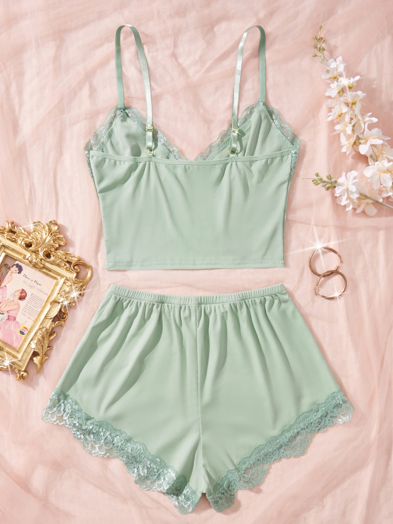 استمتع بأناقة وراحة مع طقم البيجامة النسائية. مصنوع من مواد عالية الجودة مع تفاصيل دانتيل مميزة. مثالي لموسم الاستخدام المتواصل.