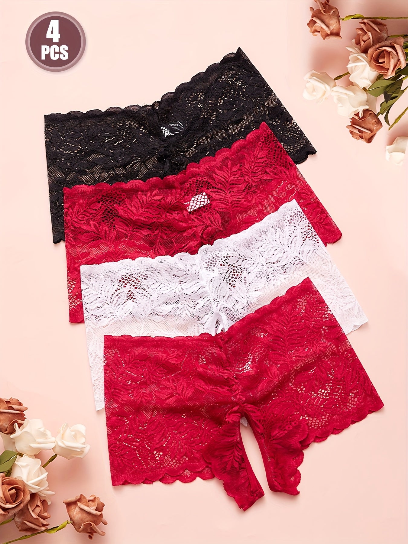 استمتع بلحظات لا تُنسى مع طقم الثونغ الدانتيل النسائي المؤلف من 4 قطع. يتميز هذا الطقم بالراحة والتهوية، ويضمن لك مظهراً جذاباً في أي مناسبة خاصة.