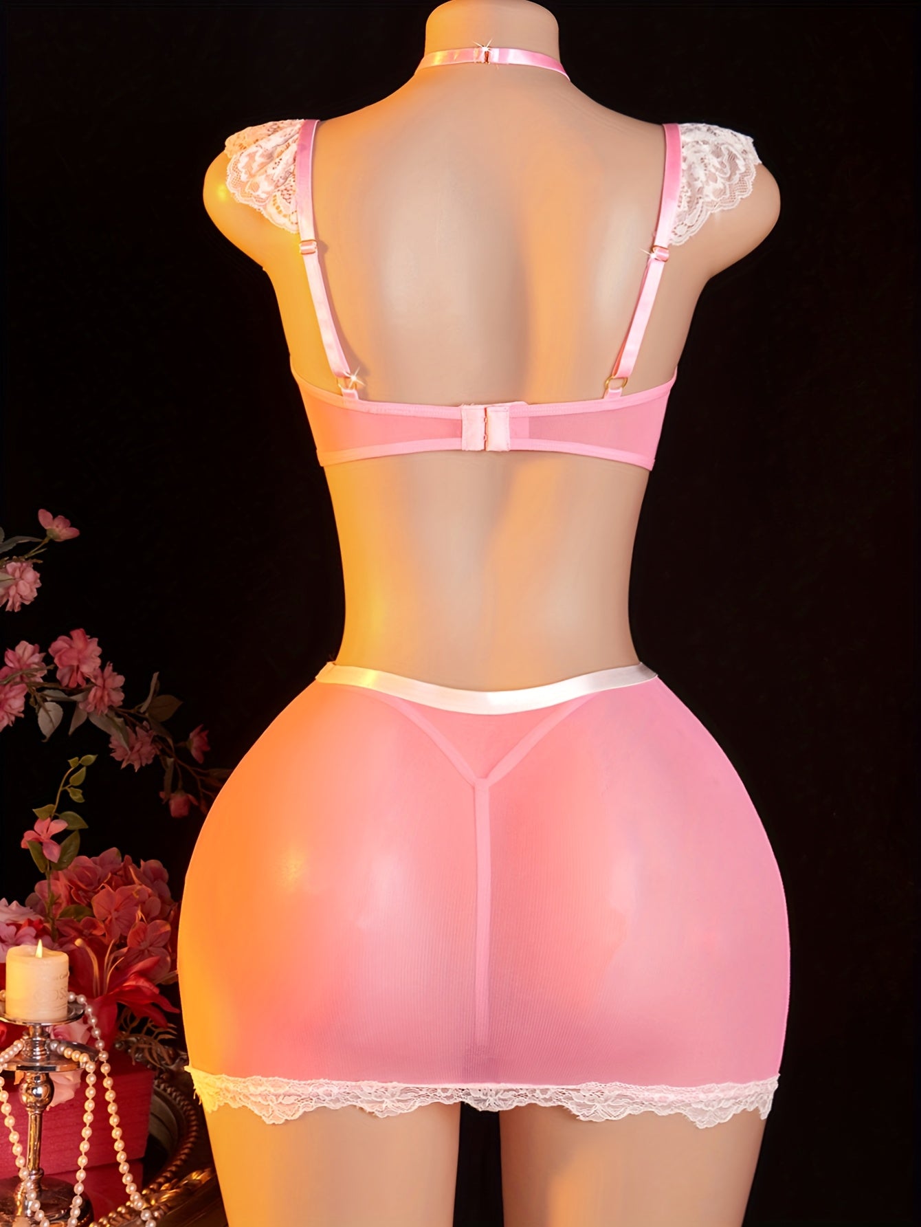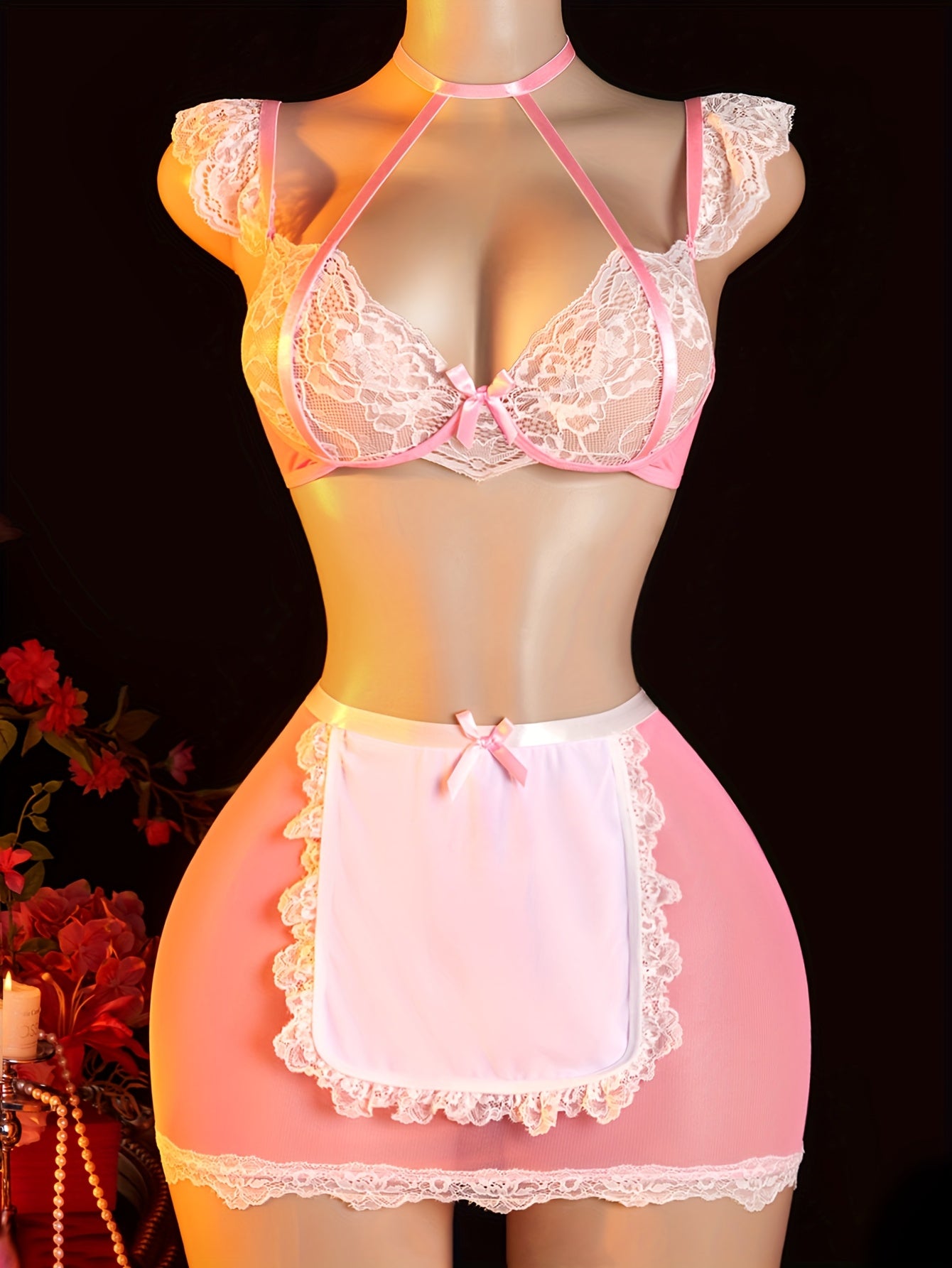 طقم زي تخيلي أنثوي وردي