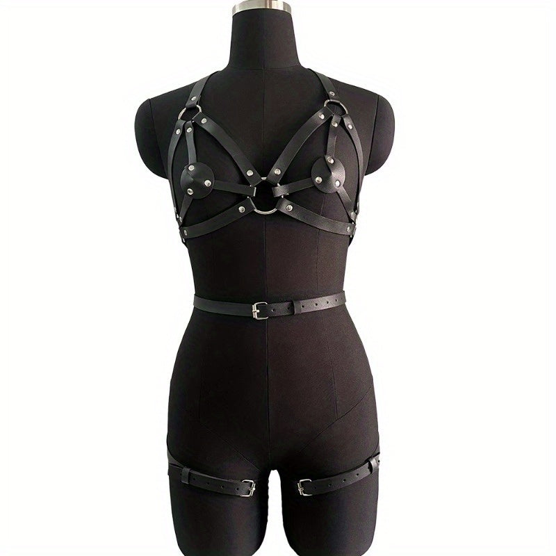 استمتع بأناقتك مع طقم الصدرية النسائية الجلدية الصناعية المكون من قطعتين. مصنوع من مواد غير قماشية ليمنحك مظهرًا جريئًا وجذابًا.