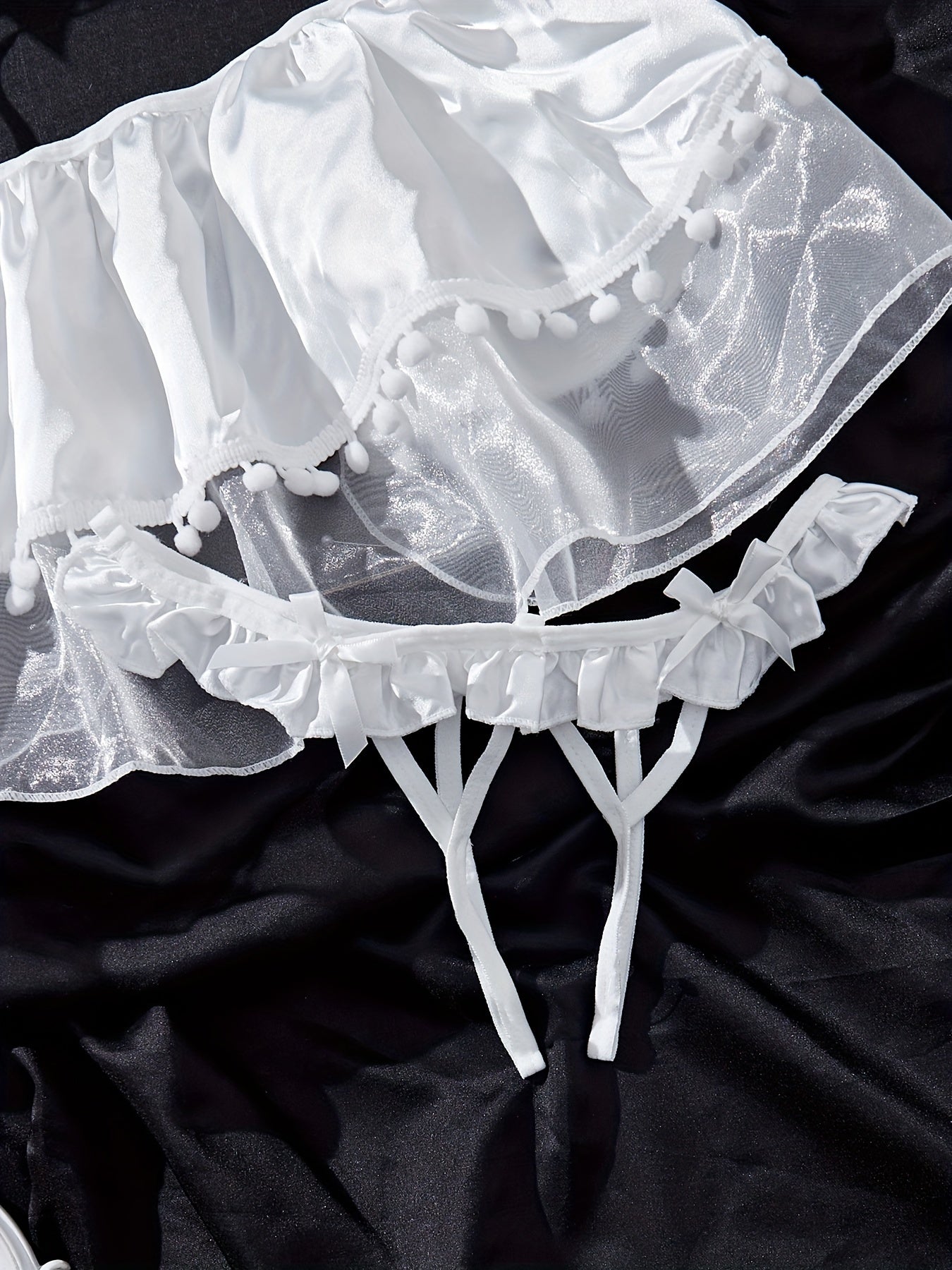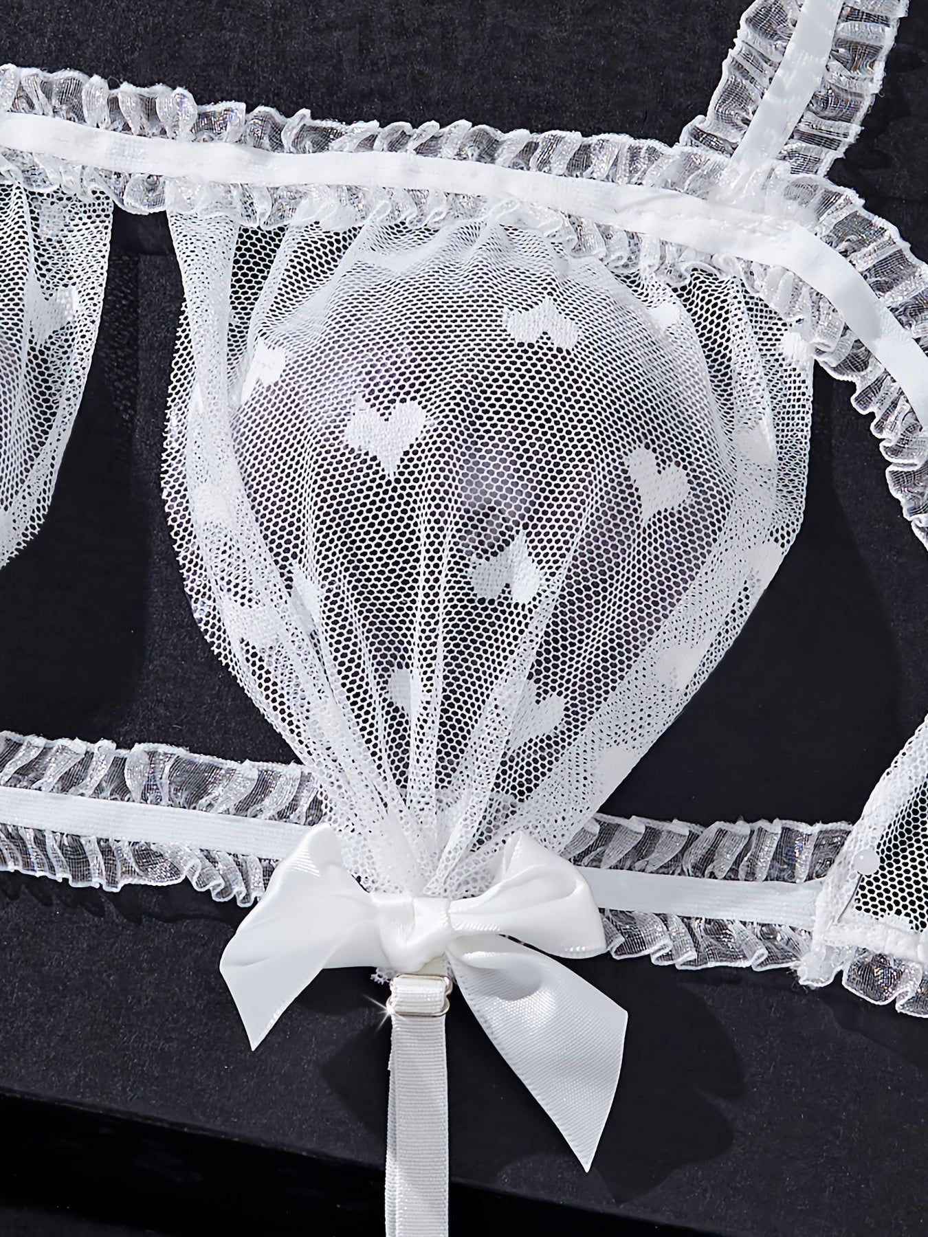 استمتع بأناقة وروعة مع طقم اللانجري الأنيق للنساء. يتميز بتصميم V-neck عميق وحواف من الدانتيل الأبيض الفاخر.