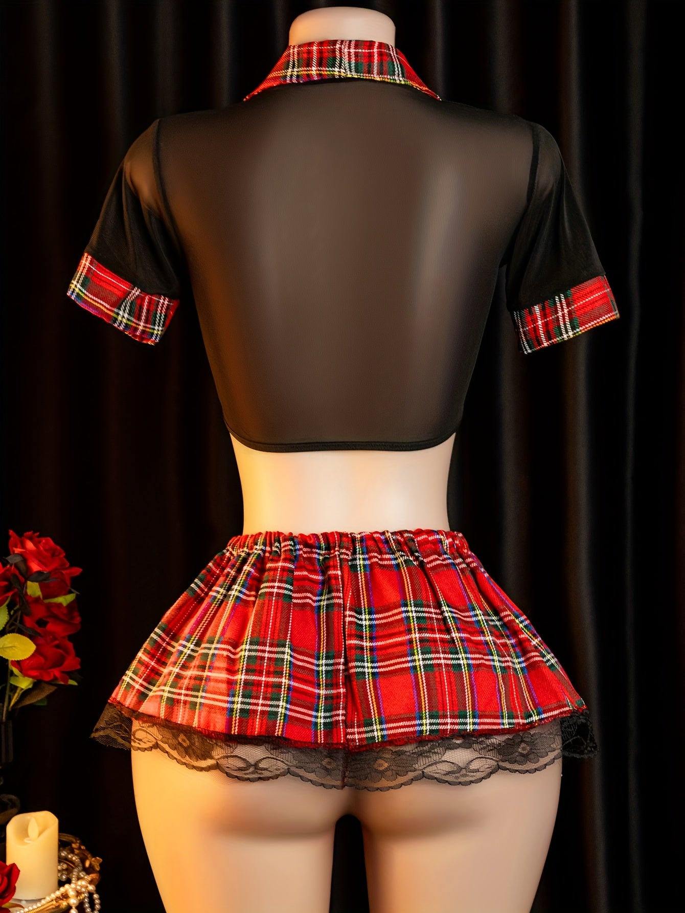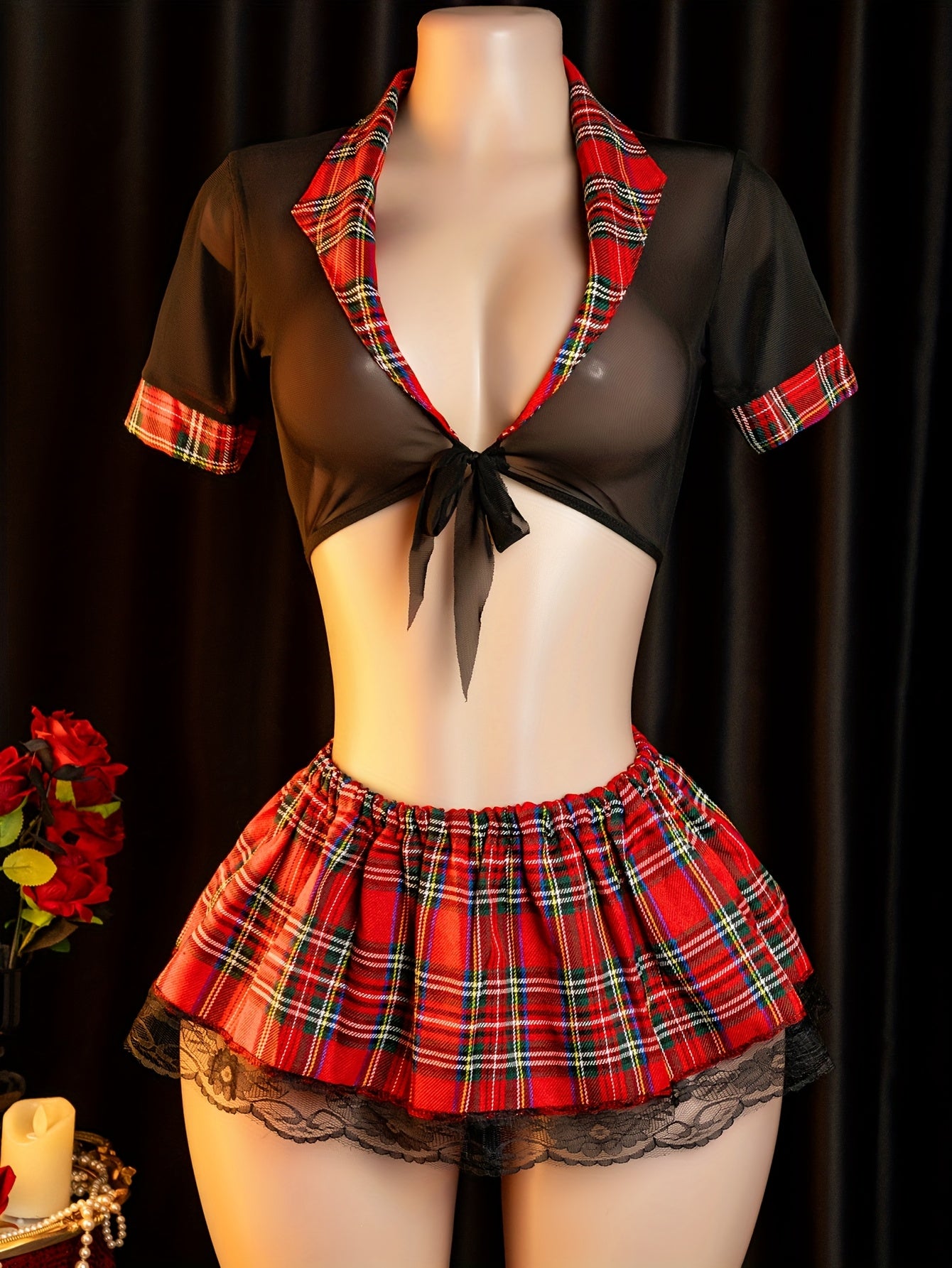 استمتع بأناقة وجرأة مع طقم اللانجري الشفاف الأنيق. يتكون من تنورة ميني وقمة مميزة، ويجمع بين الألوان الجميلة والأناقة العصرية.