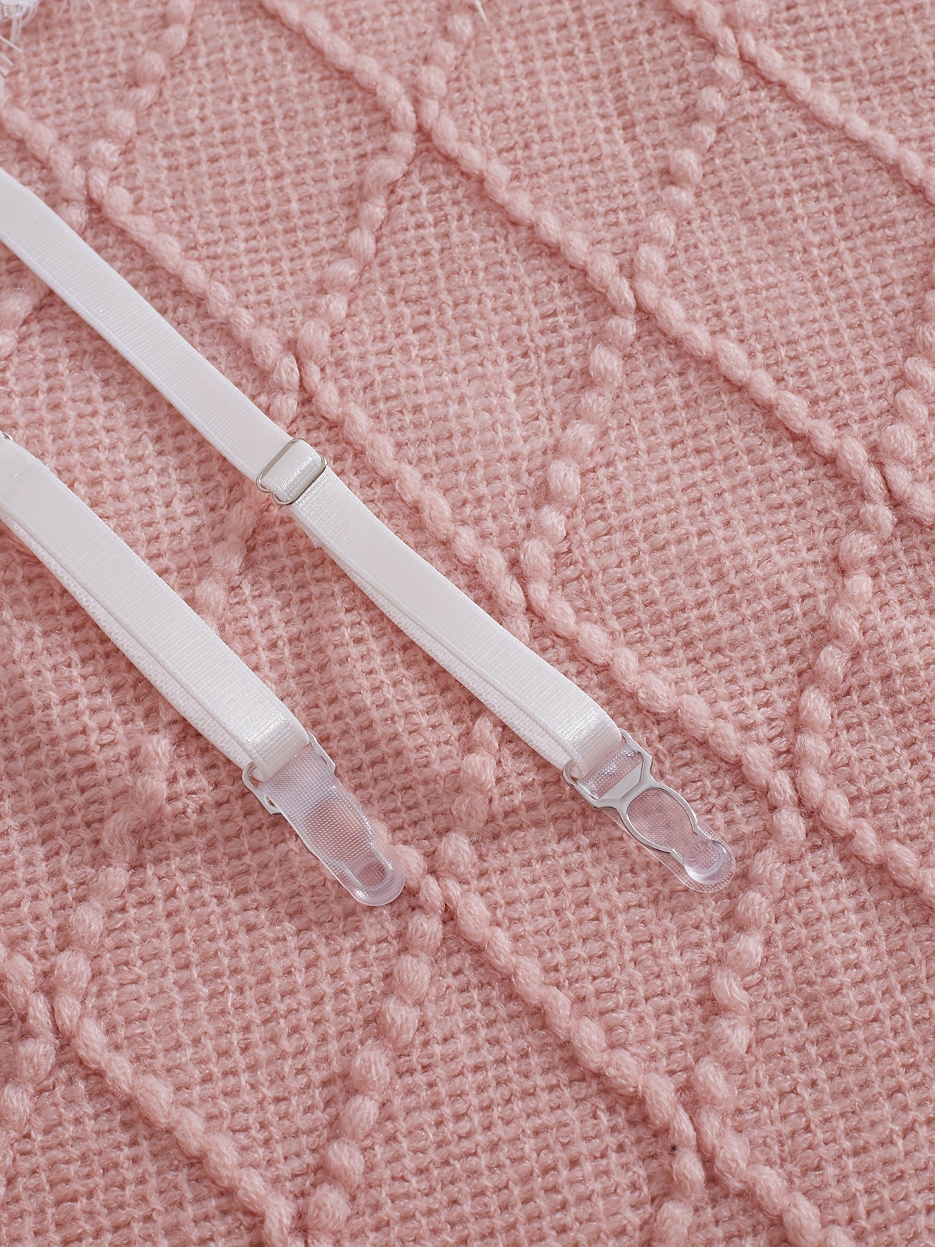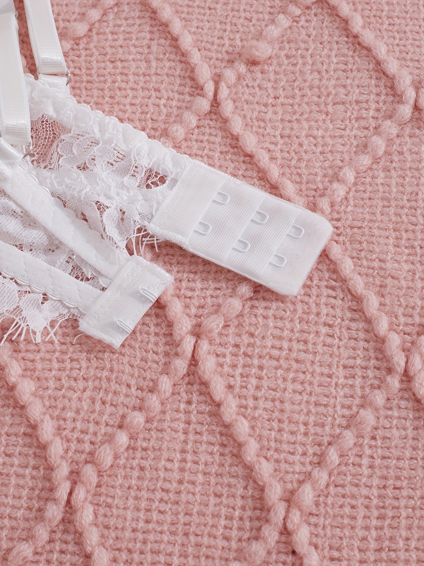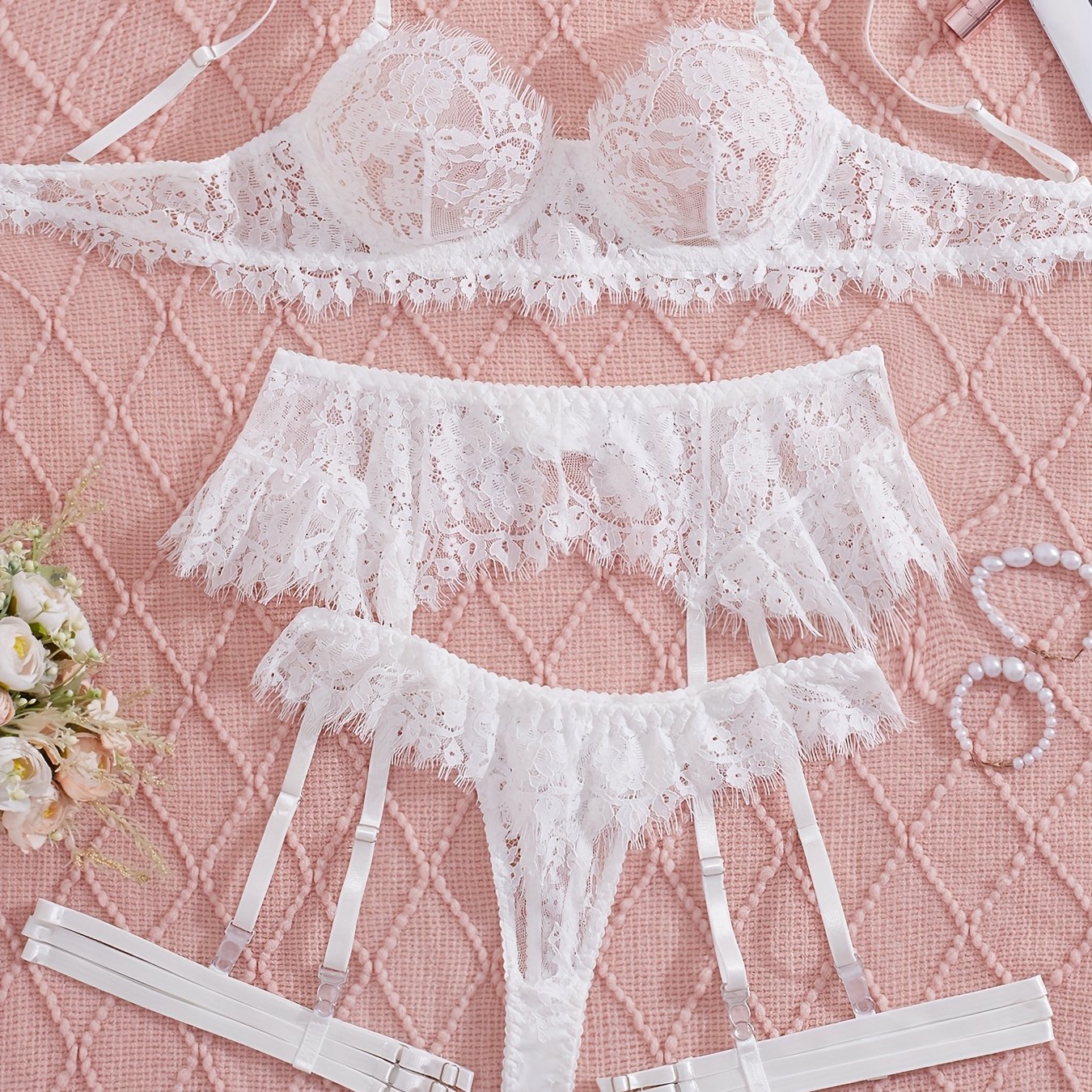 استمتعِ بأناقة وجاذبية مع طقم الملابس الداخلية الأنثوي هذا. مصنوع من الدانتيل الفاخر، يأتي مع حزام ساق لإضفاء لمسة مميزة.