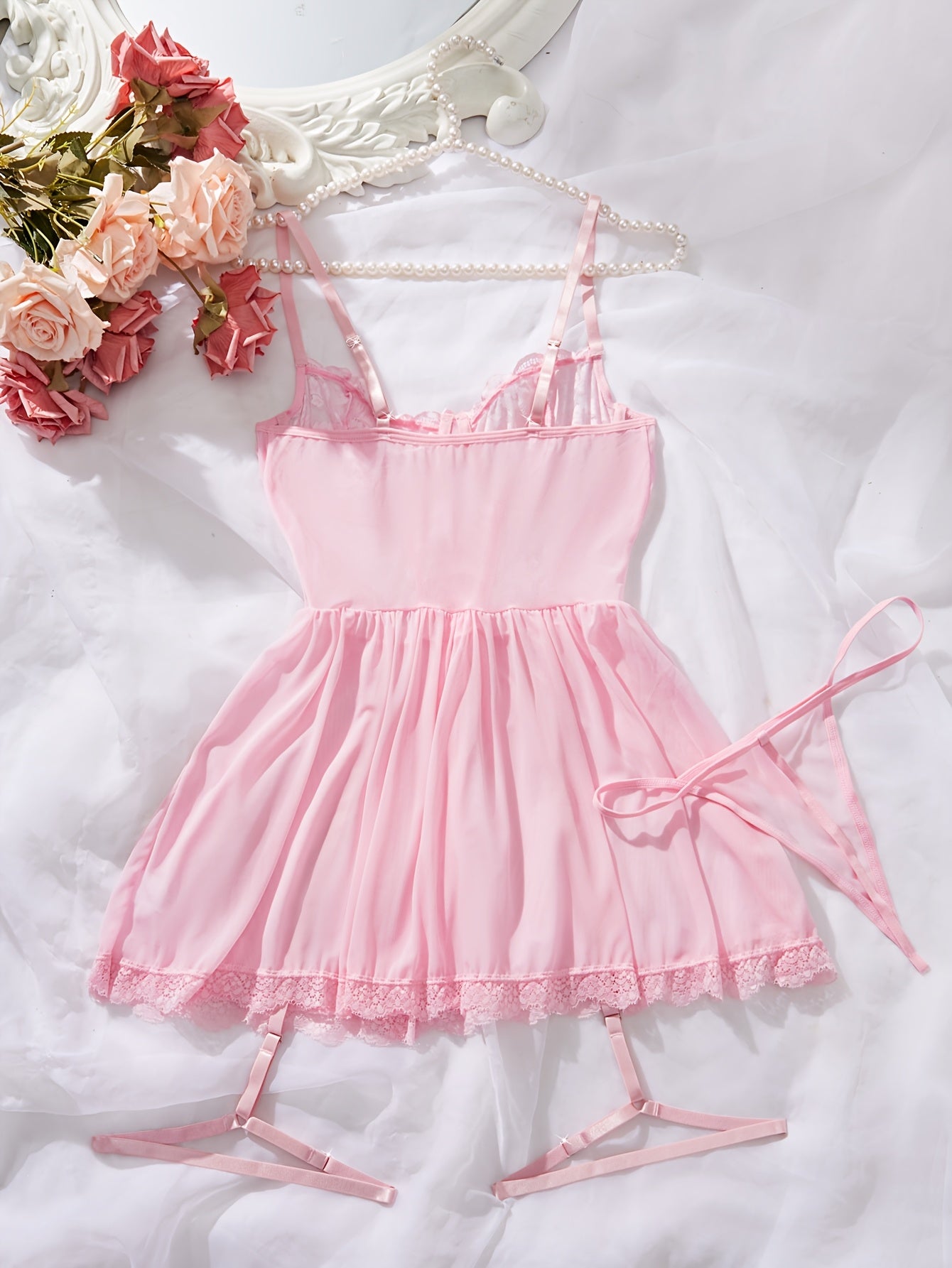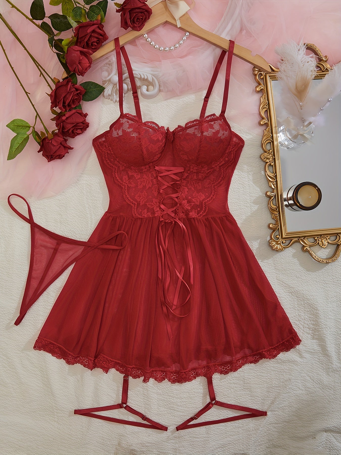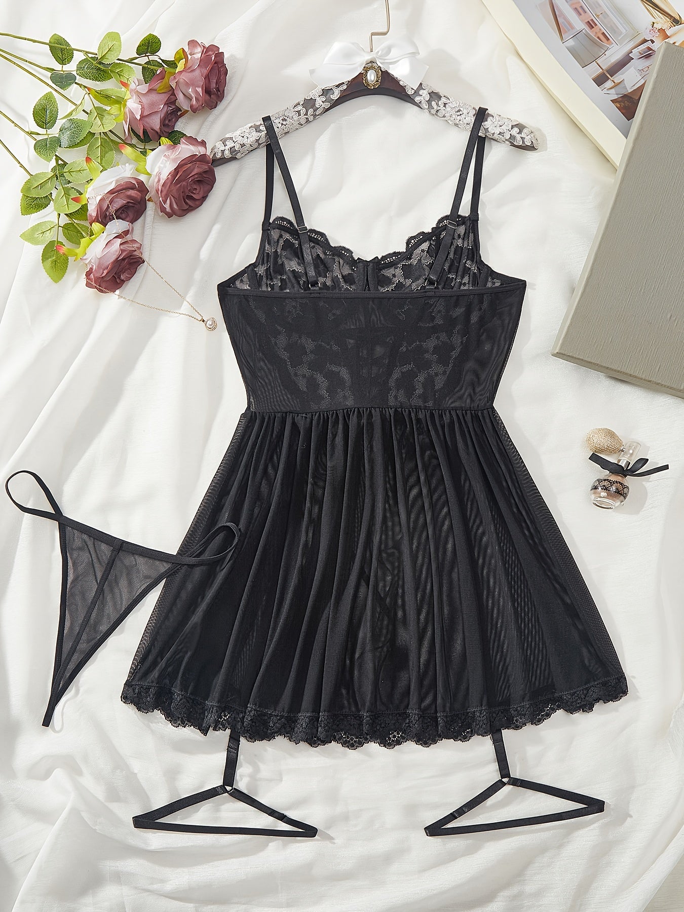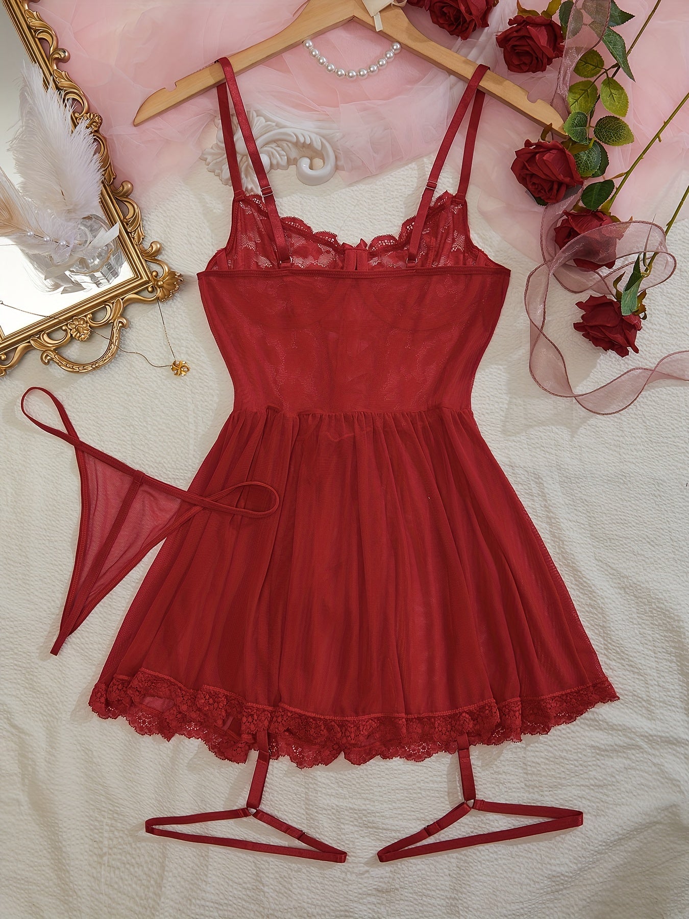 - يتكون من فستان شفاف مع تطريز الدانتيل.