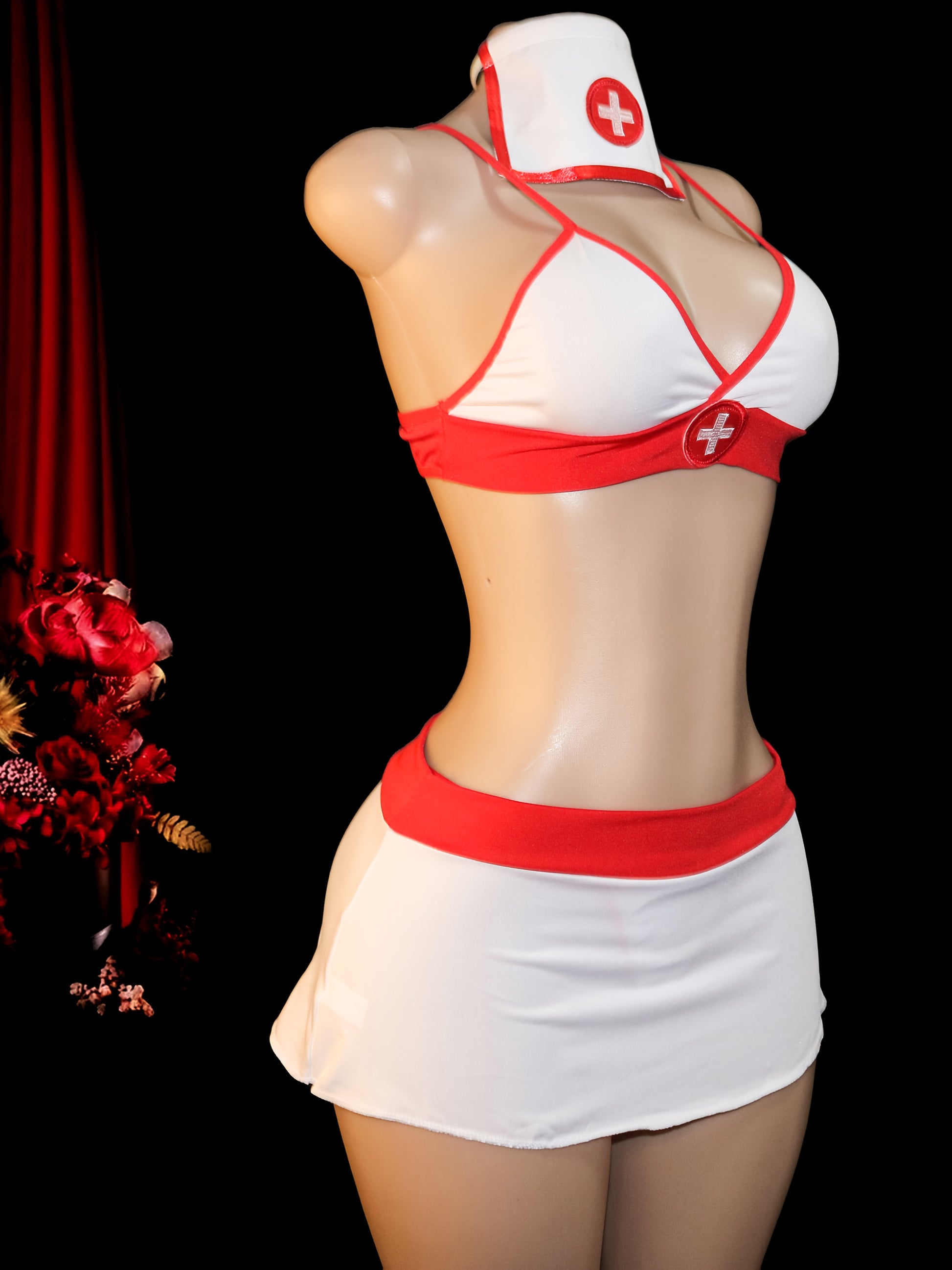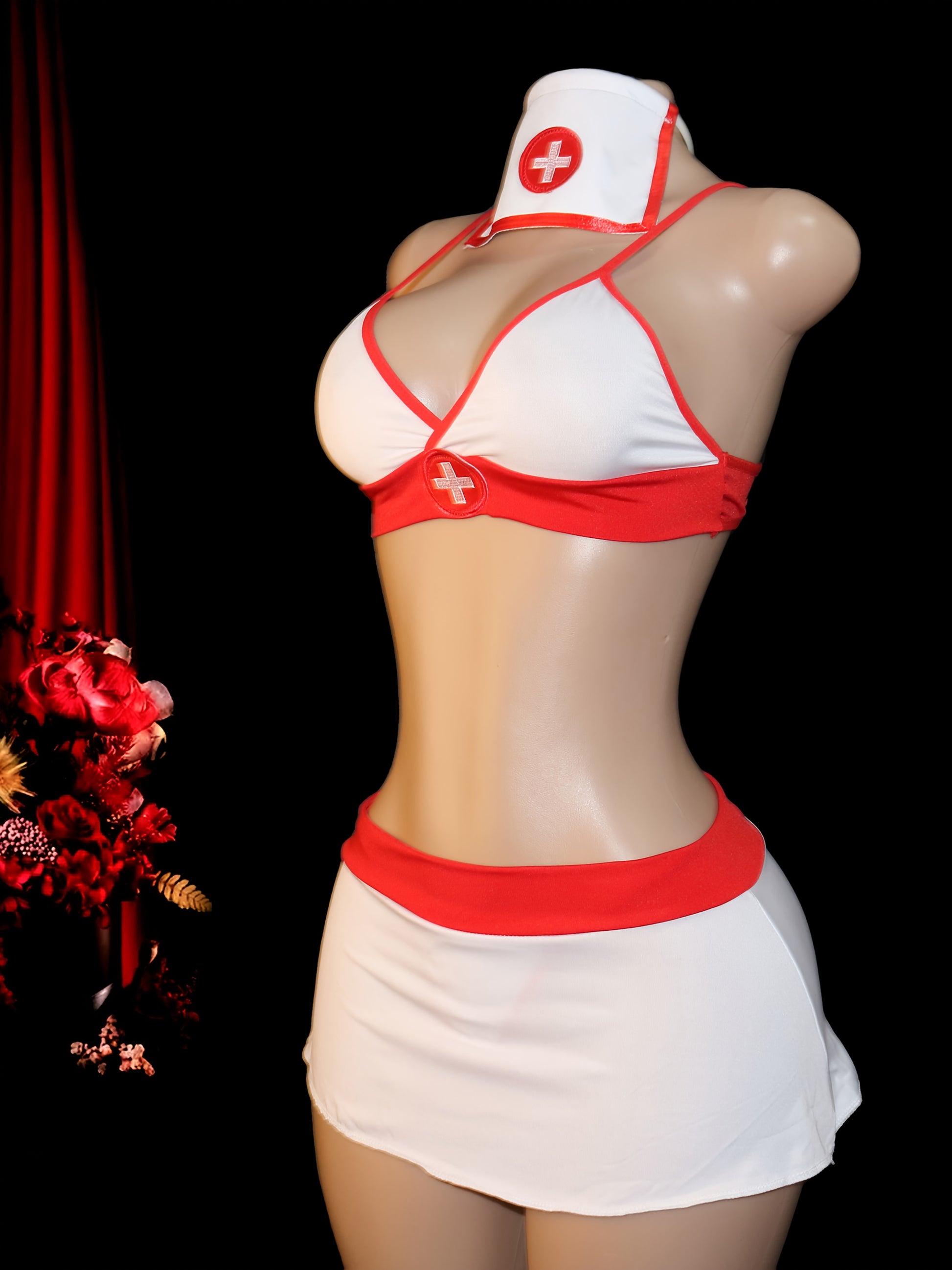 استمتع بتجربة مثيرة مع طقم الممرضة الجذاب المكون من 4 قطع. مثالي لألعاب الأدوار وتألقك في الحفلات.