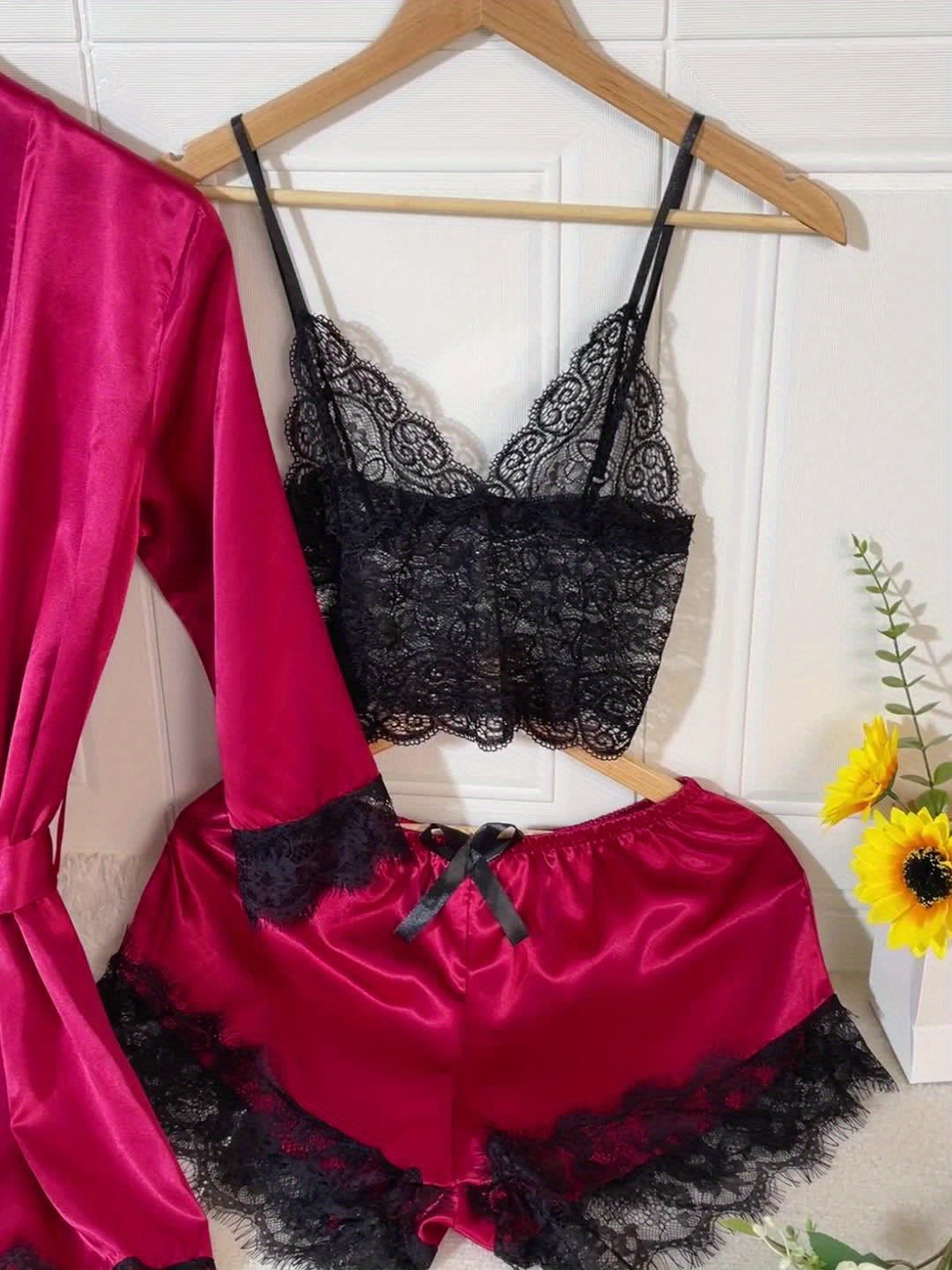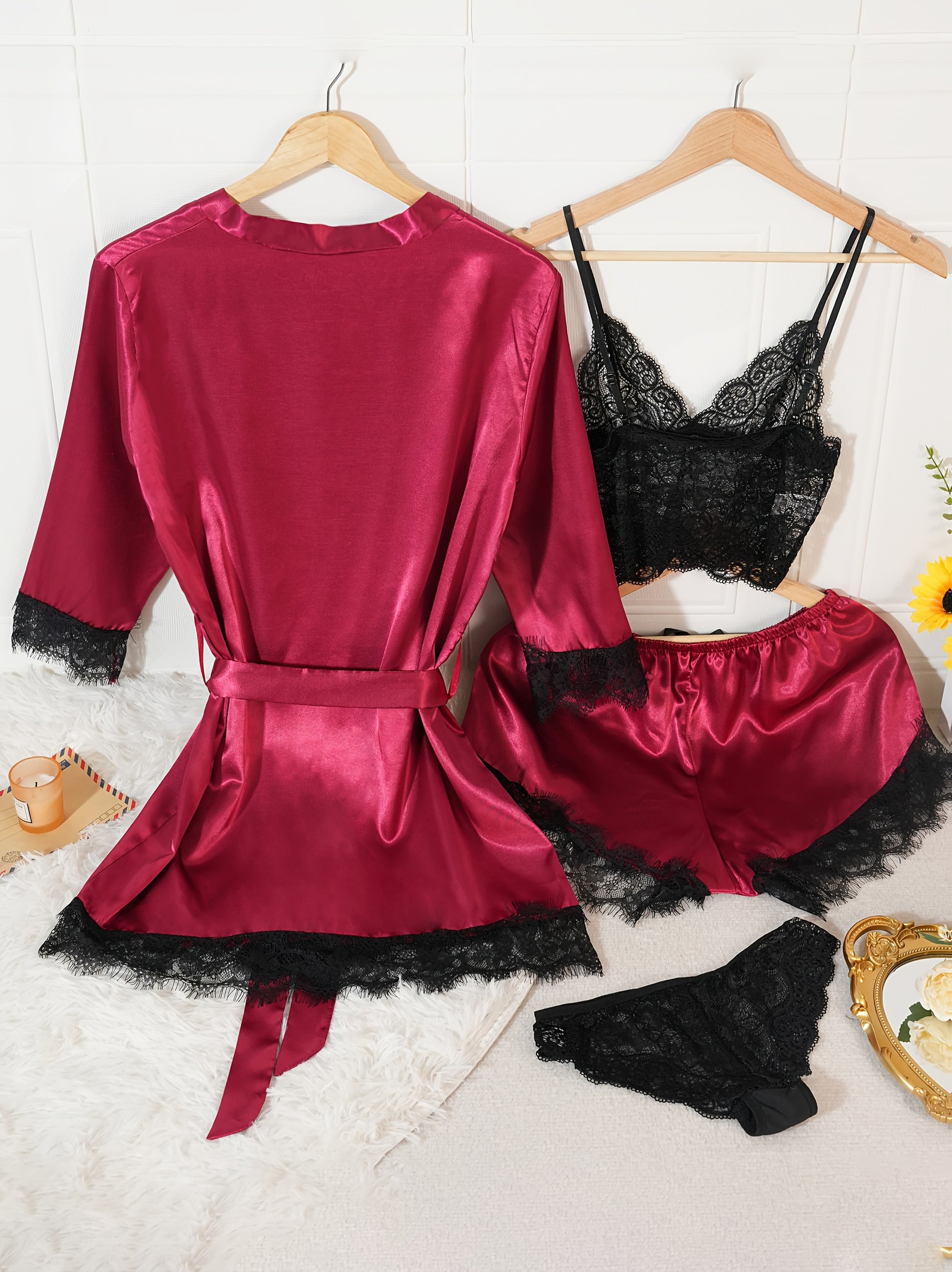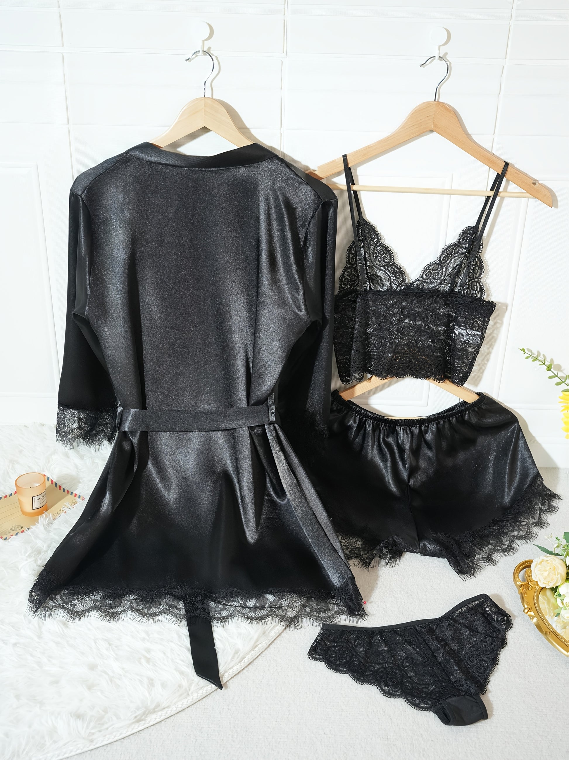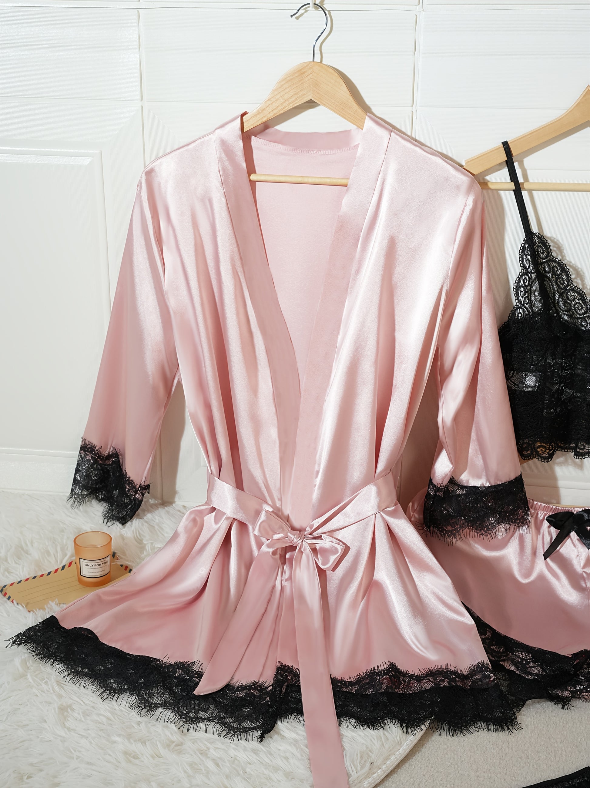 استمتع بأناقتك وراحتك مع طقم النوم الأنثوي الأنيق. يتضمن الطقم رداء طويل وألبسة داخلية مطابقة، مصنوعة من قماش ناعم يناسب جميع الفصول.