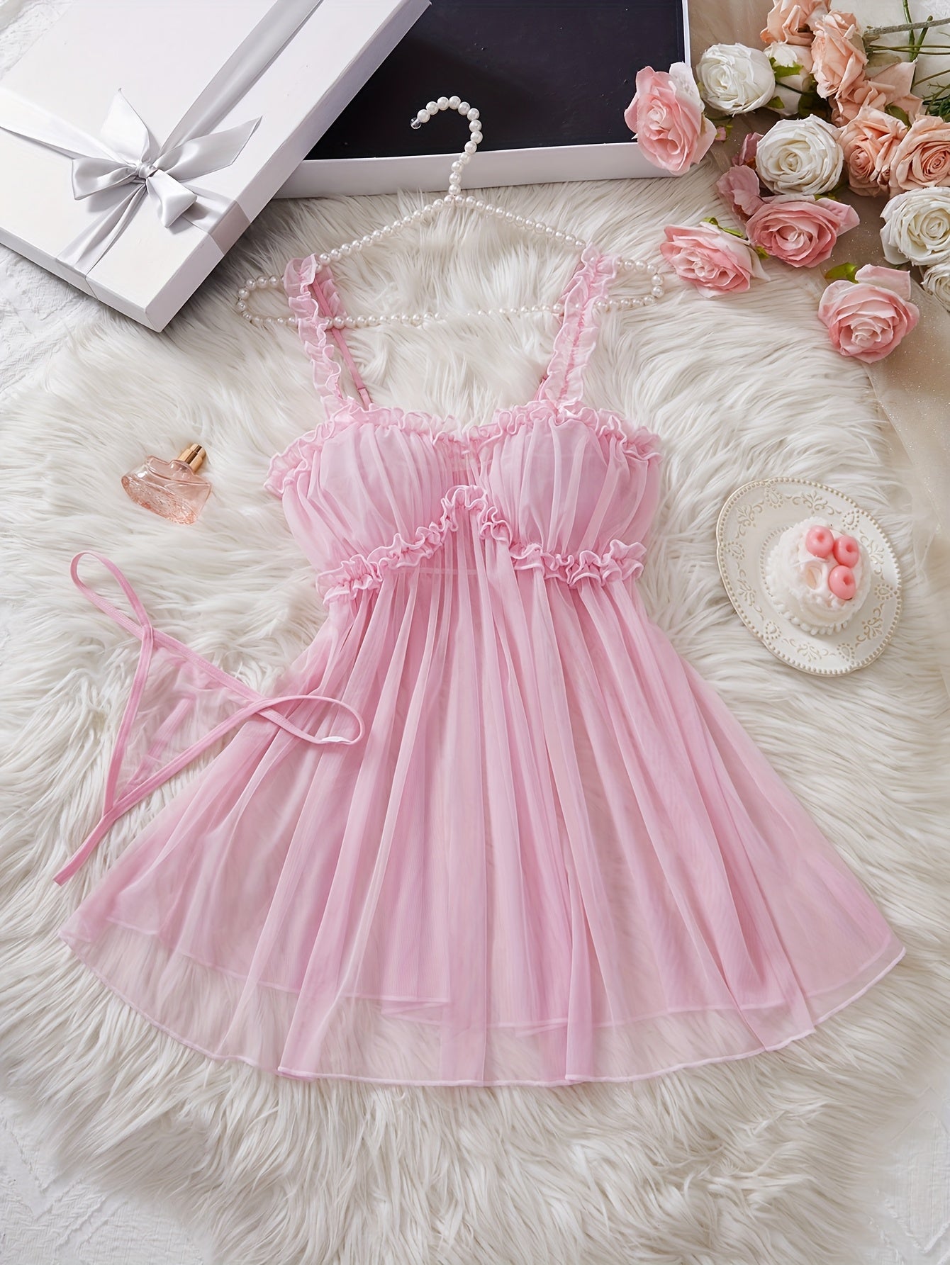 • تصميم شبكي مع حواف دانتيل.