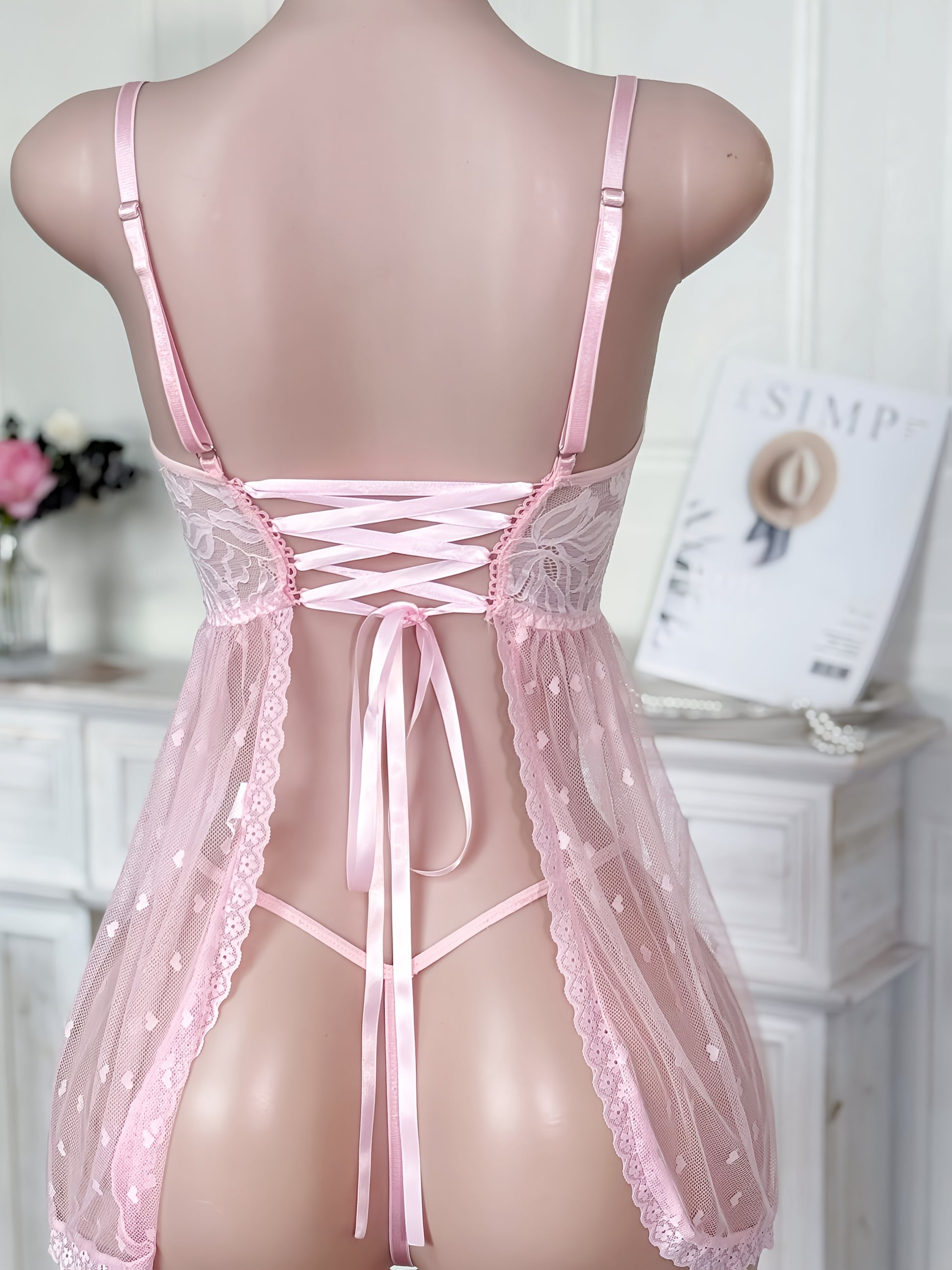استمتع بأناقة وجاذبية طقم النوم المكون من قطعتين مع تصميم مثير.