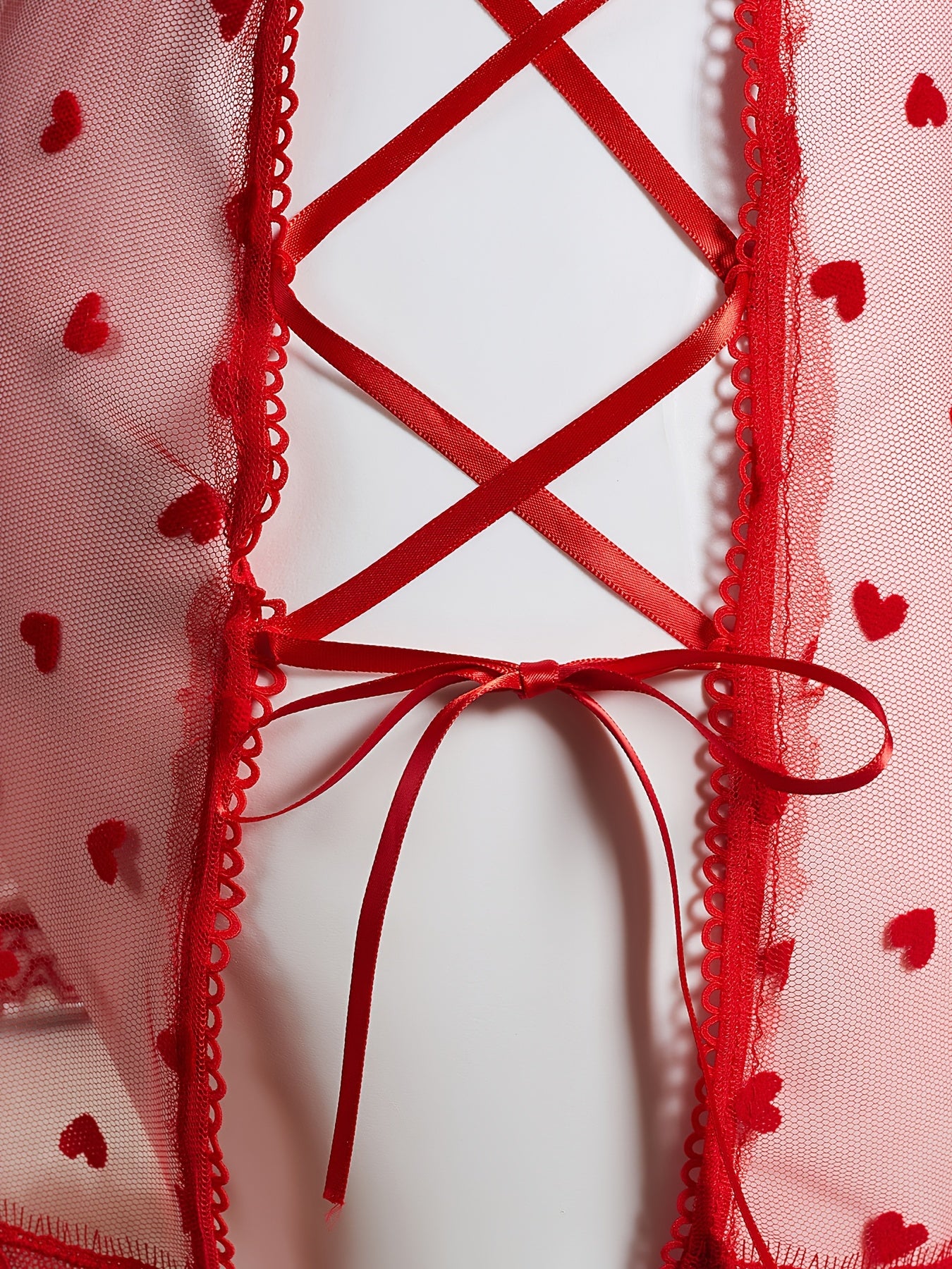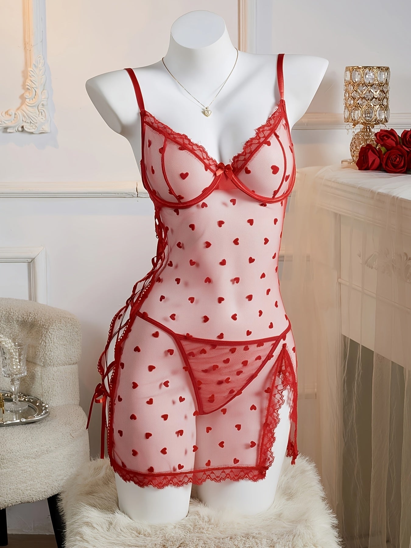 استمتع بإطلالة جذابة وممتعة في فستان النوم هذا ذو التصميم الشفاف والمثير.
