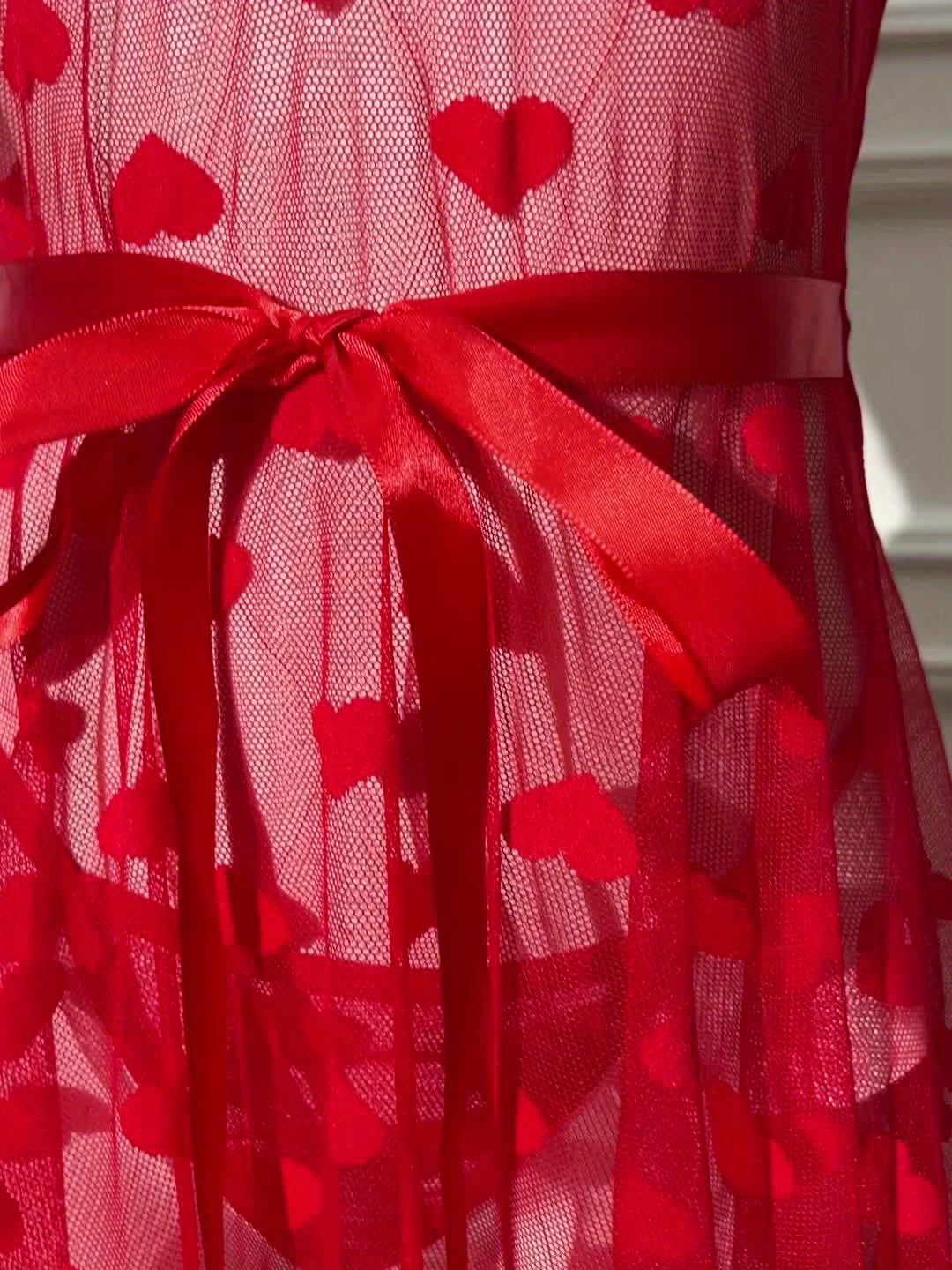 استمتع بإطلالة مثيرة مع فستان اللانجري الضيق المزخرف بالأبيض والأحمر. مصمم من قماش بوليستر ناعم مع تفاصيل الدانتيل، مثالي للبالغين.