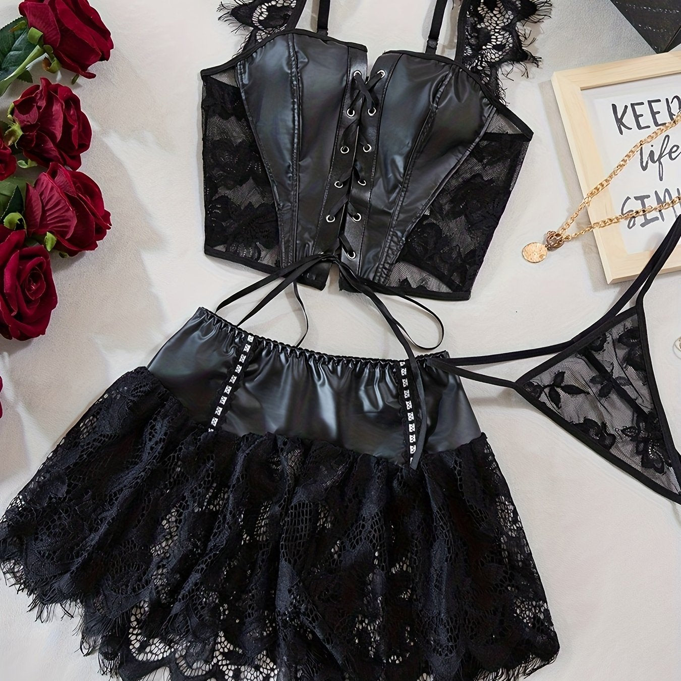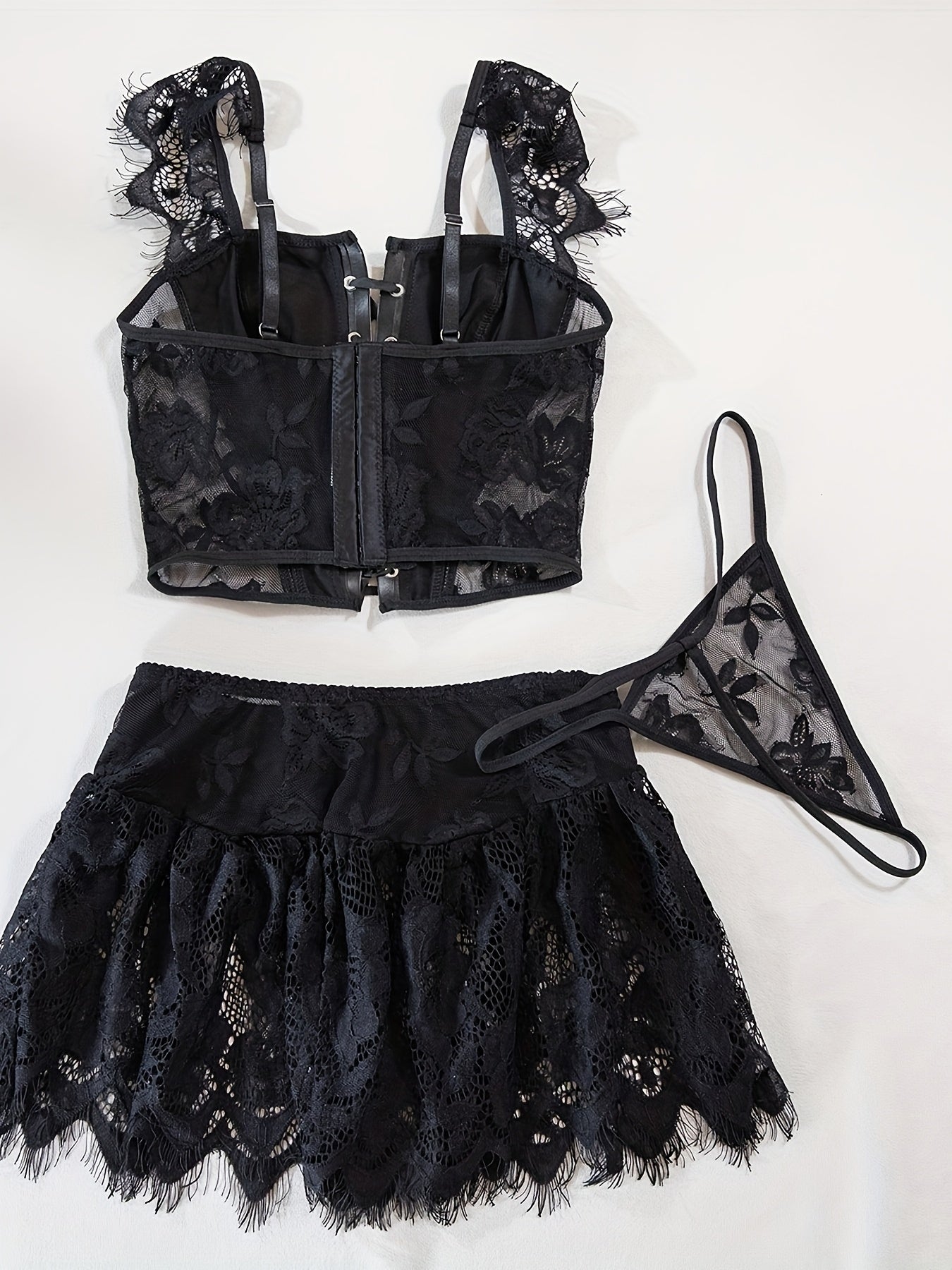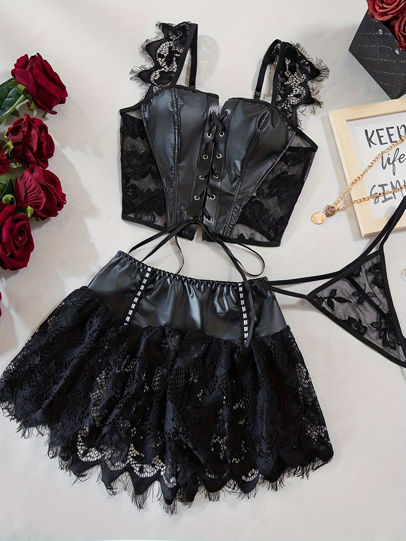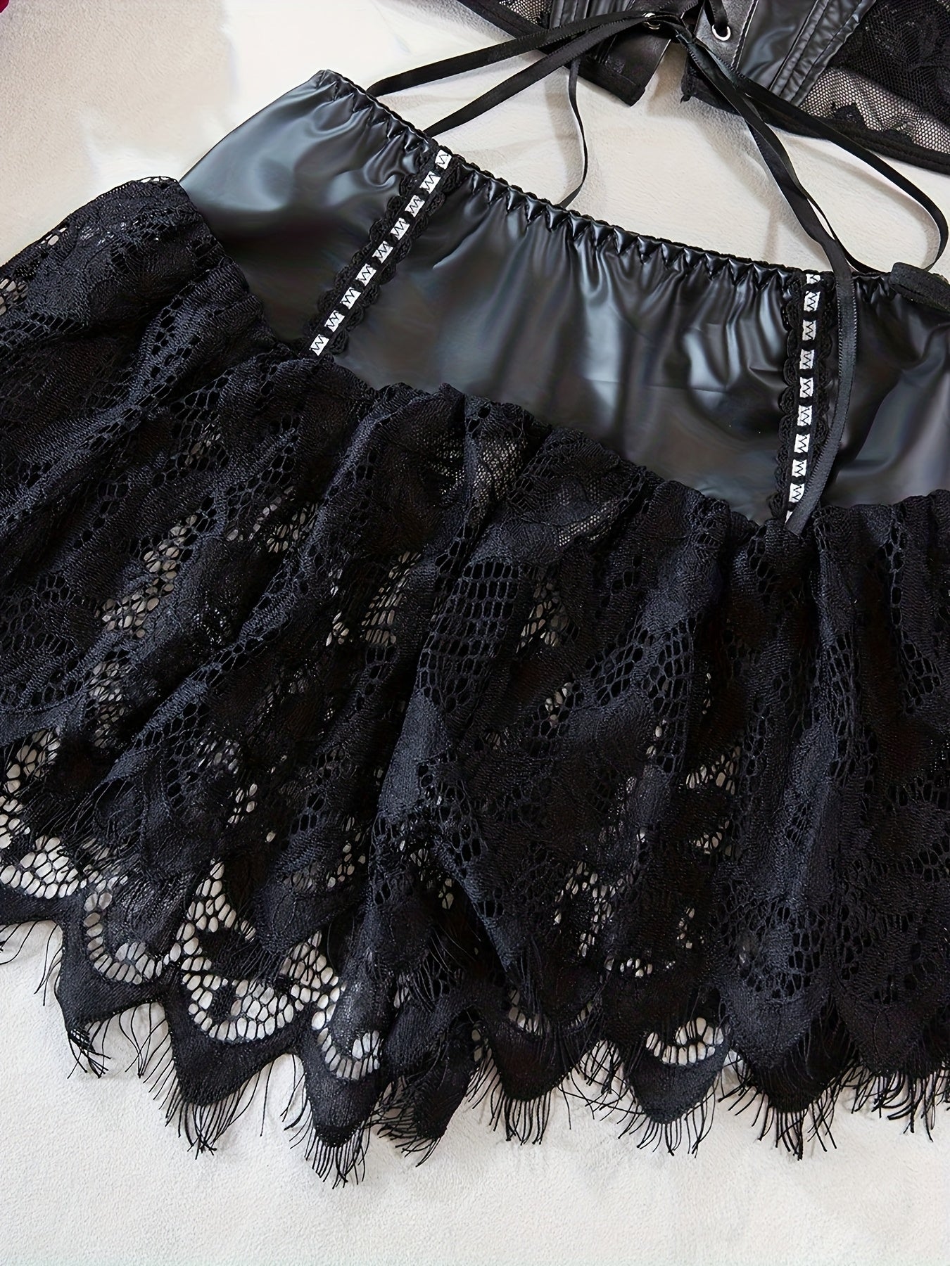 استمتع بالأناقة والجاذبية مع هذا الفستان الميني المميز. يتميز بتفاصيل الدانتيل المتباين وحمالات سباجيتي، مما يمنحه مظهراً أنيقاً وجذاباً.