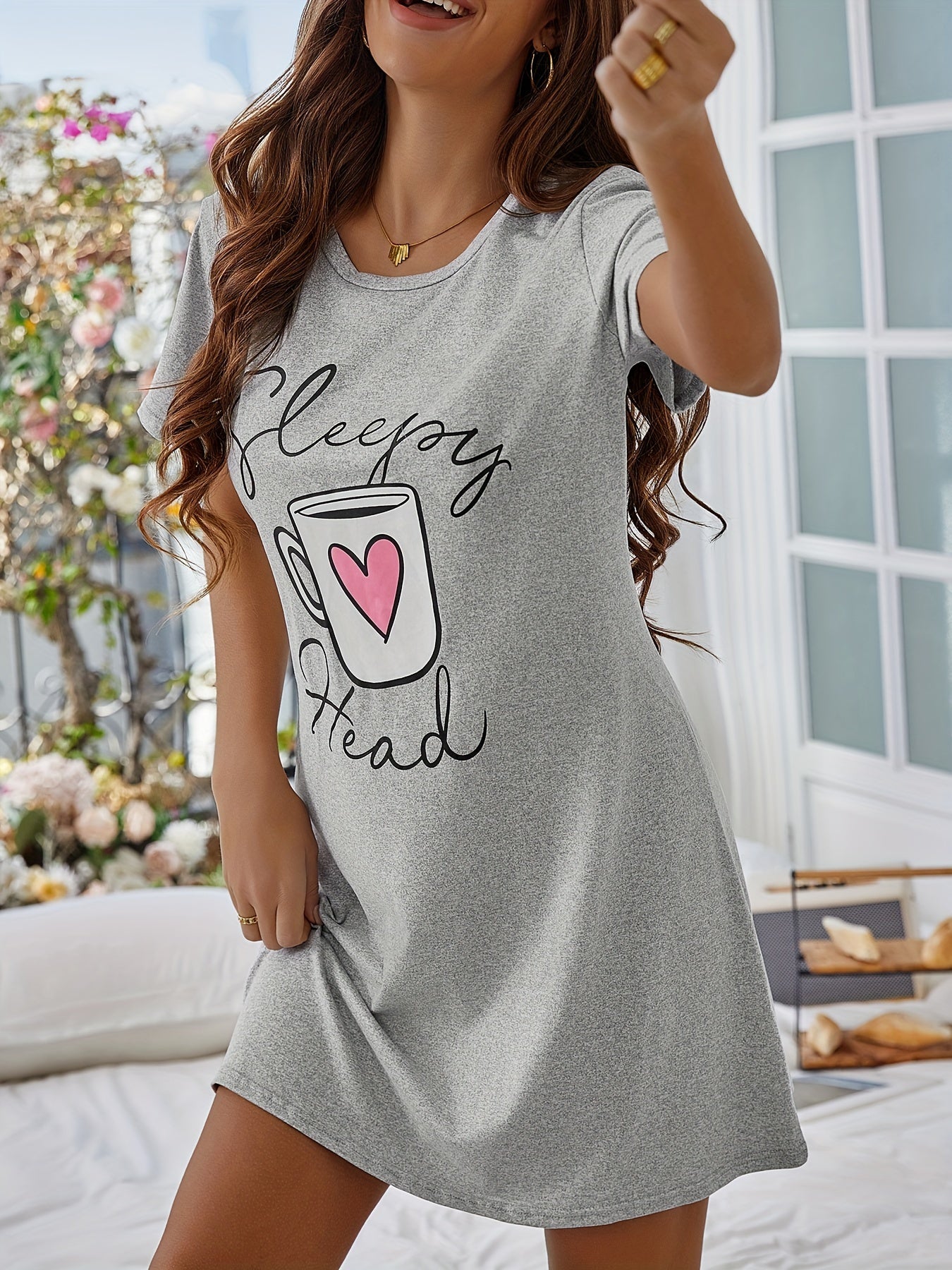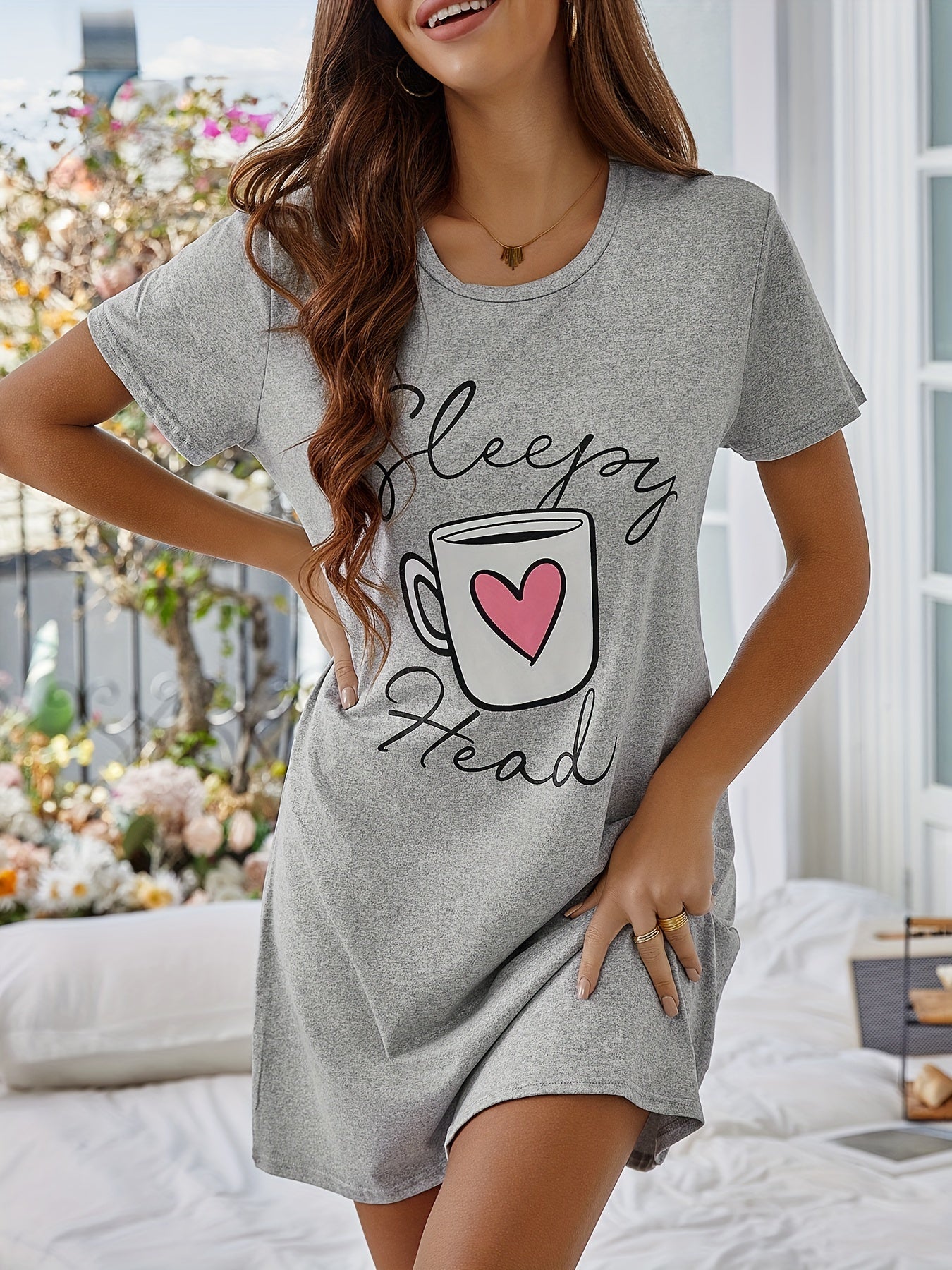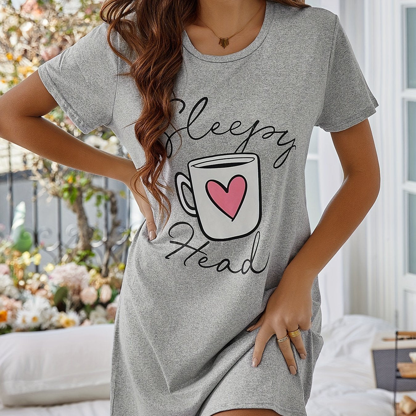 استمتع بأناقة وراحة فستان النوم كاجوال للنساء والذي يأتي بتصميم بلا أكتاف مع طباعة قلب وحروف. مثالي لفصل الربيع/الخريف، ومناسب لقضاء أوقات النوم المريحة.