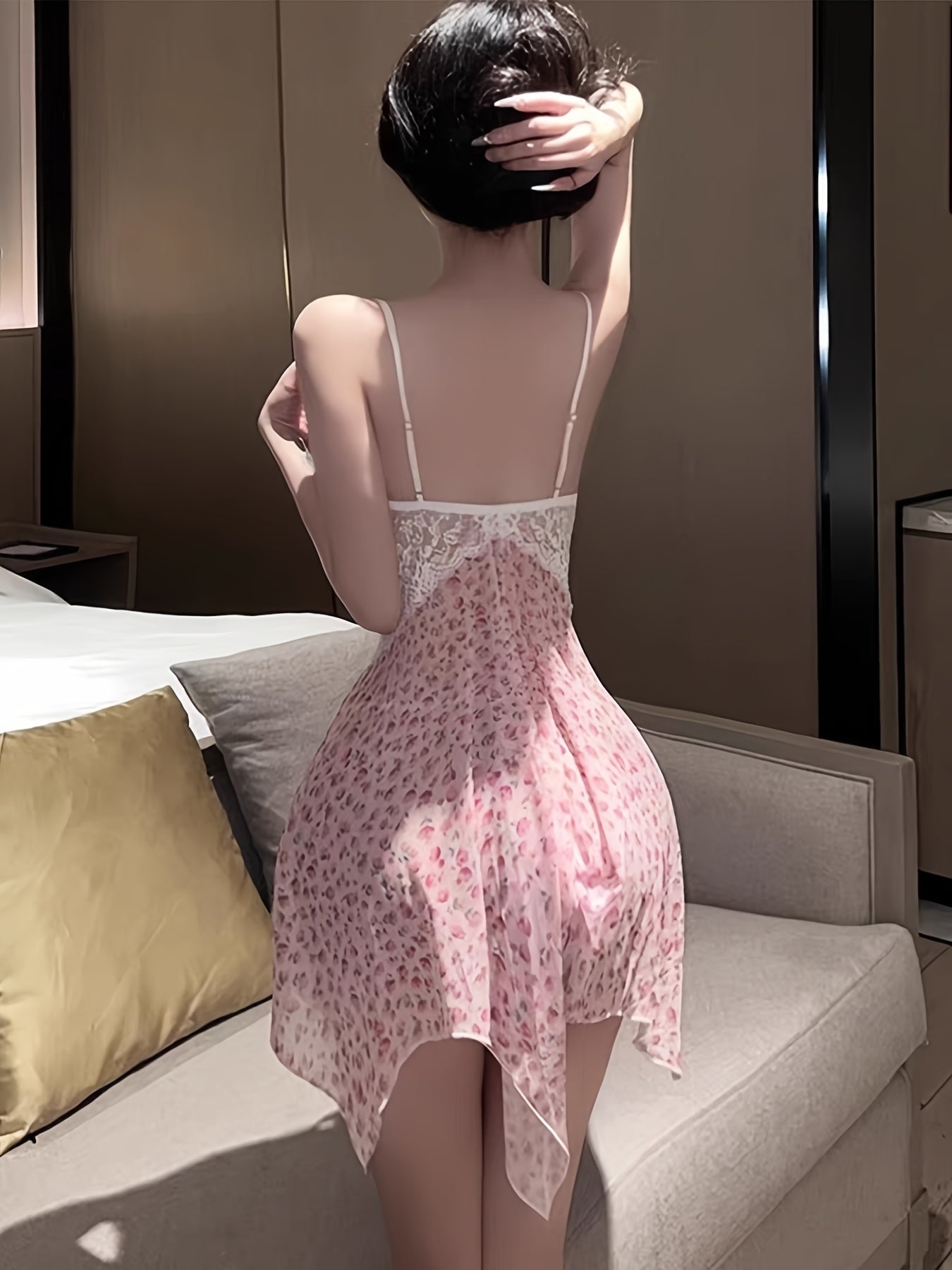 استمتع بتجربة نوم مريحة وأنيقة مع هذا الفستان الجميل ذو التصميم الرومانسي. مصنوع من قماش ناعم مع حواف دانتيل، هذا الفستان مثالي للنساء اللواتي يبحثن عن لمسة من الأنوثة في ملابس النوم.