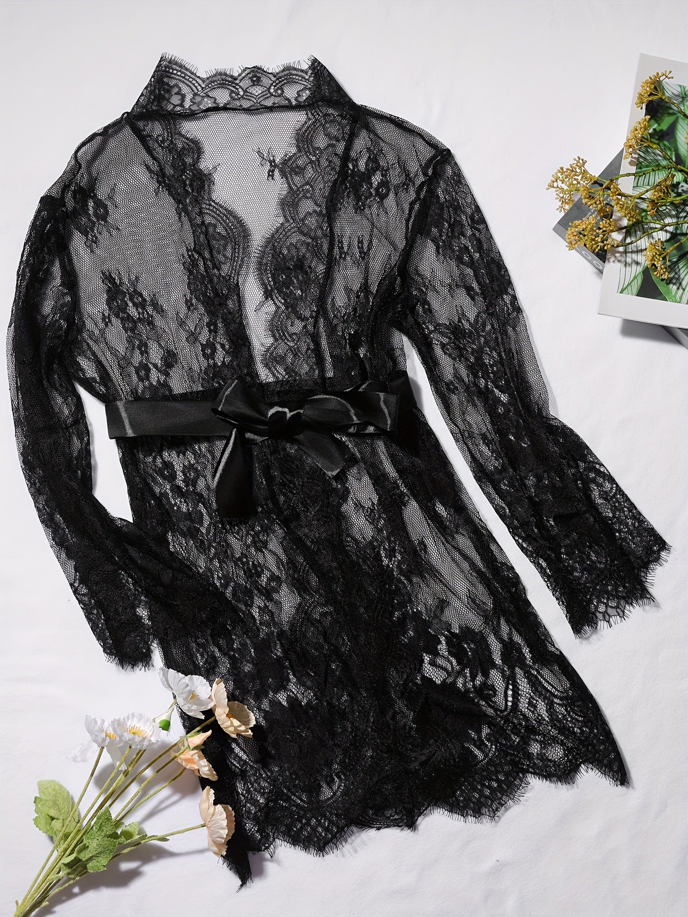 استمتع بجمال وأناقة فستان النوم هذا المصنوع من قماش عالي الجودة. يمتاز بتصميم فاخر مع حواف من الدانتيل، مما يمنحك مظهراً أنثوياً وجذاباً.