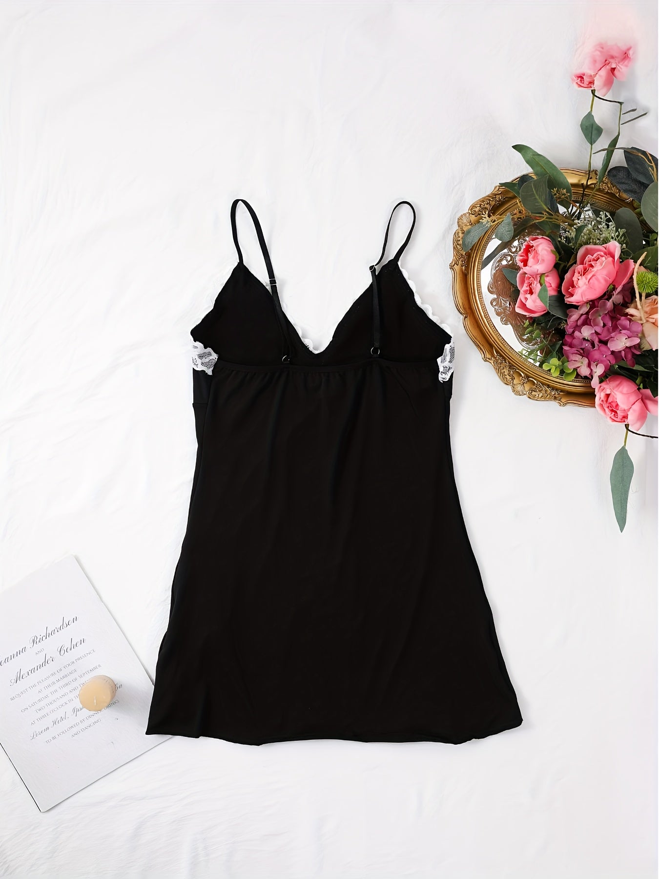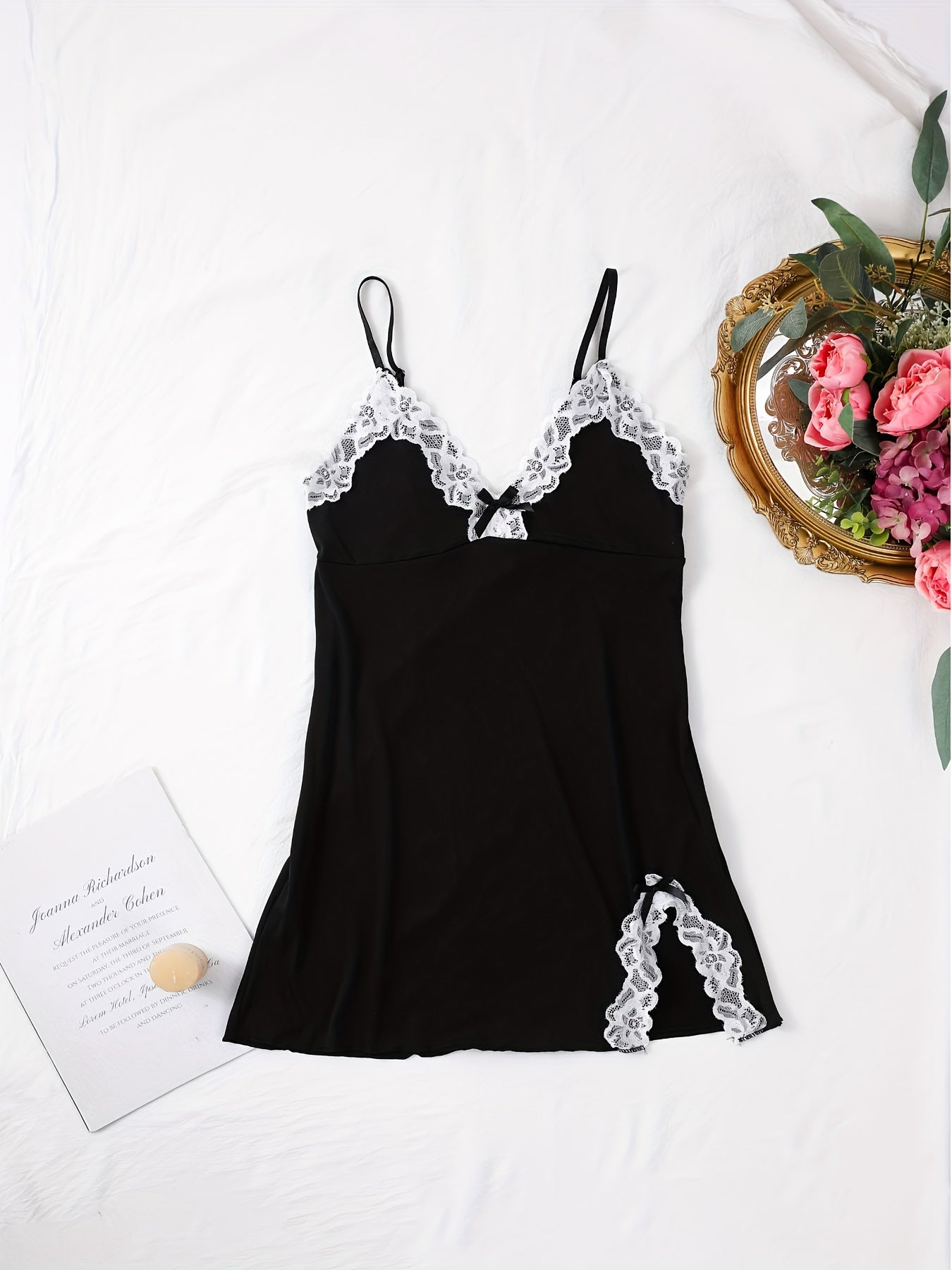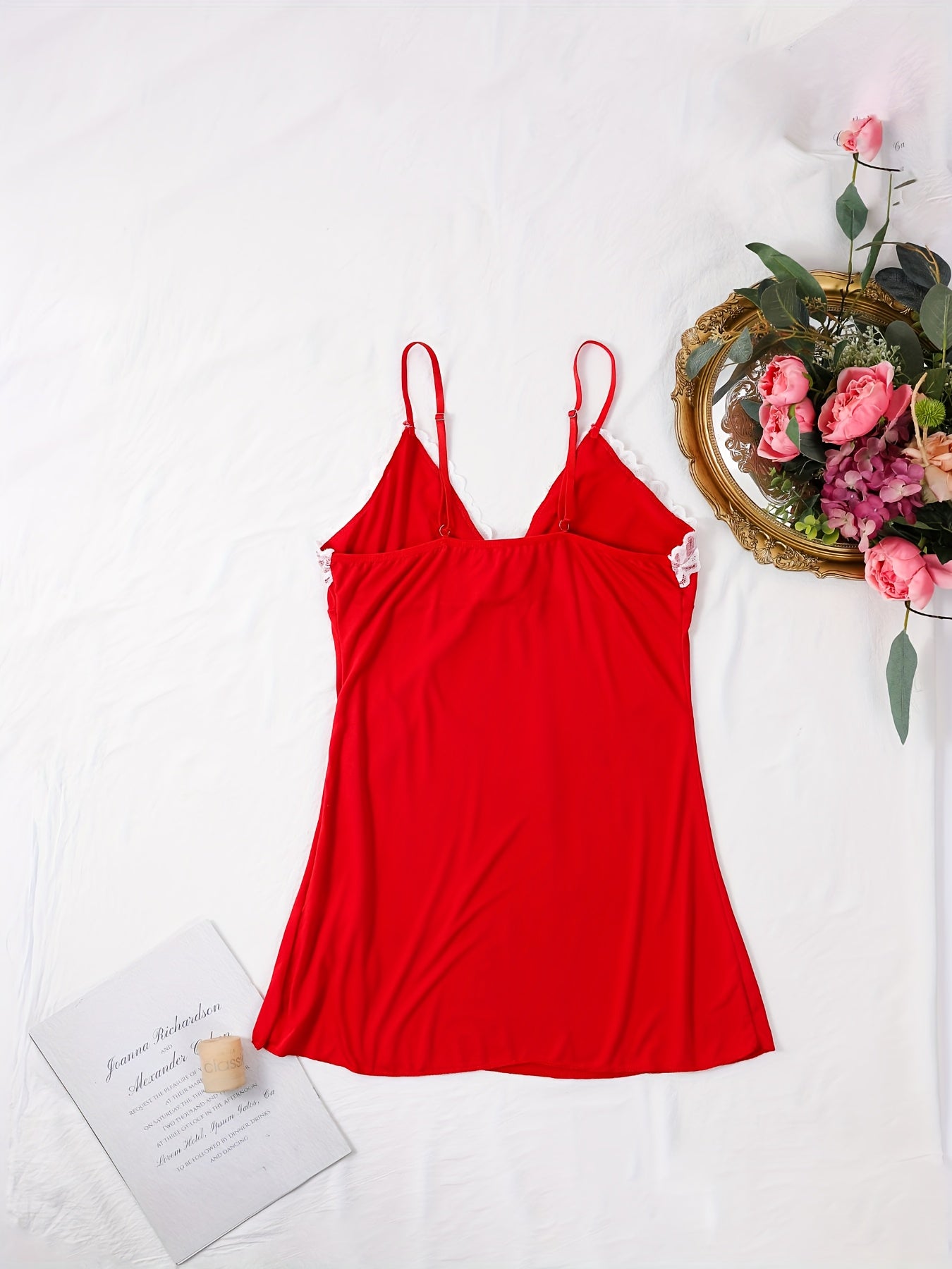 استمتع بأناقة وراحة فستان النوم النسائي الأنيق. يتميز بتصميم بسيط مع تفاصيل من الدانتيل، مما يجعله خياراً مثالياً للأمسيات الصيفية.
