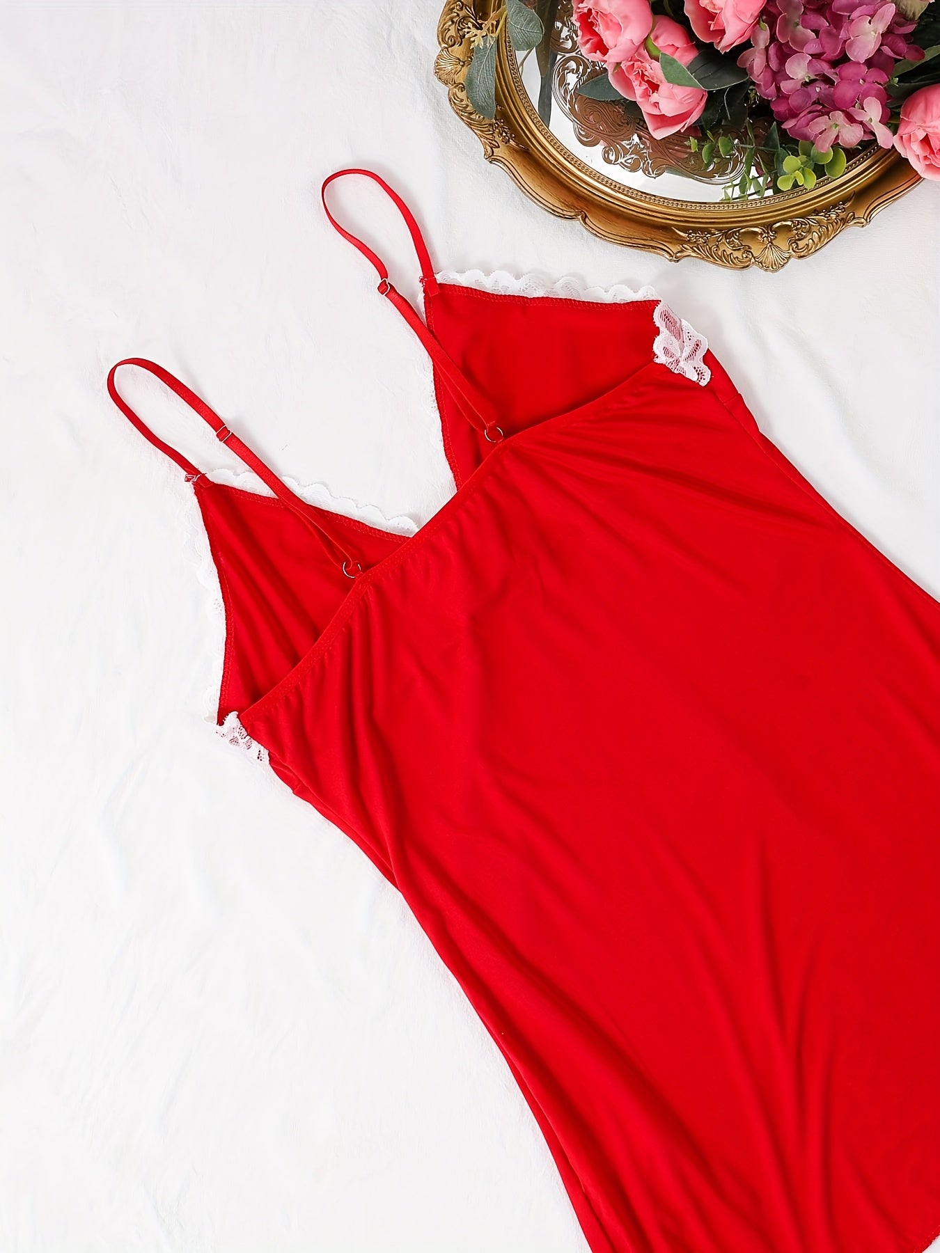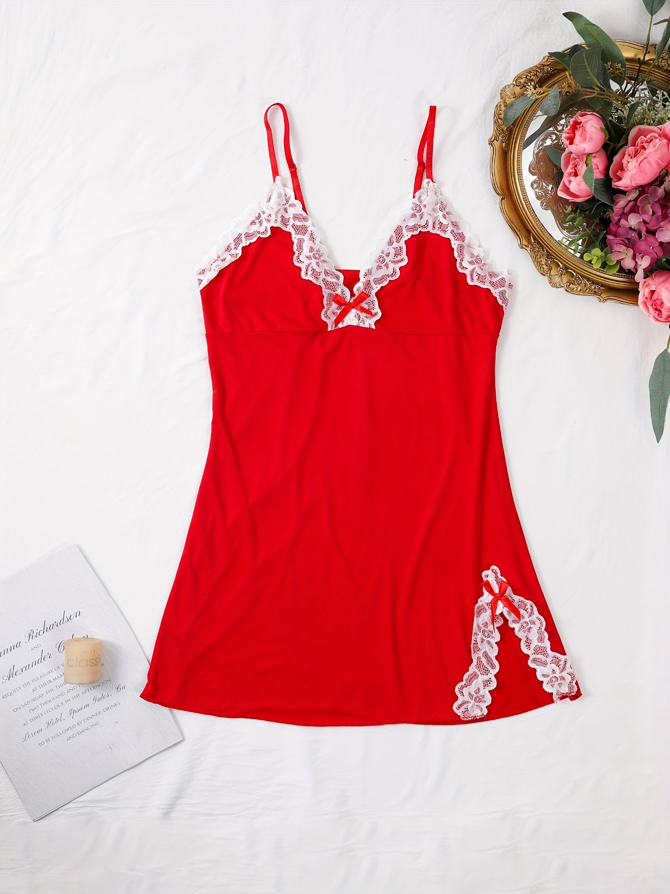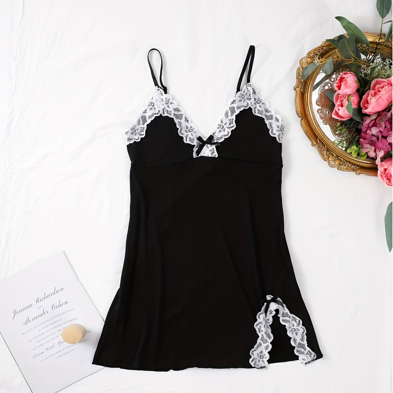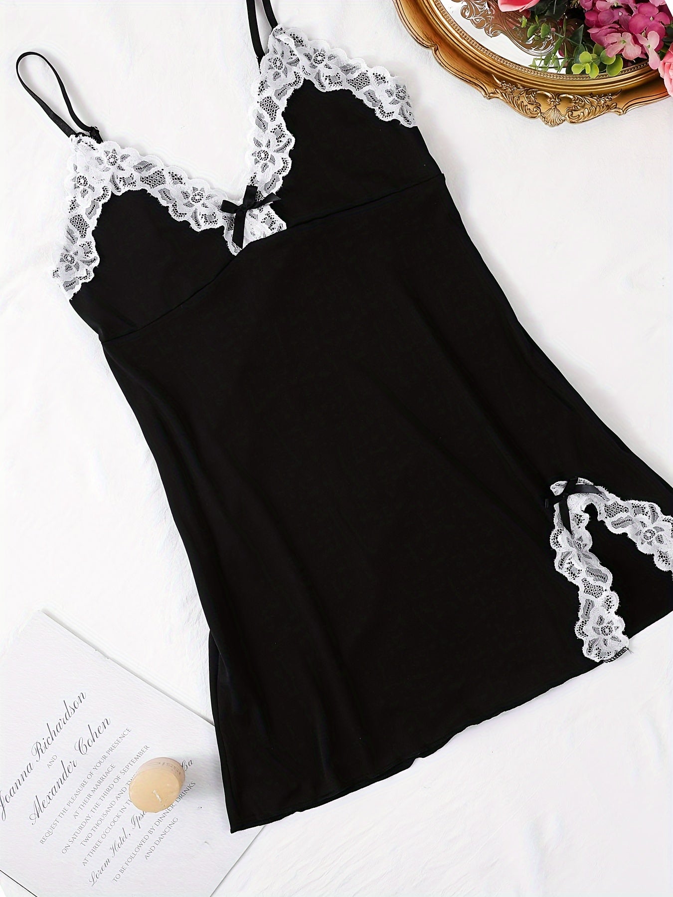 استمتع بأناقة وراحة فستان النوم النسائي الأنيق. يتميز بتصميم بسيط مع تفاصيل من الدانتيل، مما يجعله خياراً مثالياً للأمسيات الصيفية.