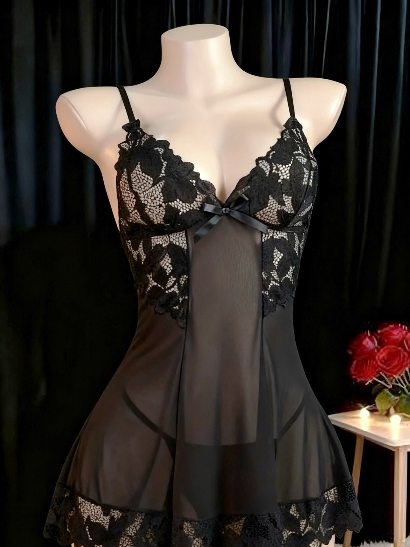 استمتع بأناقة وجمال فستان النوم الدانتيل هذا الذي يجمع بين الجاذبية والراحة.