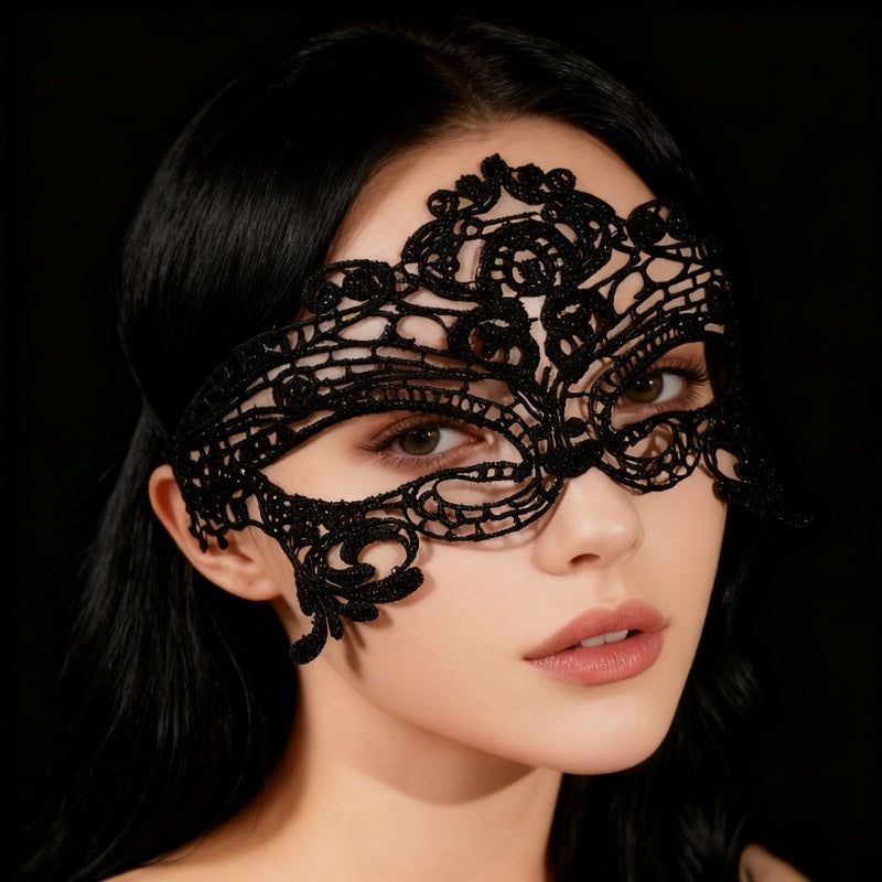 اختبر جمال قناع الجمال الدانتيل الأسود مع مجموعة من 3 قطع.