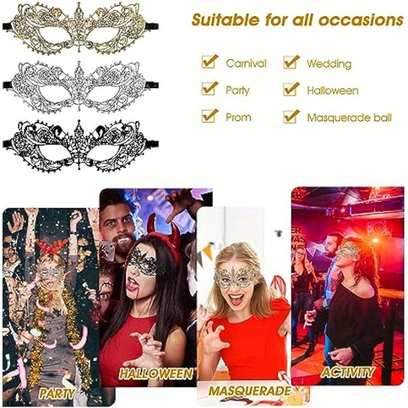 استمتع بإطلالة مميزة مع قناع العيون الدانتيل المكون من 3 قطع. مثالي للحفلات والمناسبات الخاصة مثل ماردى غرا وهالوين.