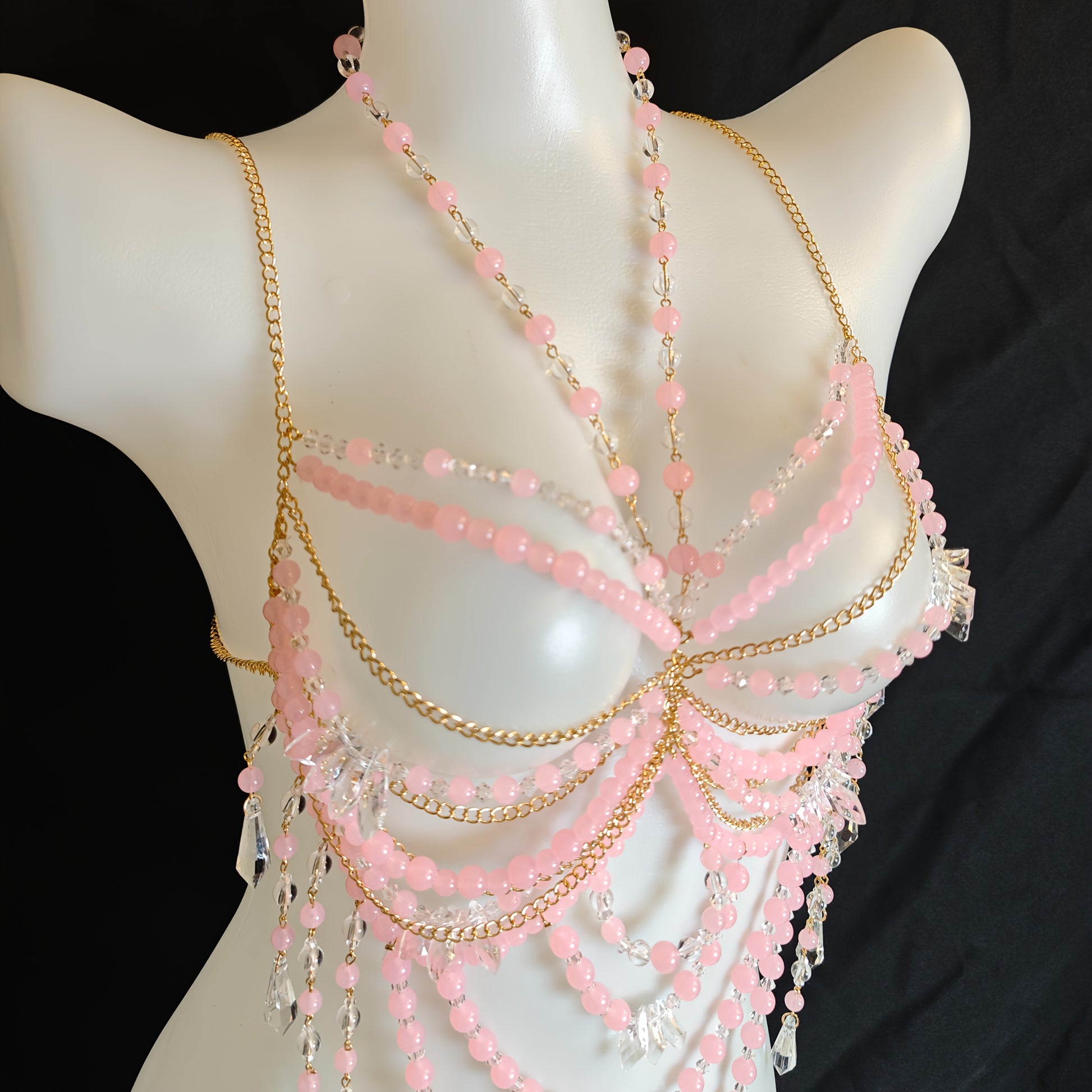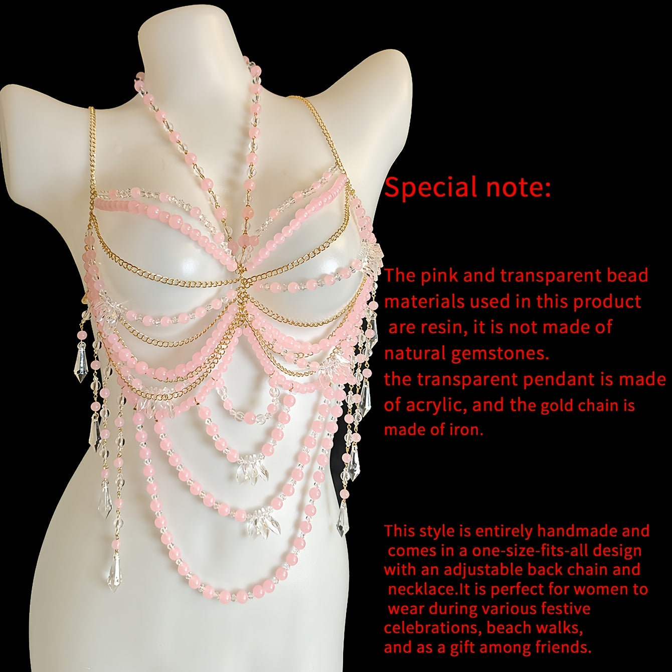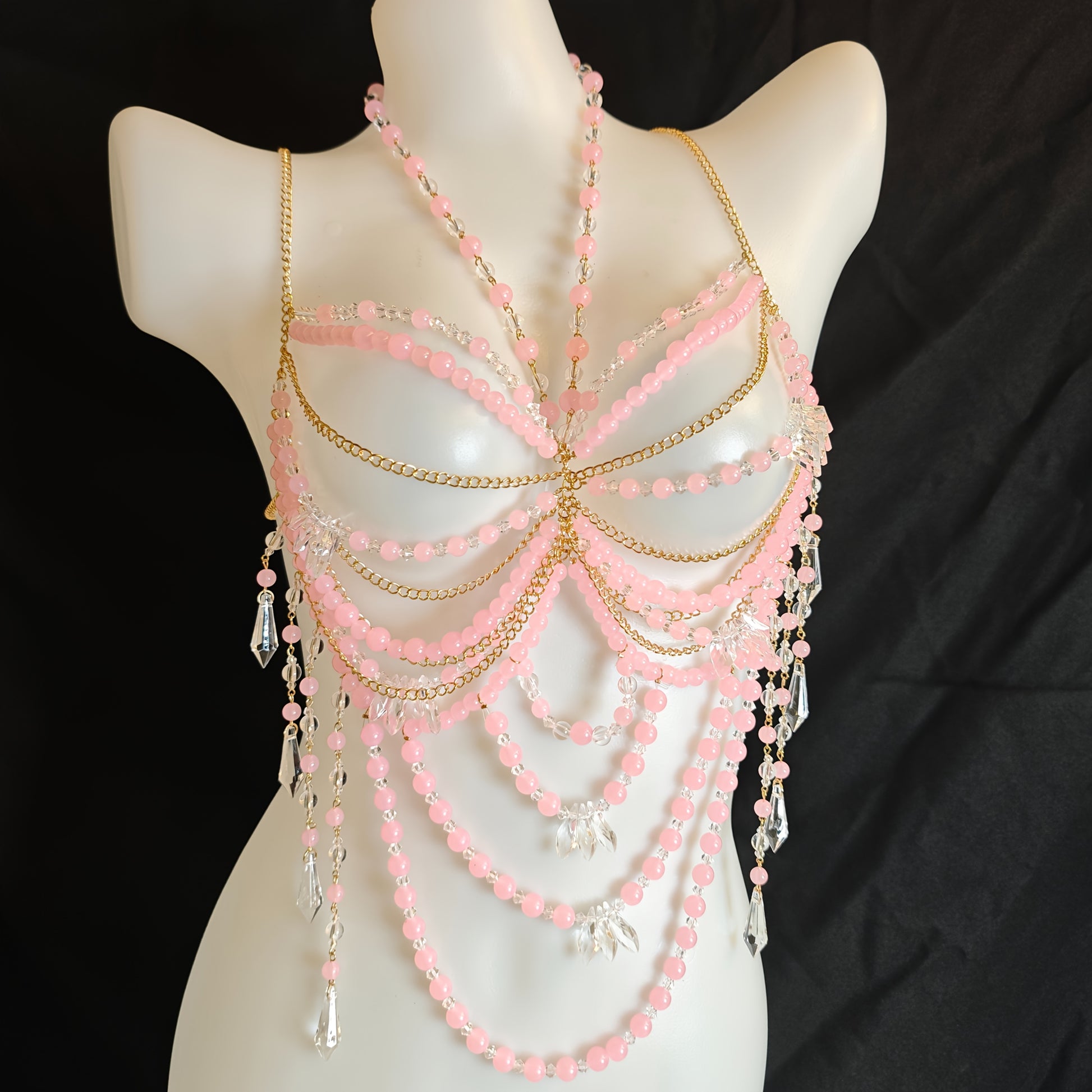 تألقي بأناقتك وأنوثتك مع هذا الكورسيه اليدوي الفريد، المصنوع من باقة من الخرز الوردي الناعم، والذي يضمن لك تجربة مريحة وأنيقة في كل مناسبة.