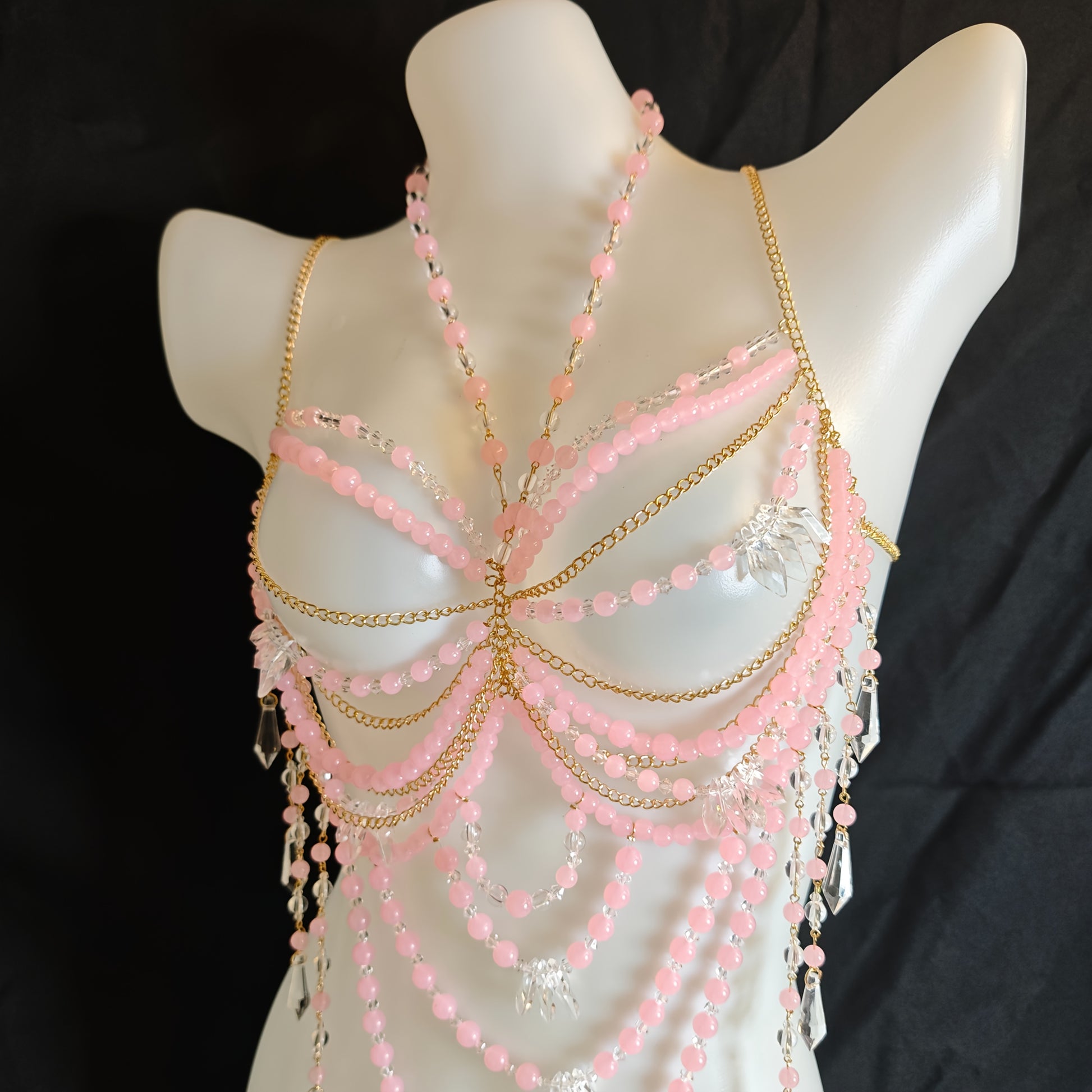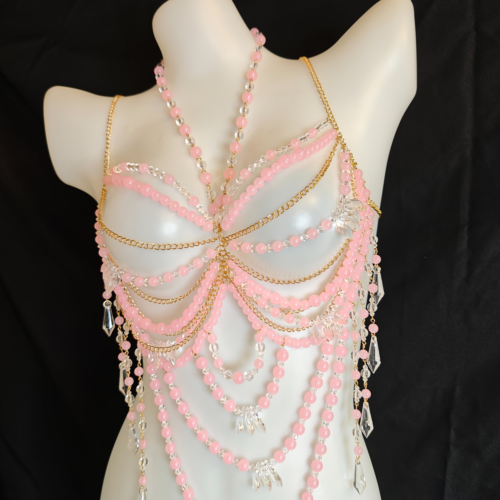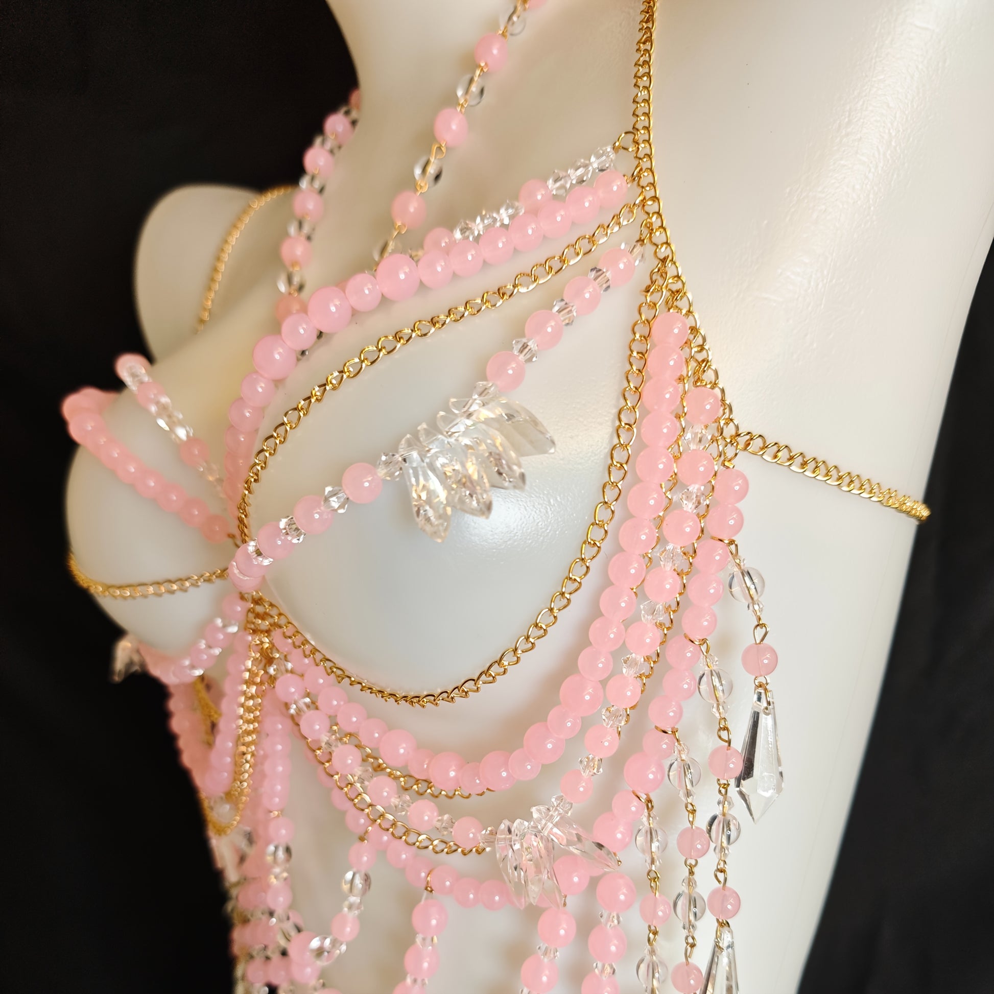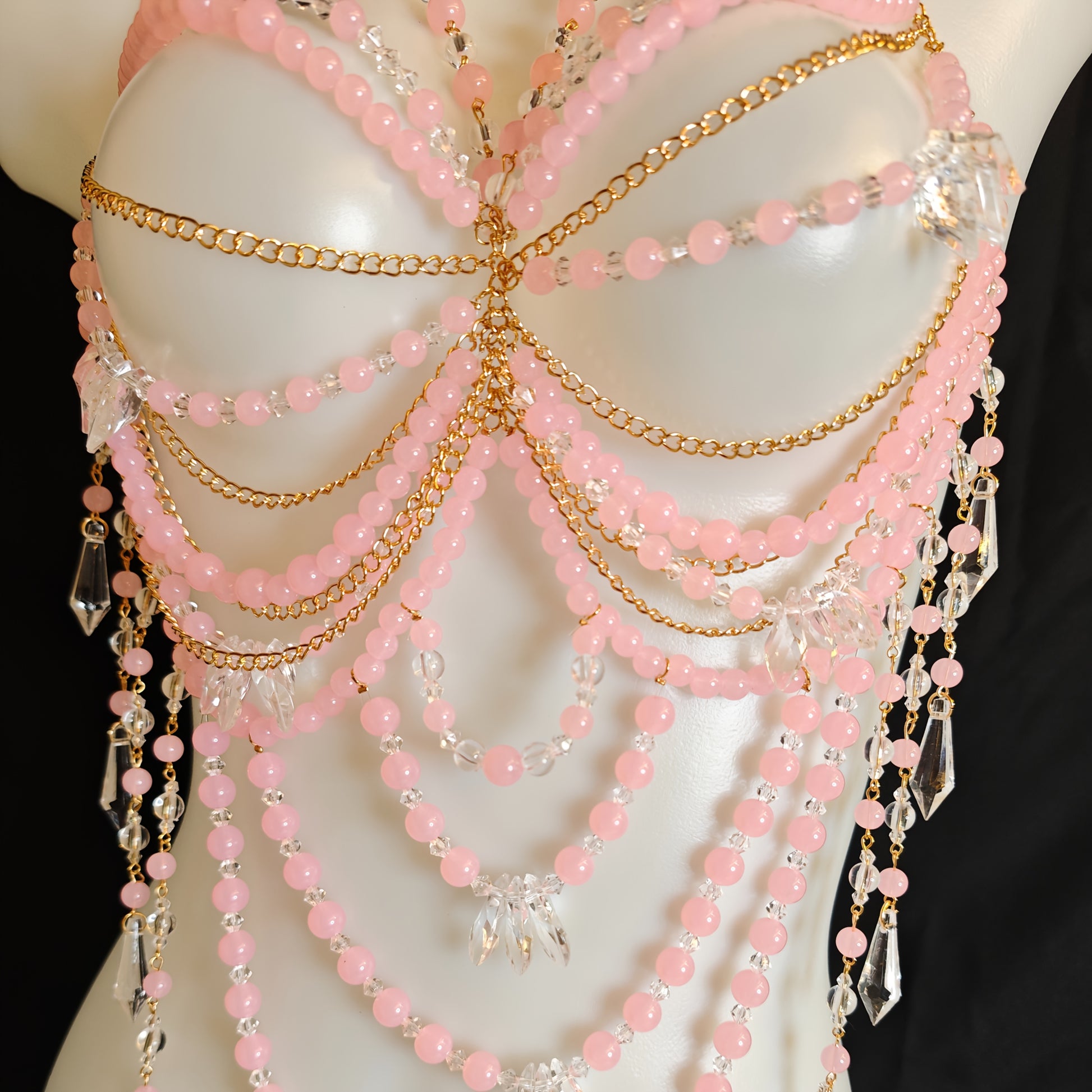 تألقي بأناقتك وأنوثتك مع هذا الكورسيه اليدوي الفريد، المصنوع من باقة من الخرز الوردي الناعم، والذي يضمن لك تجربة مريحة وأنيقة في كل مناسبة.