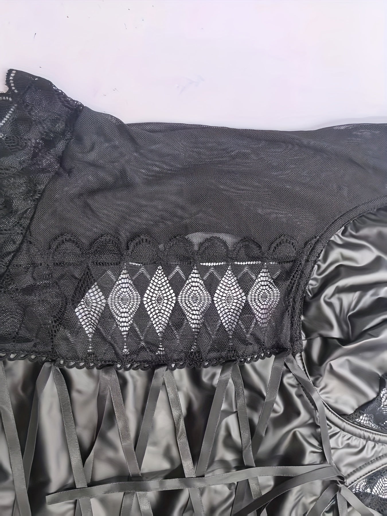 استمتع بتجربة رائعة مع هذا اللانجري المثير والمخصص للمقاسات الكبيرة. مصنوع مع أحزمة قابلة للتعديل، يناسب خصر الجسم، وصنع بتفاصيل من الدانتيل.