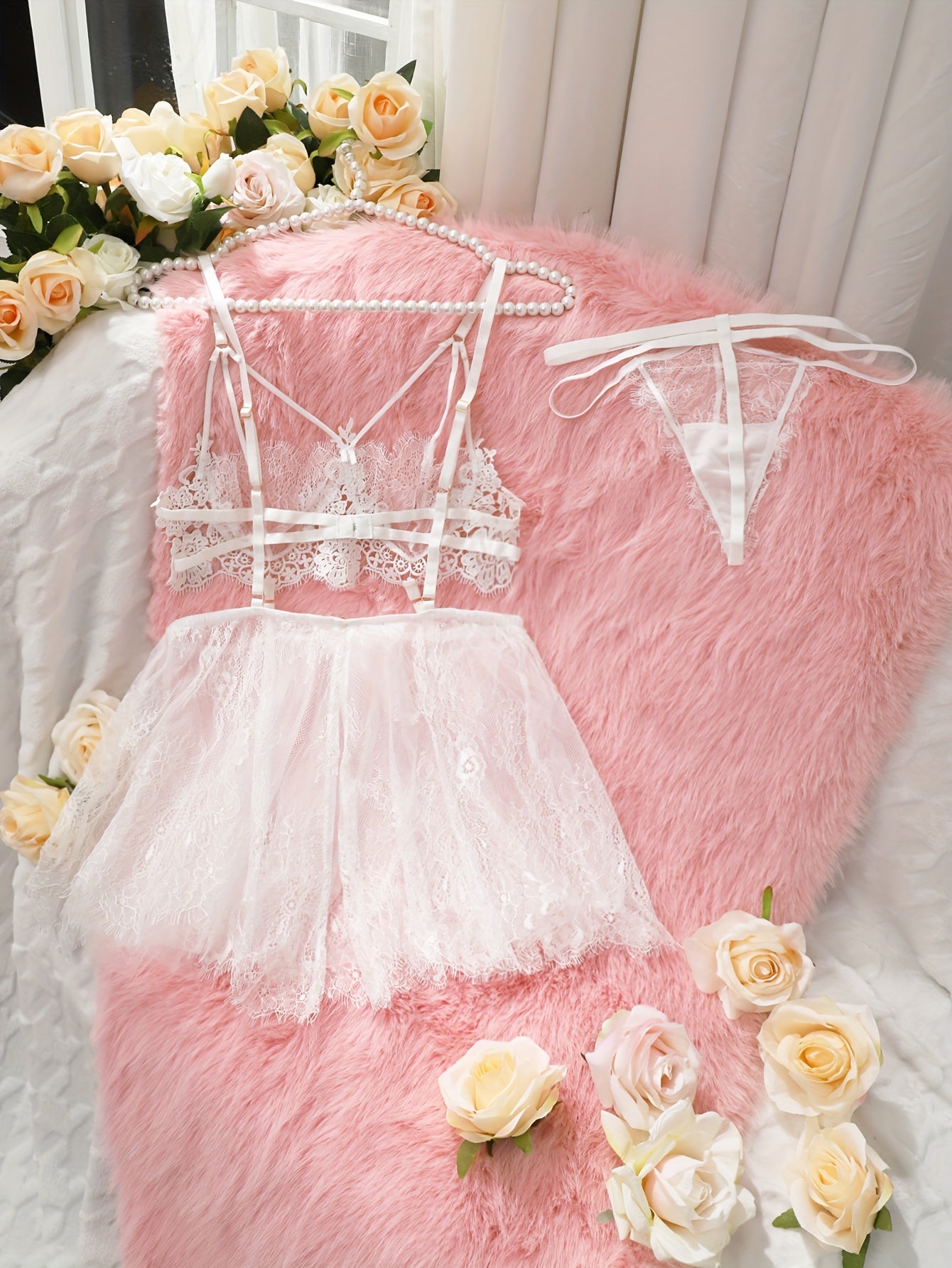 استمتع بلحظات intime مع مجموعة اللانجري الأنيقة المصنوعة من الدانتيل، والتي تتميز بأكمام مفرغة وتصميم جذاب.